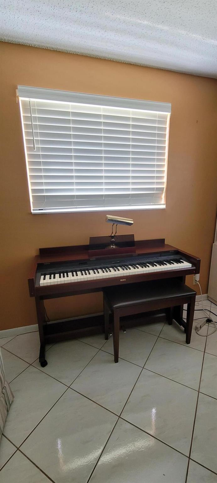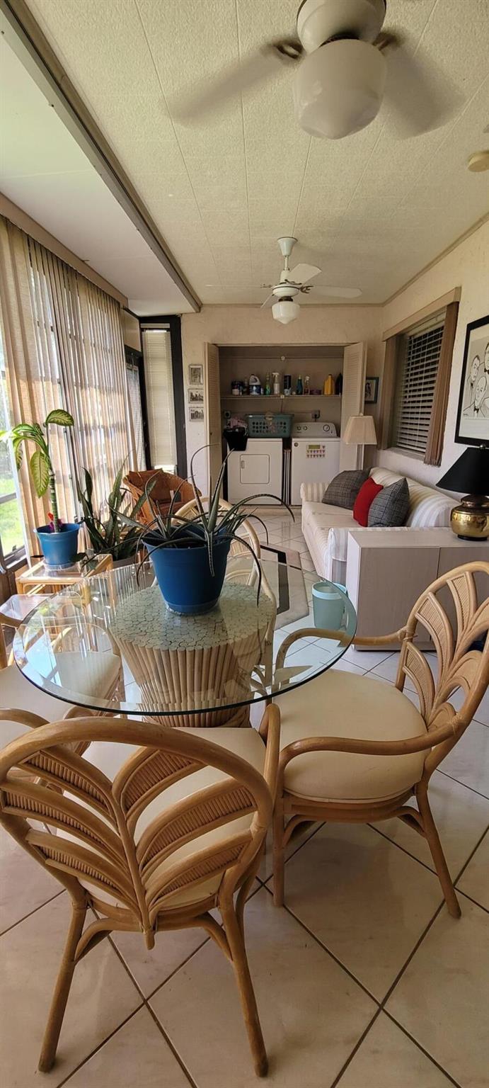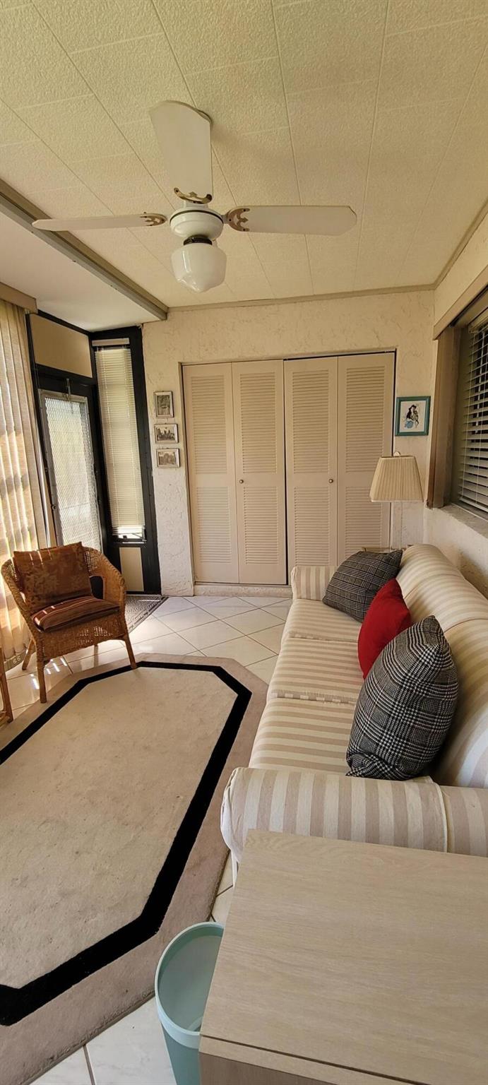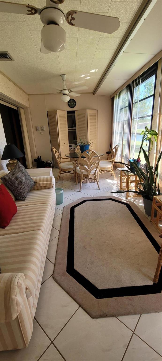 2/2 corner villa with beautiful 18'' tile throughout making it light and bright. There is a water view from your kitchen and living area. South facing 22x10 enclosed patio. There is a full size washer/dryer storage closet on the rear patio. With steps to the pool and a short drive to the clubhouse with a larger pool, sauna, gym, tennis, card room and cafe. Golden Lakes is 24/7 guard gated with a full time social director, courtesy bus and more. Xfinity w/internet and water. All furnishings left are included. Built-in shelves and desks in both rooms. Electric piano is left. included in Condo fee. One pet up to 30 lbs allowed.