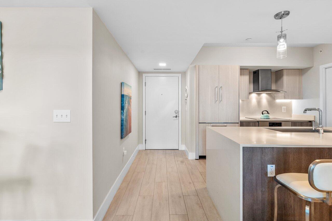 Welcome to 111 First Delray! Immerse yourself in the heart of Downtown Delray, surrounded by the finest amenities. This remarkable 2-bedroom, 2-bath condo, meticulously designed with a touch of artistry in every corner. This unit also comes with 2 storage units!!! Imbued with designer finishes throughout, this space emanates an air of refinement. This magnificent condo presents numerous additional upgrades. Walk upon porcelain tiles that mimic the warmth of wood, complementing the ambiance with a touch of natural elegance. Contemporary kitchen awaits, adorned with high-end cabinetry that exudes opulence. The quartz countertops add an element of sophistication, while built-in Bosch appliances provide the epitome of functionality. This unit comes with 2 storage uni