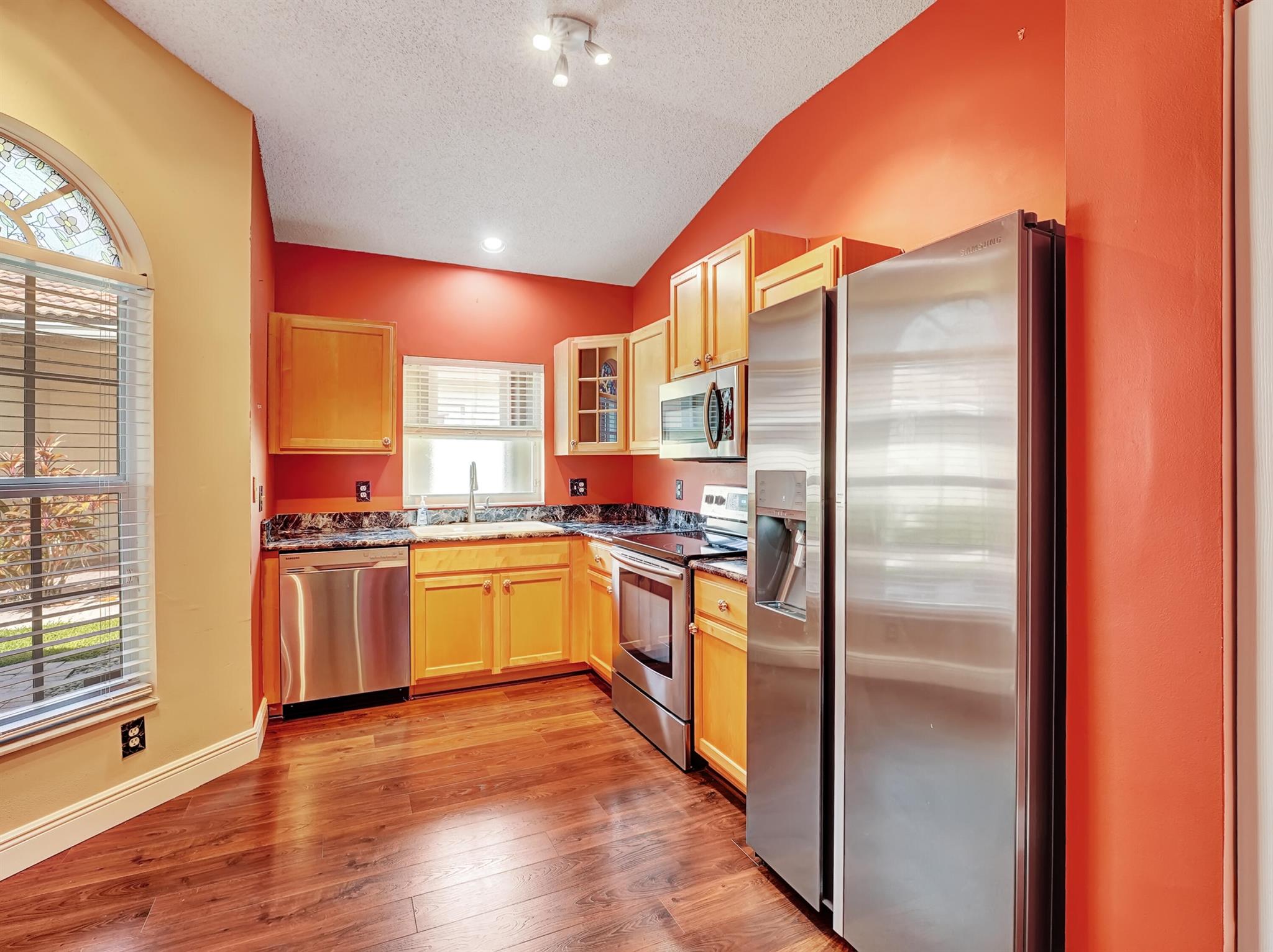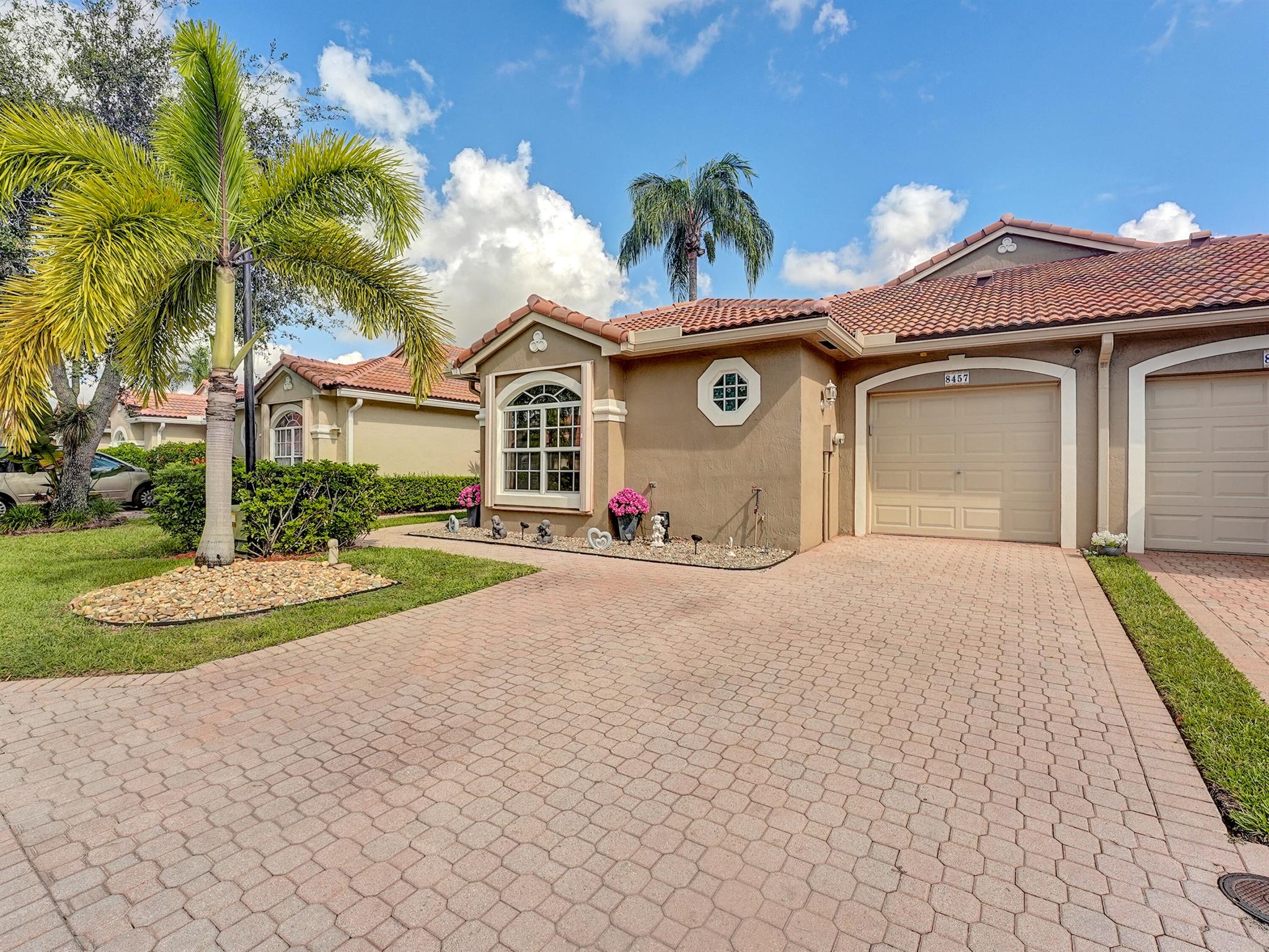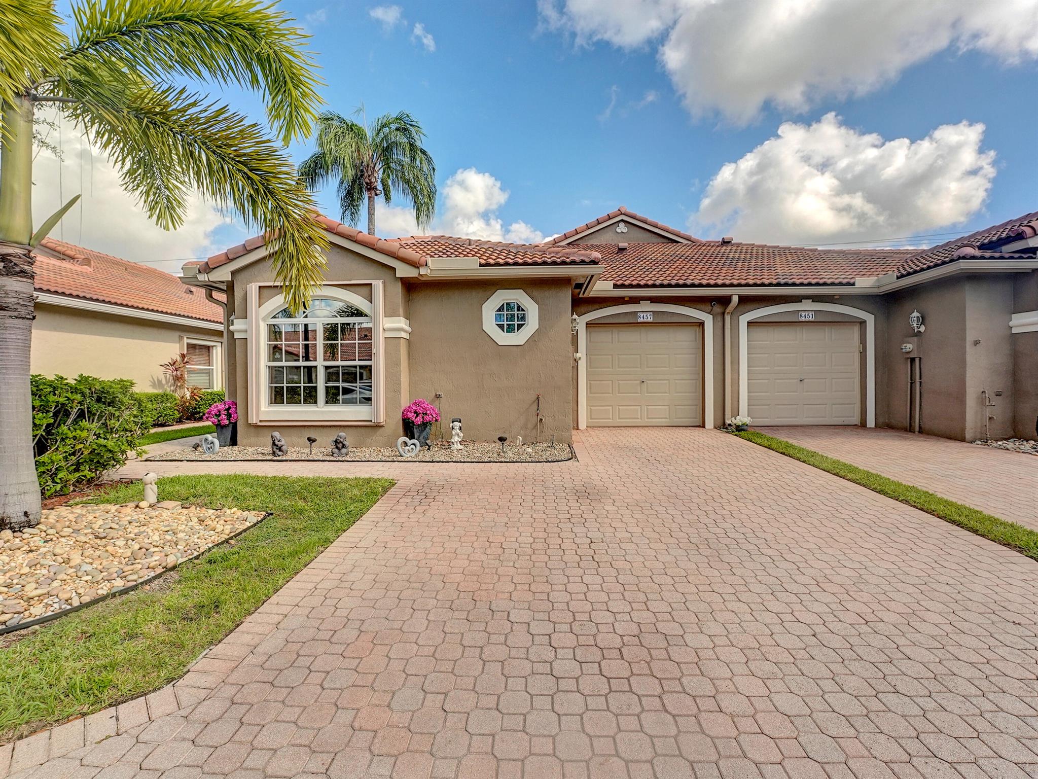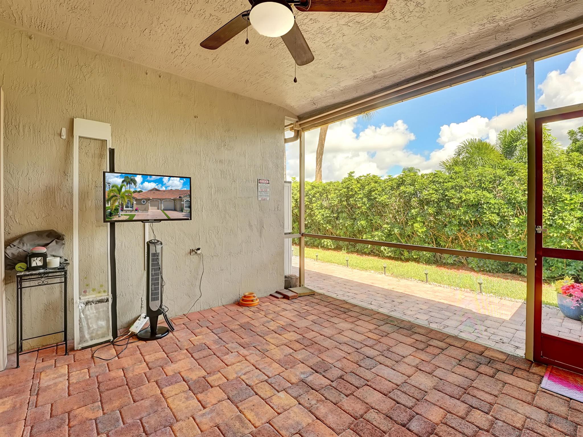 A delightful 3 bedroom, 2.5 bathroom villa with a NEW ROOF that features a kitchen with stainless steel appliances and stylish vinyl flooring extending throughout the main living space. This home also features a screened-in patio that offers the perfect spot for relaxation and outdoor enjoyment. What truly makes this property a gem are the recently installed IMPACT WINDOWS in 2016 and an A/C installed in 2015. Commuting is a breeze with the Turnpike nearby, and the convenience of Town Center shopping just minutes away. Moreover, this home falls within an A-RATED SCHOOL DISTRICT, ensuring an excellent education for your family. As if that weren't enough there are a plethora of amenities, including a pool, fitness center, and playground right in the community!