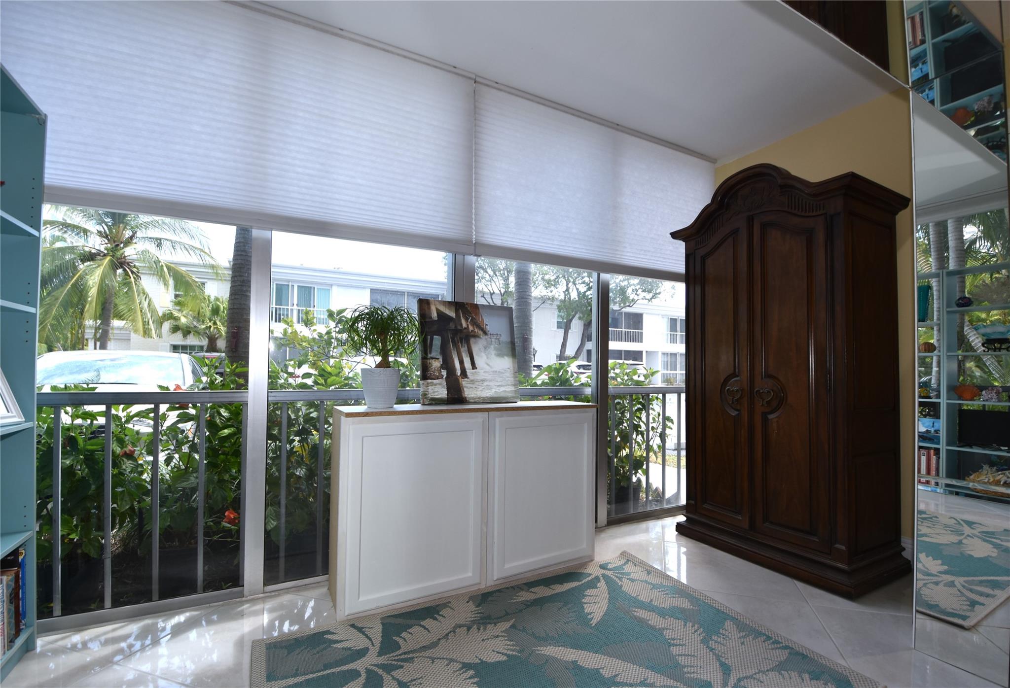 Hidden Gem! Gated waterfront living with 24-hour security. Convenient to everything! One bedroom, 1.5-bathroom, 1000 sq feet, glassed in patio, downstairs end unit, tiled throughout, all newly painted, remodeled master bathroom, new tiled shower, #2 units in the buildings have a large storage closet in the unit, built in extra cabinets, little outside garden area, newer AC and so much more! This community offers 3 rec rooms, 4 heated pool (one with intercoastal views) BBQ grills, tennis/pickle ball courts, fitness rooms, pool tables, yacht club and social activities, the list goes on. Best of all its CHEAP dockage for your boat...only $1.50 per foot per month. Jump on boat and take off. Live your dreams here in the best community in Fort Lauderdale!