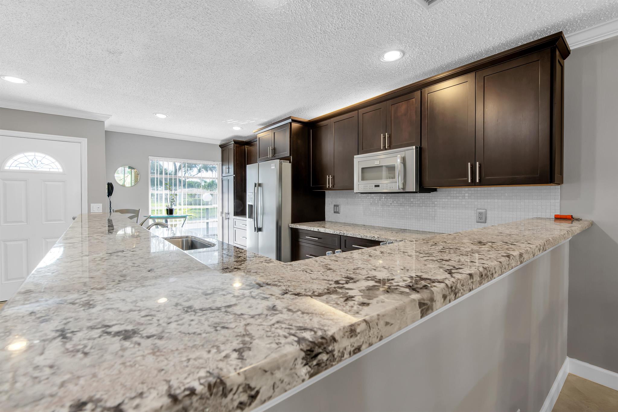 Boca Lakes is a gated 55+ community, centrally located in Boca Raton. This 2 bedroom 2 bathroom villa has a spacious lot and has been completely renovated. Enjoy an oversized kitchen with Thomasville wood cabinets, gorgeous granite countertops and soft close draws. In addition, the unit has recessed lighting, a stackable washer and dryer and newer electric panel. The roof is only 2 years old. Monthly maintenance includes water, extended cable, roof maintenance, gate and common area. Great location, closet to I-95, Turnpike and Town Center Mall, walking distance to shopping plazas and Uptown Boca.