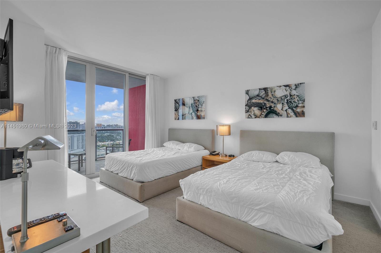 Flexibility Meets Luxury! 2BR & 2 BA on the 25th floor in vibrant Hallandale Beach.Unique split design: a cozy studio AND a separate 1BR with a living room & kitchen. Rent separately or combine. South-facing views promise daily sunshine & breathtaking skylines. Modern amenities, steps from the beach, cafes & shops. Building bonus: short-term rentals allowed! Ideal for investors & personal escapes. A blend of convenience, luxury & beach life awaits. Grab this gem!