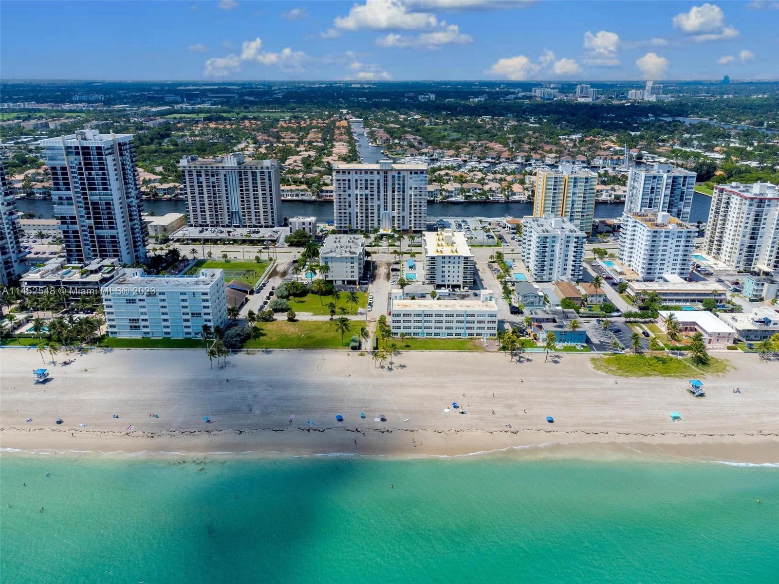 Unmatched comfort and mesmerizing intracoastal views and refined interiors characterize this exquisite 2-bedroom convertible, 2-bathroom corner condominium, nestled on Hollywood Beach. This turnkey, corner unit spans a luxurious 1,287 sqft. It offers an open wraparound balcony for an unhindered view of the sparkling waters and Hollywood's skyline. Upgraded kitchen to entertain and cook with ease in the stylish, open kitchen outfitted with stainless steel appliances, granite counters, and wooden cabinets that complement the backsplash perfectly. The Diplomat Hotel, Margaritaville, golf courses, and Hollywood Beach's renowned Boardwalk are all conveniently close by. The building offers resort amenities including community pool, full gym, sauna, library, and many more.