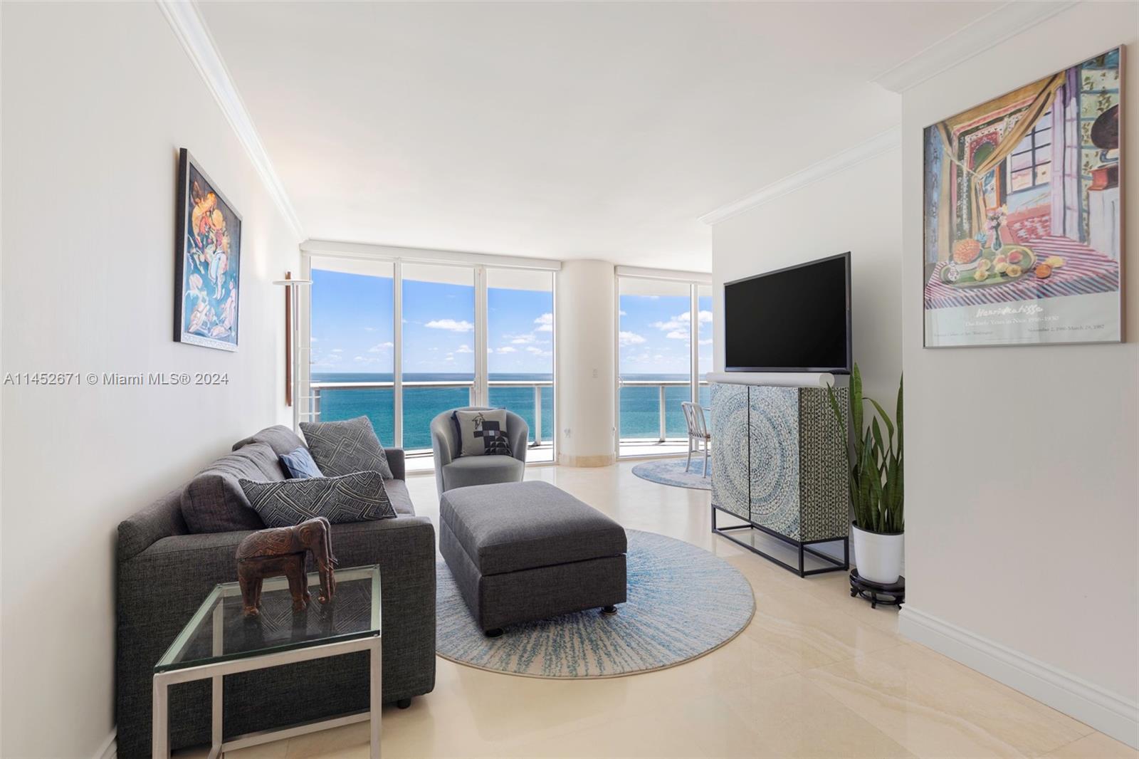 AKOYA's "DIRECT OCEAN VIEW RESIDENCE IN THE SKY". Own the breathtaking views of the Atlantic Ocean. Large balcony and floor-to-ceiling windows. Inside, marble floors in the common areas, and classy dark wood floors in the bedrooms. The building offers exceptional amenities: Beach service, fully equipped gym, racquetball, tennis, sauna, pool, outdoor grill area, 24-hr security/concierge service, business center, and valet parking. Close to shops, restaurants, schools, and hospitals. Don't miss this exceptional opportunity!