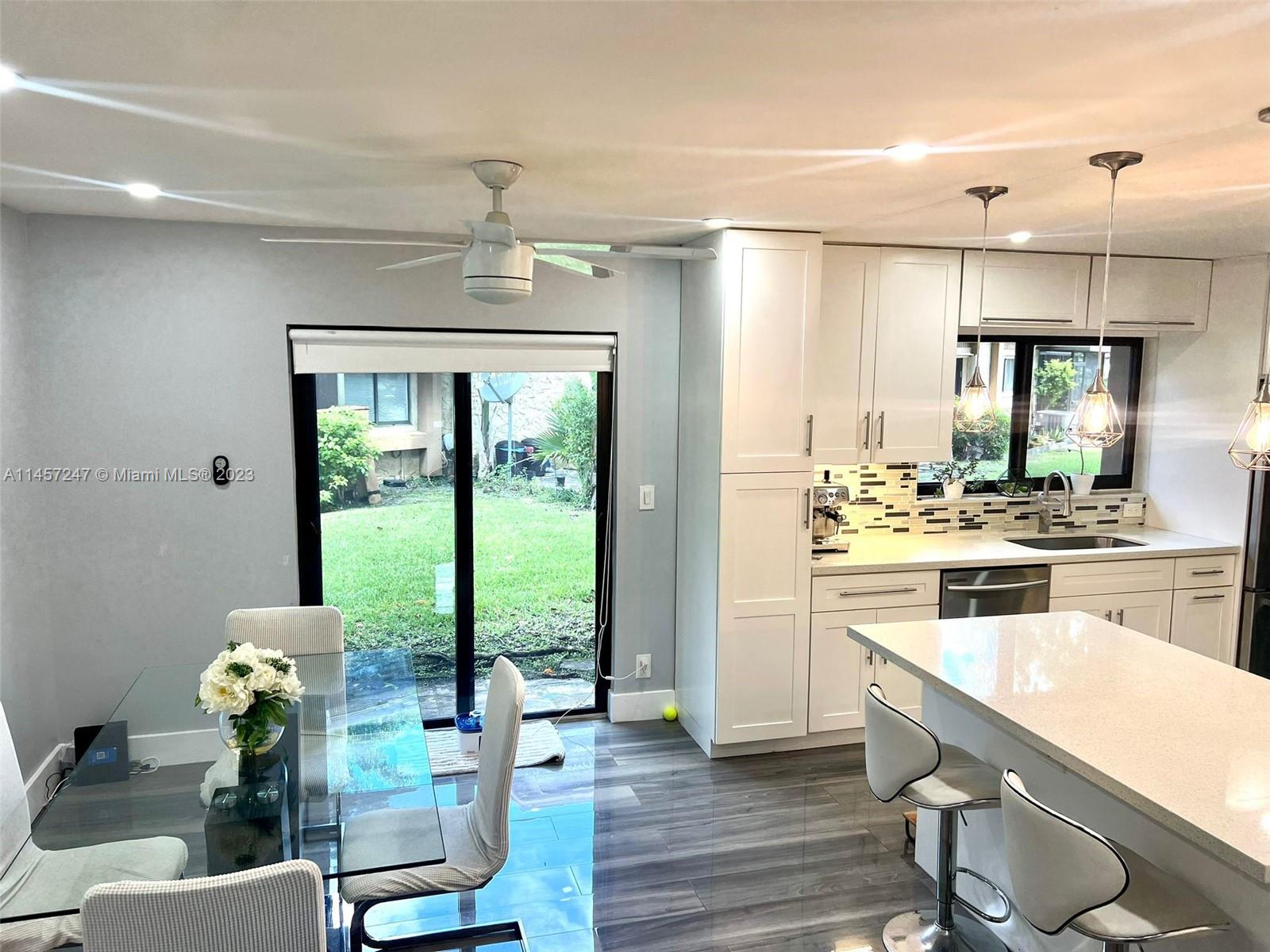 3 bedrooms and 2.5 bathrooms amazing townhouse for sale in excellent location, quiet and central community in Plantation. Completely remodeled home with modern kitchen, tile floors with gleaming wood look downstairs and laminate floors upstairs around all bedrooms and stairs. No popcorn on the ceilings, has led lighting! Impact windows throughout the entire property. This unit offers a nice view of the lake and green areas from its screened patio. HOA includes exterior maintenance, water/sewer and amenities. HOA requires 25%, No reserves, special assesment for roof was paid in full; the roof of this property is new and recently done! NO RENTAL RESTRICTIONS, WELCOME FIRST TIME BUYERS AND INVESTORS.