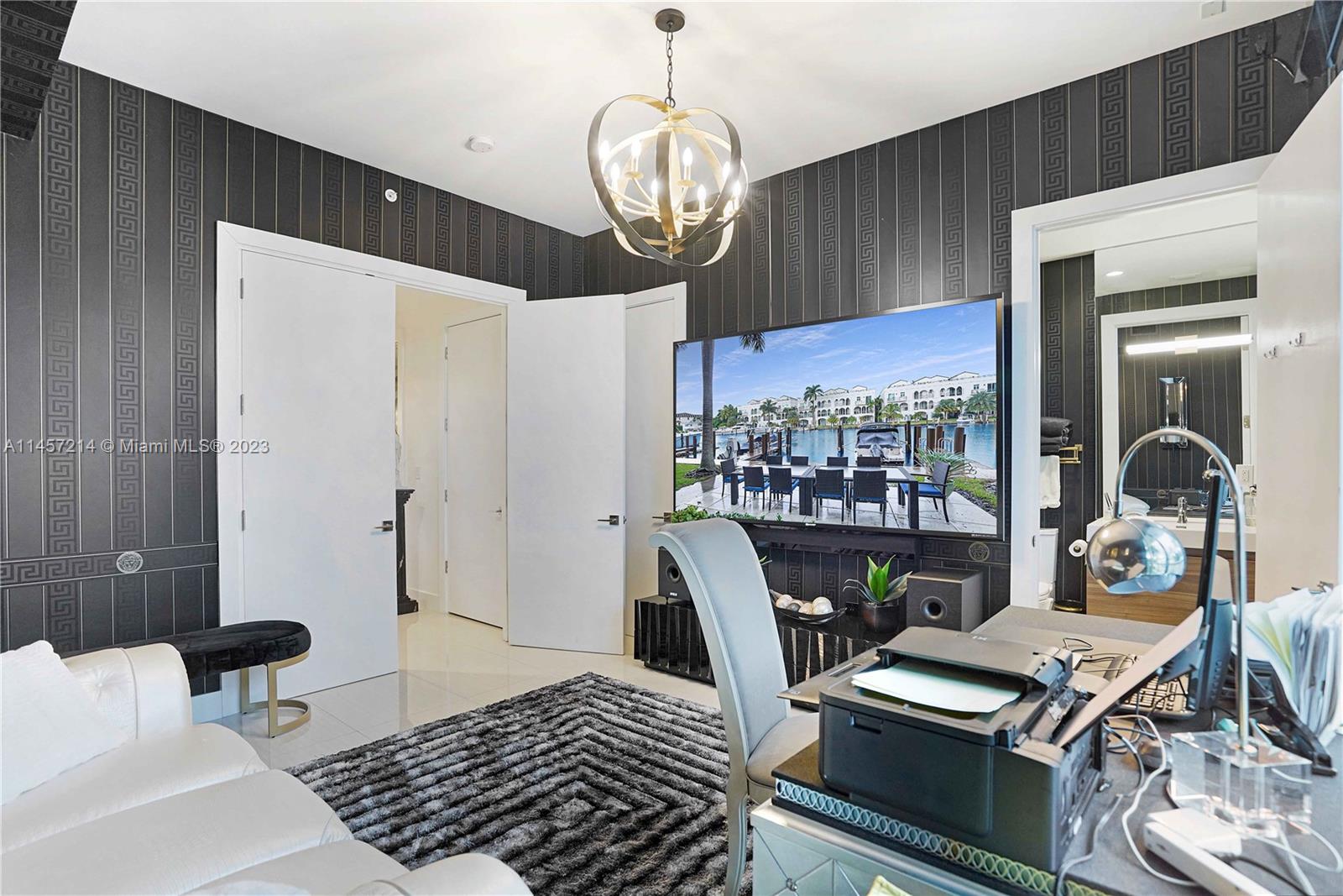 Aquavita is a contemporary, luxury boutique waterfront building with no fixed bridges to the ocean! Private line elevator leads to this exquisite Versace inspired, designer decorated corner residence offering 3 bedrooms & 3.5 baths. A dramatic foyer opens to a flow-through floor plan, with volume ceilings, porcelain tile throughout, & seamlessly integrates with the 990 ft² wraparound terrace! Top-of-the-line Wolf, SubZero appliances, floor-to-ceiling windows and sliders, custom lighting, window treatments, variety of opulent wall treatments. Primary retreat with spa-like ensuite, 2 walk-in closets, terrace. Pet-friendly building provides wide array of amenities; private/owned 50' boat slip, 65' saltwater pool, cabanas, kayak storage, gym, 2 spots in gated/covered garage with guest parking.