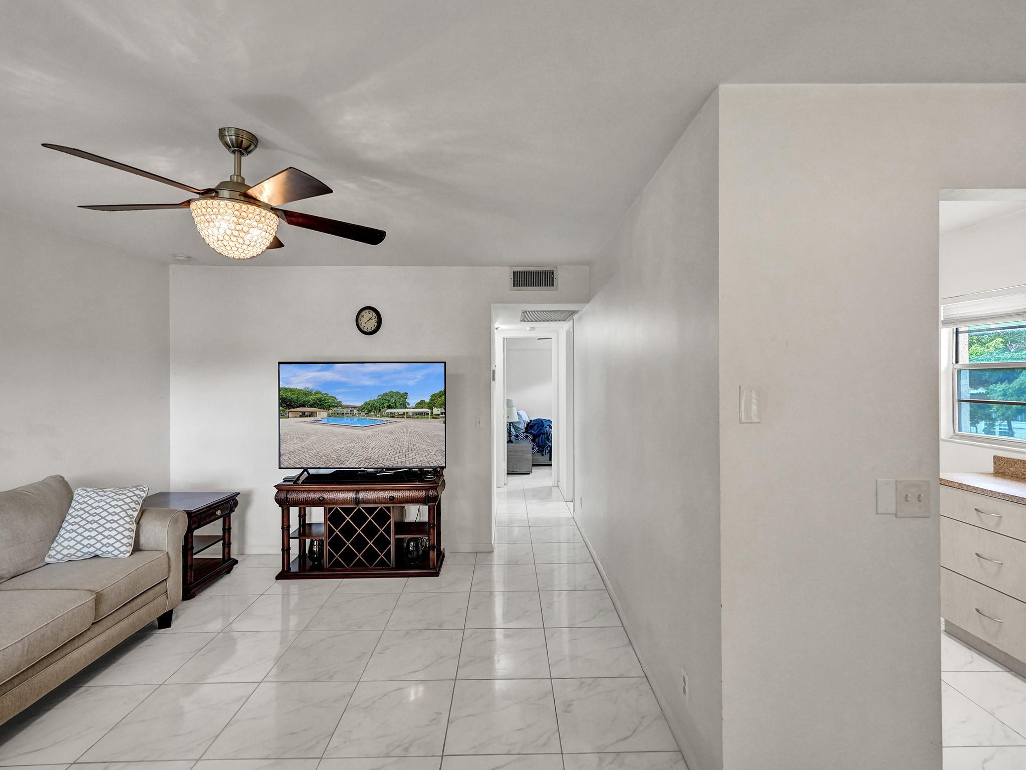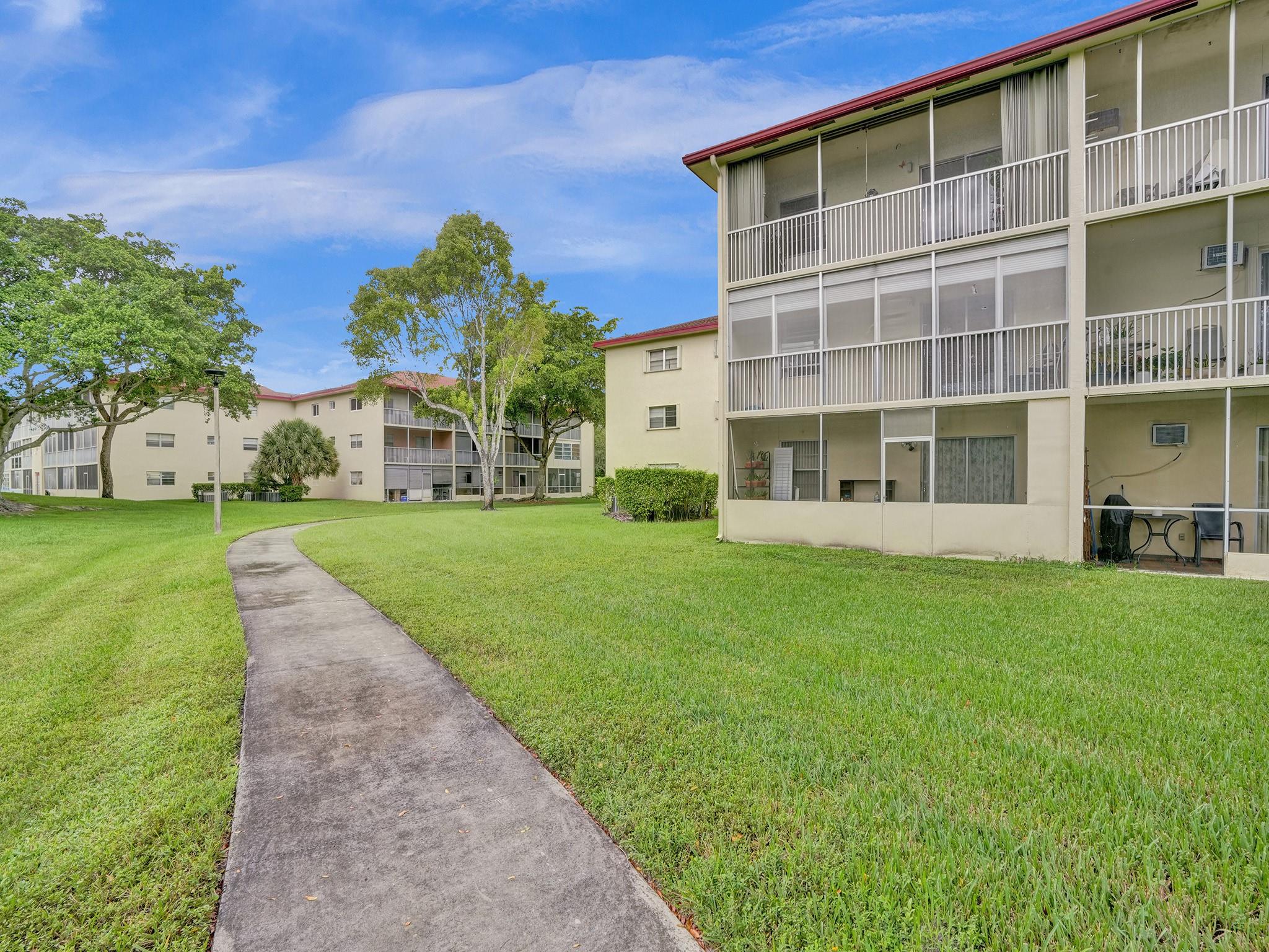 Great opportunity to buy at a perfect place, at the BEST Location! Whether you are downsizing, empty nester, first time buyer or INVESTOR, this is it!!No Rental Restriction! This unit can be rented immediately. This is a very private unit, corner building unit, spacious layout, windows in every room, renovated, tiles throughout, long, spacious screened balcony with fantastics views of pool and garden, Newer AC, Central Air. This community is among the very best in South Florida with all the amenities and activities you can think of, indoor and outdoor pools, tennis, two fitness centers, transportation, Guard Gated Community, and much more. Exterior, roof insurance, cable, internet and water included in the association. This is a 55+ community. 650 Credit score min required by HOA.