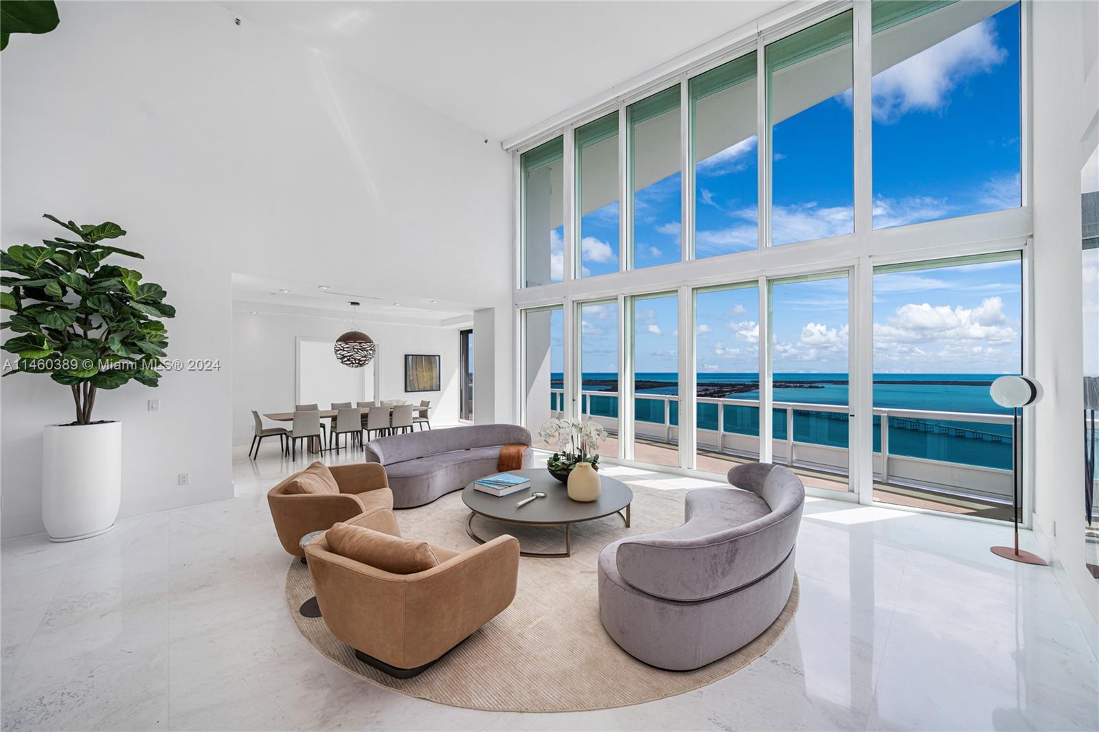 Experience unparalleled luxury in this breathtaking 2-story PENTHOUSE offering 360-degree views of Biscayne Bay & the Miami skyline. Located on the 49th & 50th floor of the highly-coveted Santa Maria building in Brickell, this 10,000 SF sky mansion is artfully furnished with curated pieces from Artefacto. The primary suite wing boasts a terrace, dual spa-like bathrooms & walk-in closets. Additional highlights include walls of dual-level floor-to-ceiling glass, multiple spacious entertaining areas, gourmet chef’s kitchen w/butler's pantry & high-end appliances, private rooftop plunge pool w/picturesque views, & so much more! Amazing building amenities include a newly completed fitness center, spa, pool, tennis court, restaurant, & 24-hour concierge. Boat slips are available for purchase.