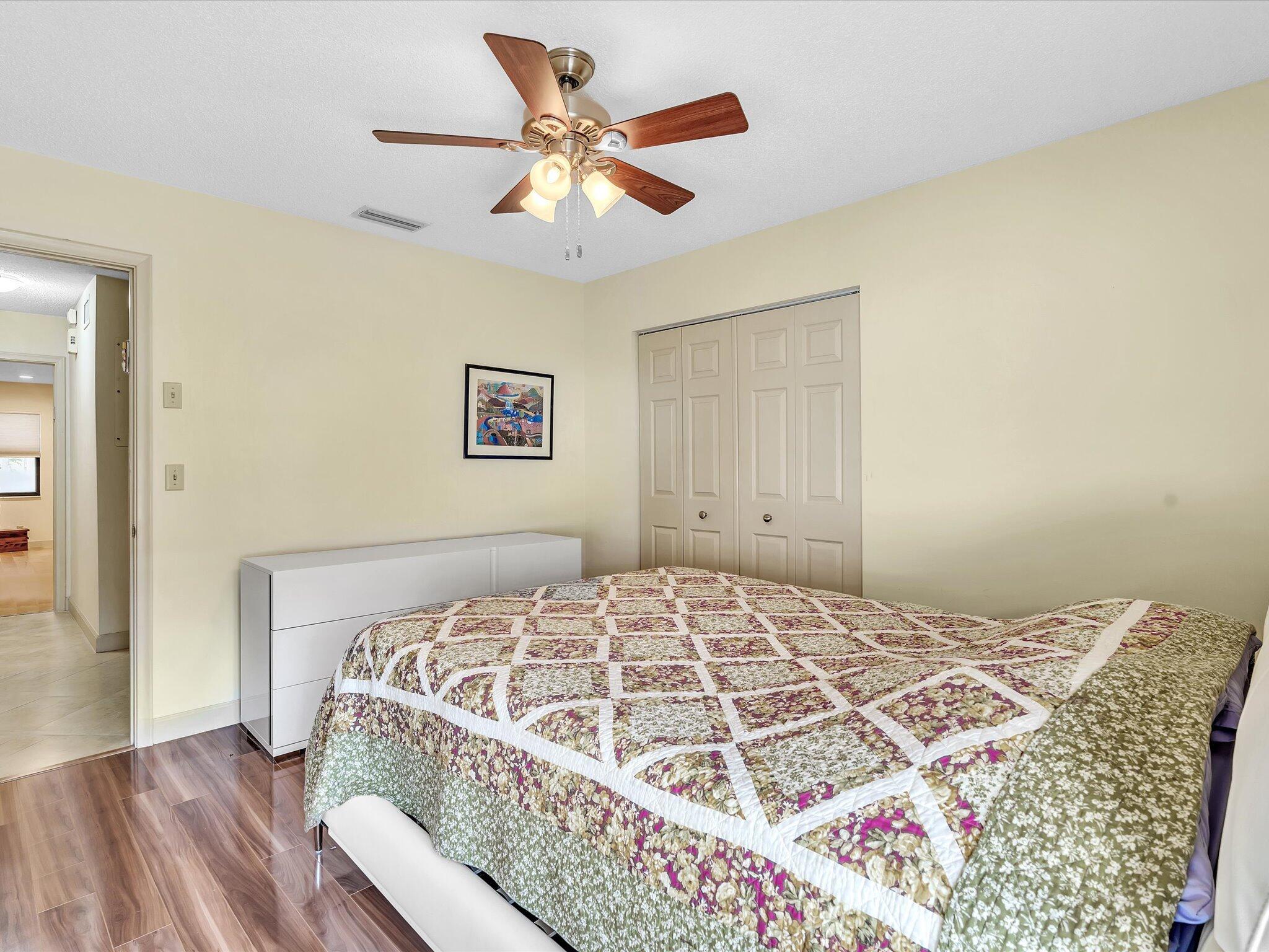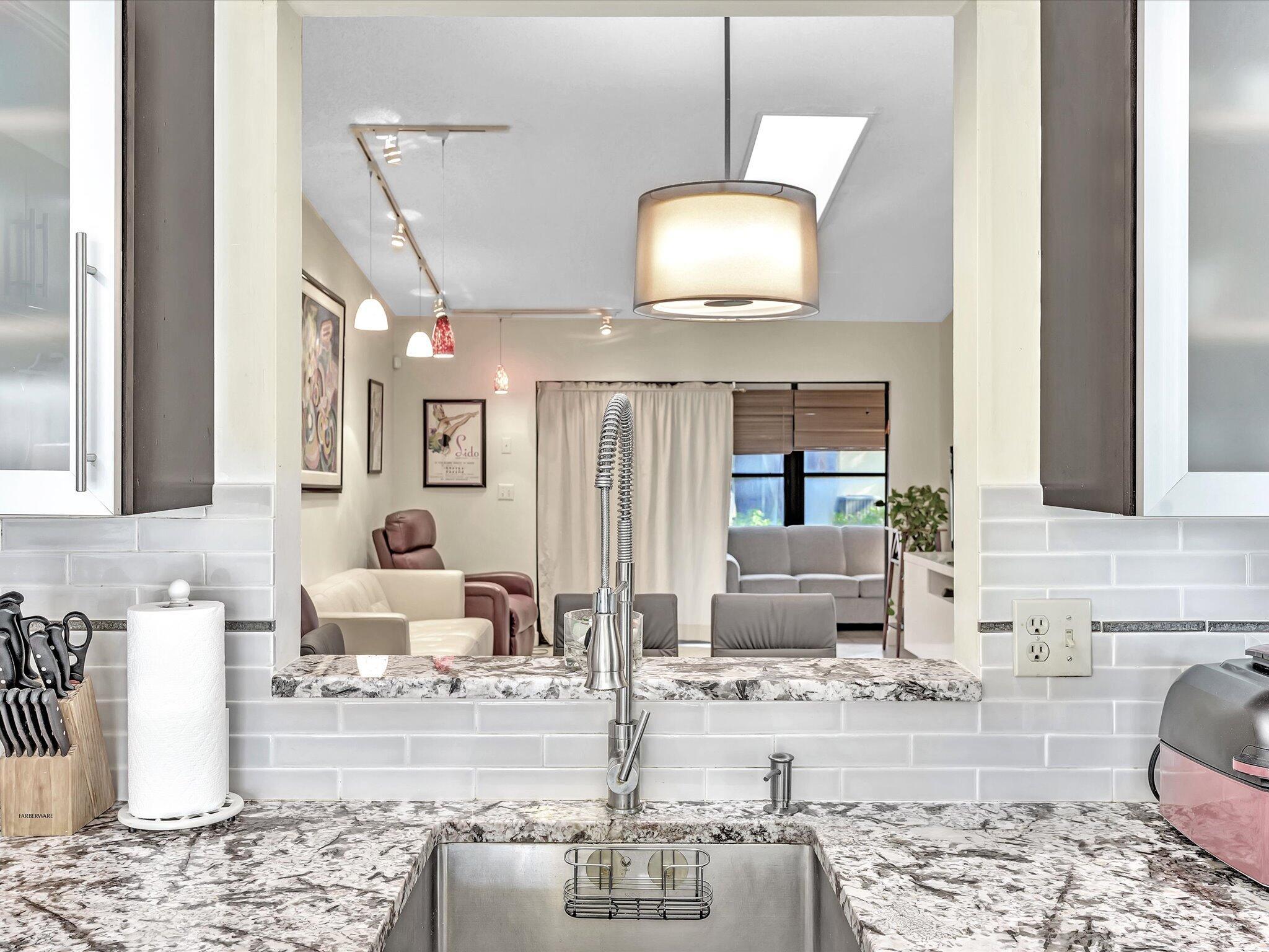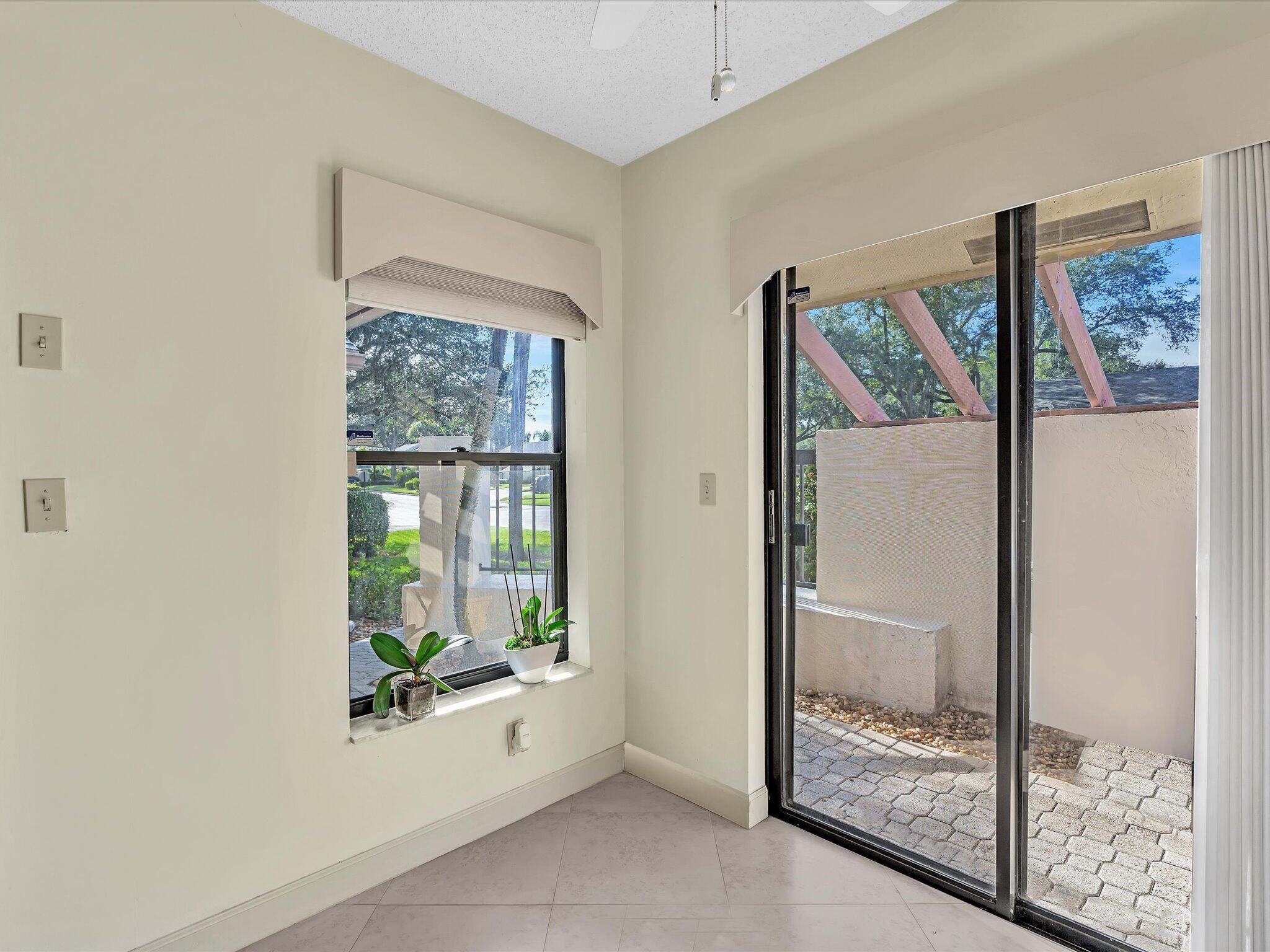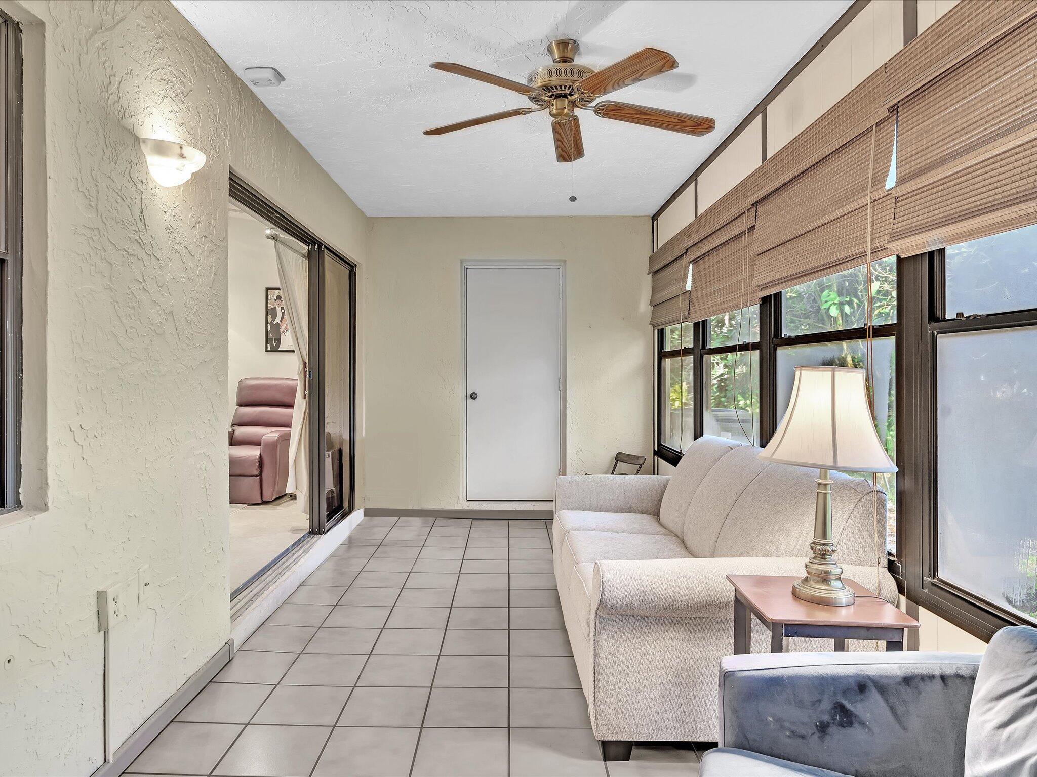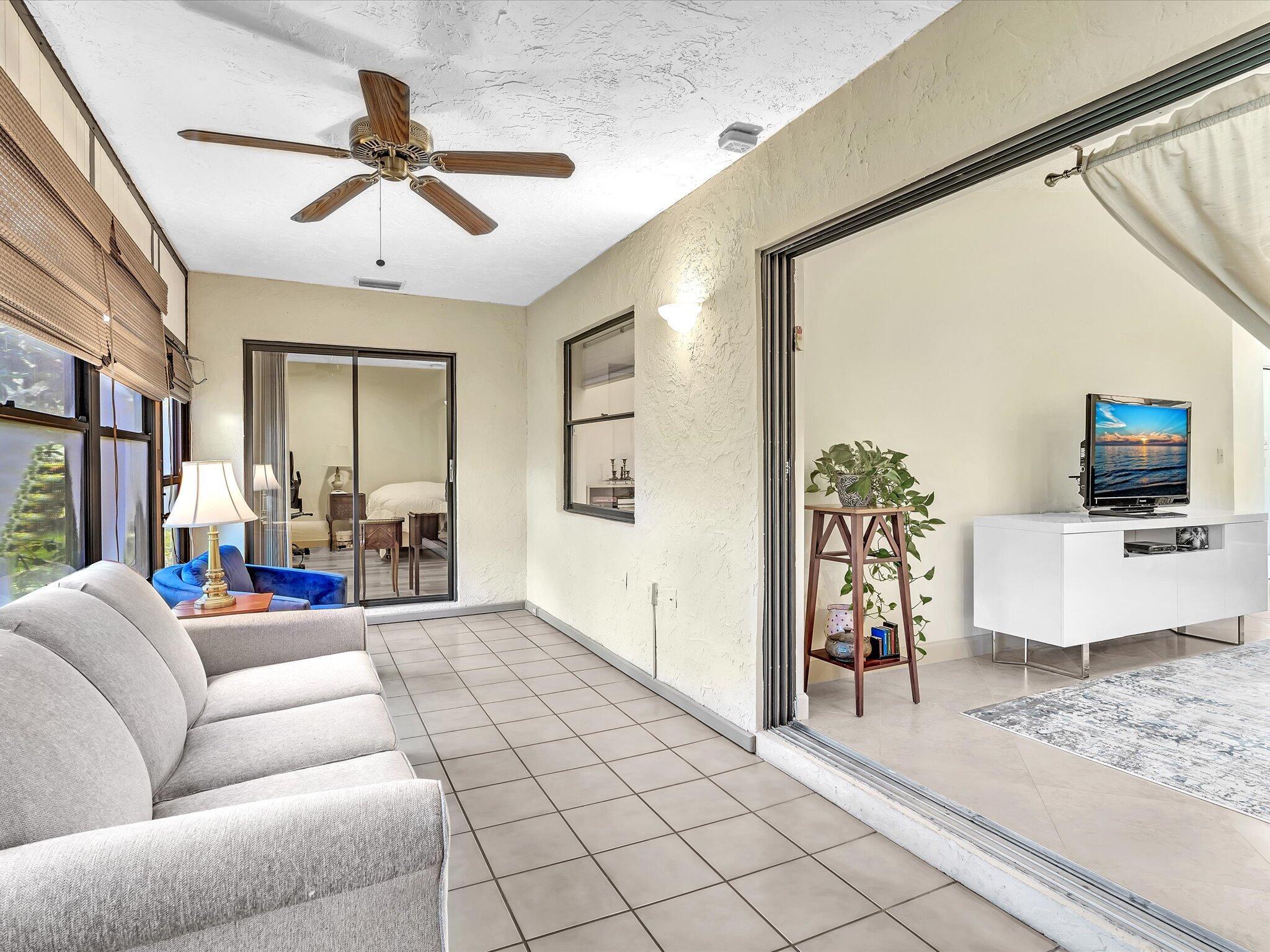 This rare 3 bedroom corner Villa with beautifully renovated kitchen and baths in 55+ plus 700 credit score required. The spacious main living area has a vaulted ceiling and largeskylight. Stunning high end kitchen with granite counter tops, European style cabinetry and breakfast area with slider to outside sitting space. Bathrooms with granite counters, newer cabinets and toilets. Shower in master with seat and tub in second bath with frameless shower door. Neutral tile flooring throughout main living area, kitchen and hallway. Laminate floors in bedrooms. Tons of closet space including large walk-in in master. Full size washer/dryer conveniently located between all bedrooms. The patio is enclosed and air conditioned which gives an additional room if desired or use as an open patio