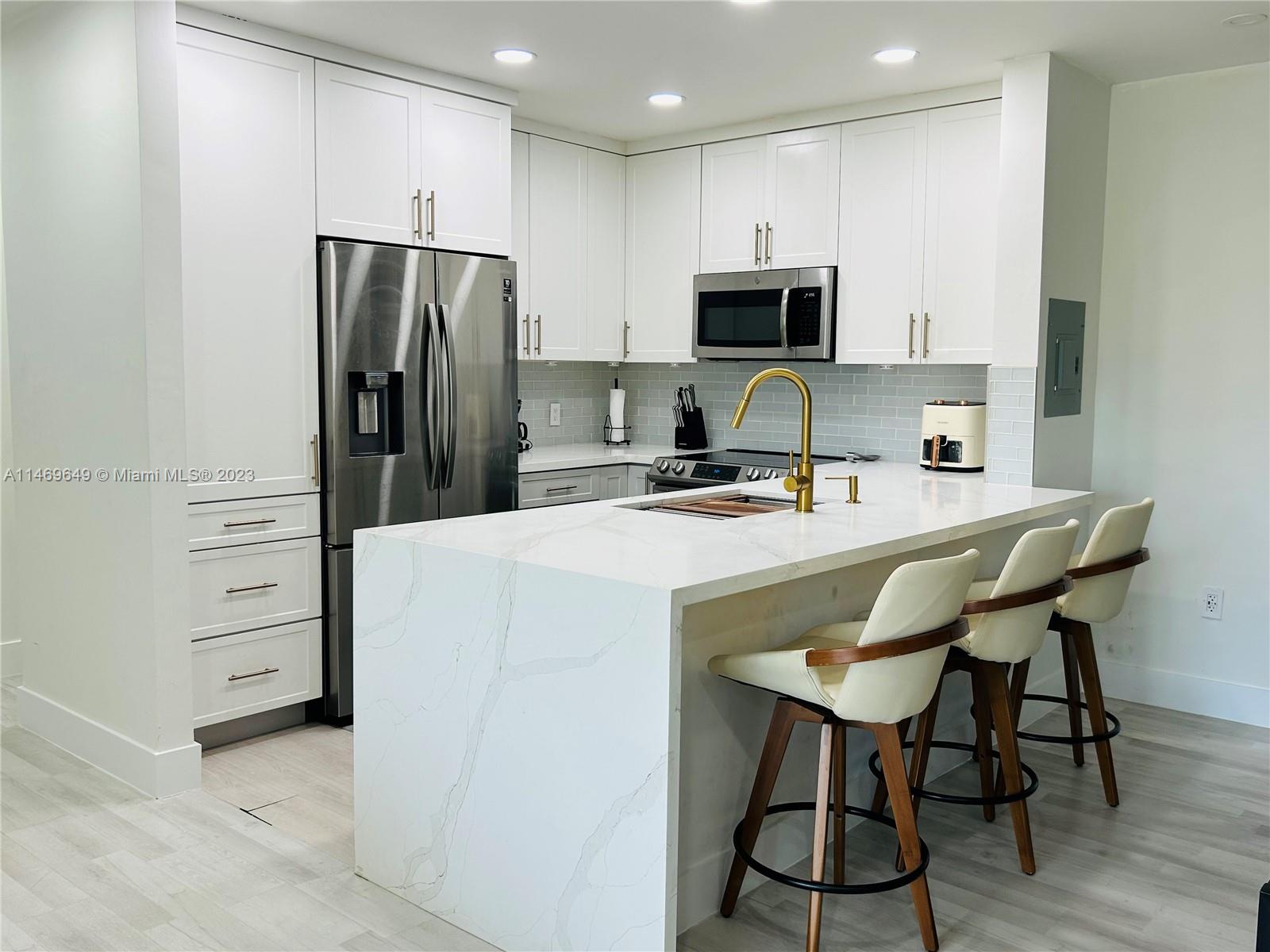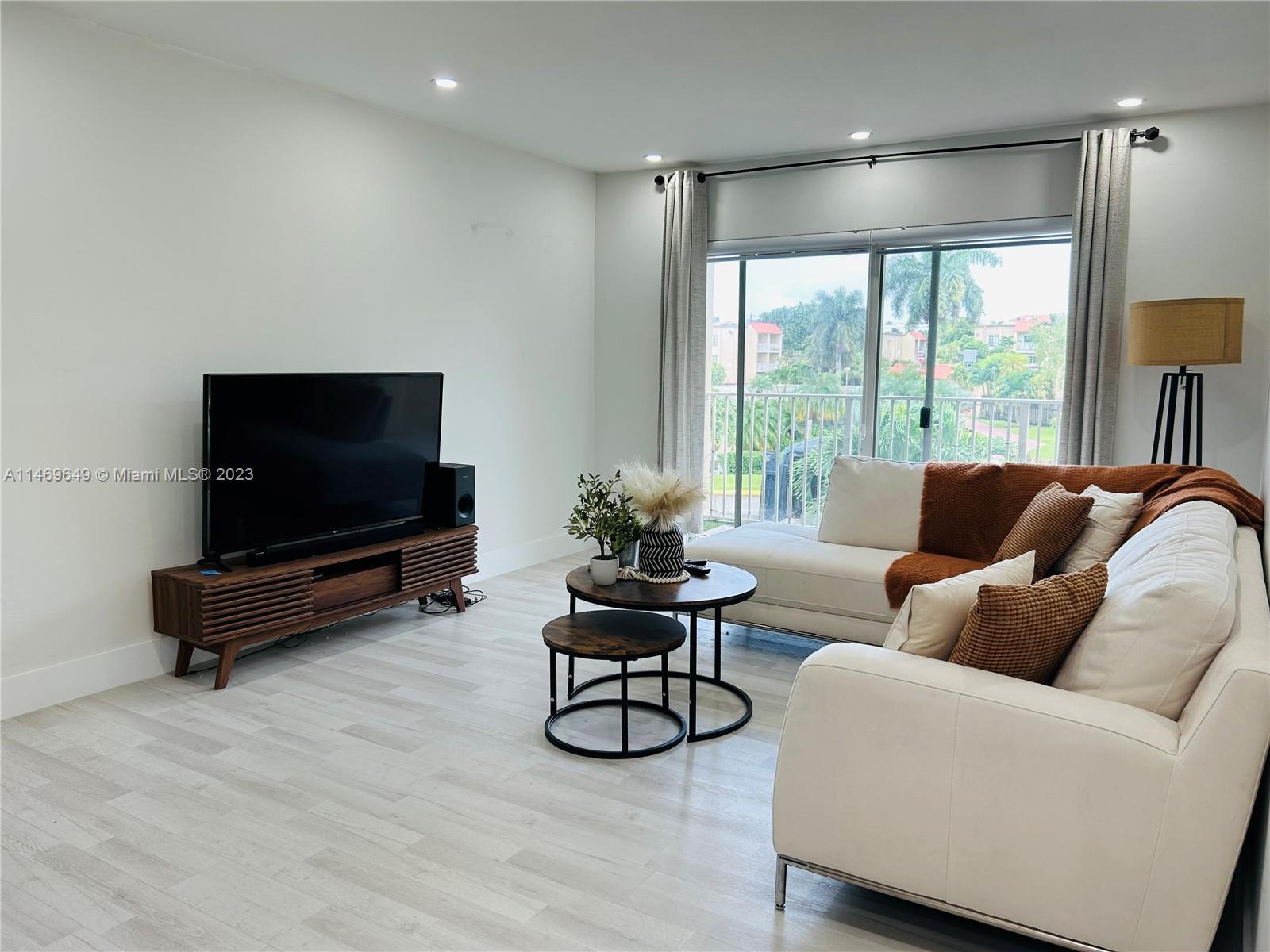 Fantastic Corner Unit in Doral Gardens II Community. This apartment has been tastefully remodeled. The Unit features a new Open Concept kitchen with QUARTZ countertop and stainless-steel appliances. Master bedroom with walk-in closet and bathroom inside, ceiling fans with remote control, and new vertical blinds. Recessed lights are installed inside the entire property and can be controlled by phone or Alexa home pod. New electrical system. New A/C duct. Balcony overlooking the garden, lake, and street view. Community offers clubhouse, fitness center, community pool, playground, and tennis courts.