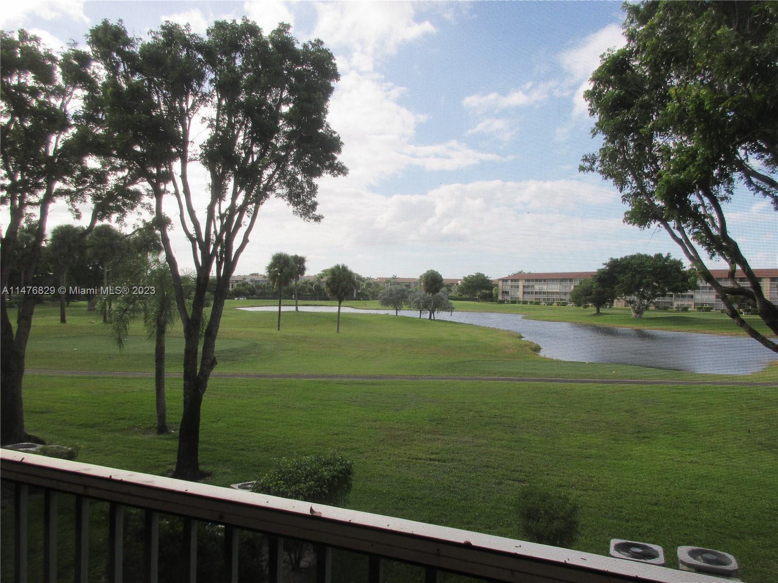 **Repriced!!** Fabulous Kingsley! Enjoy Century Village at its very best! Century Village is a 55+ gated community with resort-style services and amenities. This updated second-floor unit is freshly painted and has an updated kitchen, laminate wood floors, and updated bathrooms. With 2 bedrooms and 1.5 baths, this spacious, light, and bright condo is move-in ready!. Enjoy panoramic golf and water views from the large screened balcony off the Master Bedroom. Wonderful open floor plan. Elevator building. The assigned parking space is in front of the unit. The community is located just east of 1-75, with lots of great restaurants, shopping, recreation, and major roadways nearby. Buyer must have a minimum credit score of 650. Please see the Broker's remarks. Showings via Show Assist.
