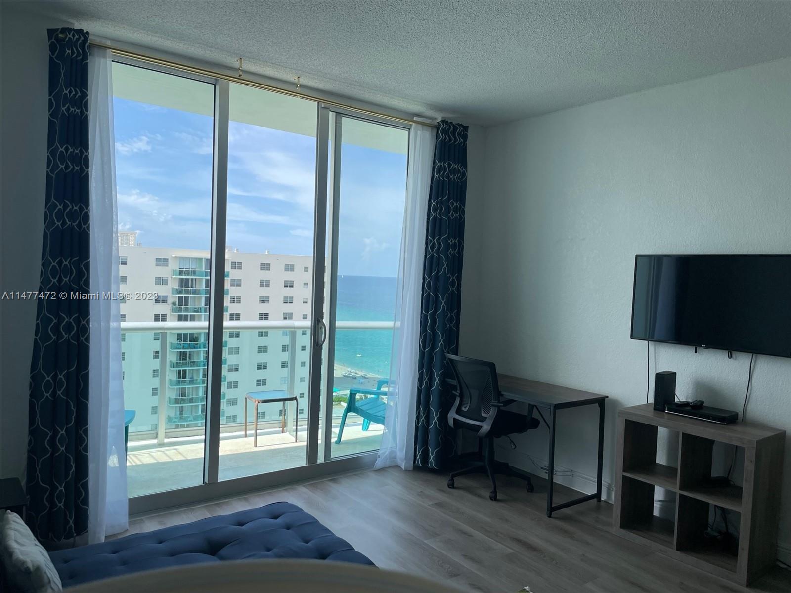 Amazing Ocean view from this Penthouse 1 bed room apartment at the beachfront building in Hollywood. High Ceilings make this place very bright. Laminate floor. Can be sold furnished or not. Walking closet in the bedroom. Laundry machines located in the building on each floor. Maintenance includes Fast Internet and Cable TV, water, central a/c. Resort offers large swimming pool, professional gym, movie theater and a convenient store. Beach service available for a low fee. Reception, Security and Valet services 24 hours. Resort is well managed and has great reviews. Apartment can be rented daily, no restrictions. Owners can register Guests online within a minute. No Applications. Great choice for Investors and Great place to live. For Showings call Listing Agent. Rent daily all year around.