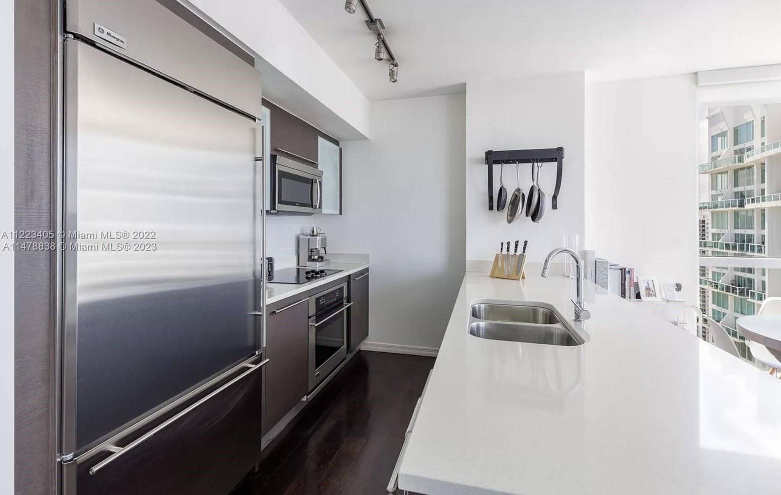 Enjoy morning sunrises and evening sunsets with this one of a kind corner unit located in the beautiful condominium of 500 Brickell. This stunning 2 bedroom 2 bathroom comes with an open and spacious floor plan with views of everything that Miami can offer. Hardwood floors will be throughout the entire unit and the kitchen comes with stainless steel appliances and quartz countertops. 500 Brickell is one of the best buildings in Brickell and offers amazing amenities including a movie theatre, spa, large gymnasium, and a gorgeous rooftop pool. The property is currently leased until July 12th, 2024.