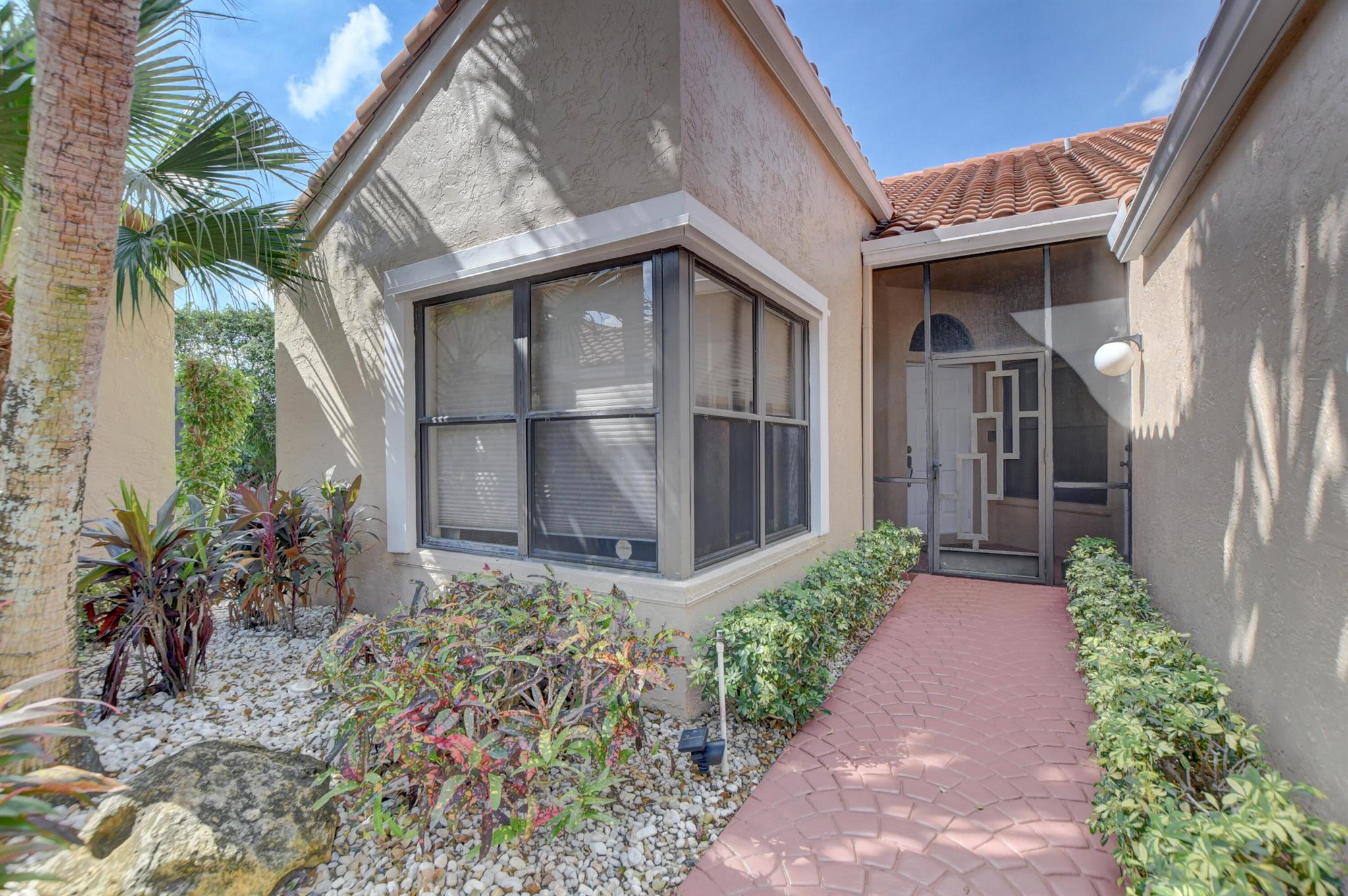 Welcome to your dream home in sunny South Florida! This property offers a perfect blend of luxury & comfort. As you step inside, you'll be greeted by the vaulted ceilings creating an airy and spacious ambiance, enhancing the open floorplan. Natural light floods in through the large windows. The kitchen features granite countertops that not only look stylish but are also easy to maintain. With plenty of storage space, you'll have room for all your culinary essentials. The sunroom is a perfect place to enjoy your morning coffee or unwind. The master bath offers dual sinks, a separate shower, and a luxurious soaking tub. This community has an array of fantastic amenities, includes: pool, a hot tub, a picturesque pier & pond, a welcoming clubhouse, tennis courts and more! Membership OPTIONAL!
