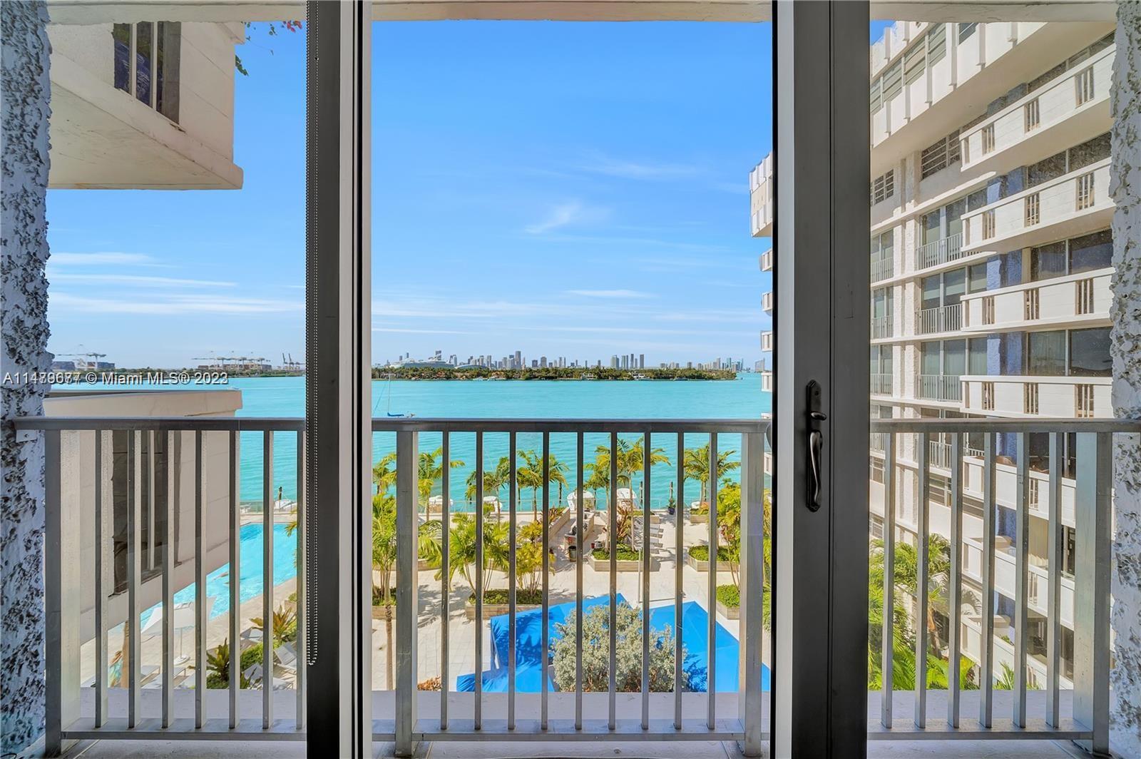 One of THE nicest 1/1's on West Ave. Direct bay view overlooking Star Island, the port and the stunning city lights of the Miami skyline .Beautifully finished, fantastic layout, large balcony, huge custom closet w/ vanity/desk. Among THE best views & locations SoBe has to offer. Each day ends with a spectacular sunset view. Both the LR & BR have floor to ceiling impact glass sliding doors providing tons of natural light.Gorgeous white quartz & stainless kitchen, lovely bath w/ slate & glass shower and porcelain "wood plank" floors throughout. 2021 energy efficient A/C saves $$$ in the summer heat. Common areas & amenities have been totally renovated. Boat dock & kayak storage! Cable and Internet included. 1 garage parking space. Recertification completed 2018.