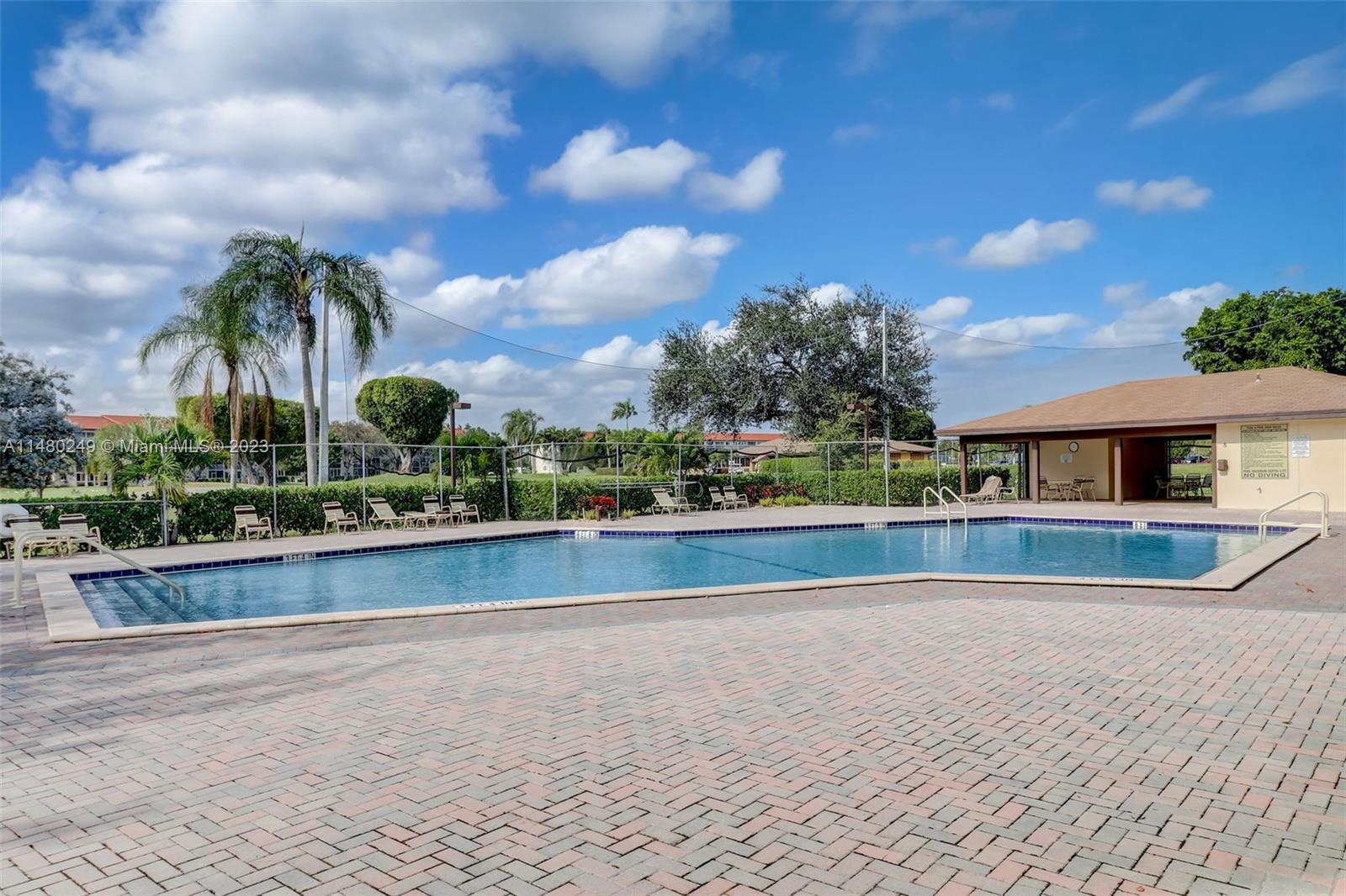 CORNER, 1ST FLOOR UNIT! VIEWS OF GOLF COURSE AND POOL. Don't miss out on this incredible opportunity to own a 2 bedroom, 2 full bath corner, first floor condo in Century Village! This unit offers a split floor plan for privacy, as well as a screened-in patio and extra-large primary bedroom with walk-in shower and closet. Plus, enjoy the added convenience of a washer and dryer in the unit. The 55+ community offers low-maintenance living, with maintenance of the grounds, clubhouse, pool, tennis, golf, amenities, clubs, activities, and bus service. Water, Cable, Wifi and Building Insurance Included. This condo is priced to sell as is.