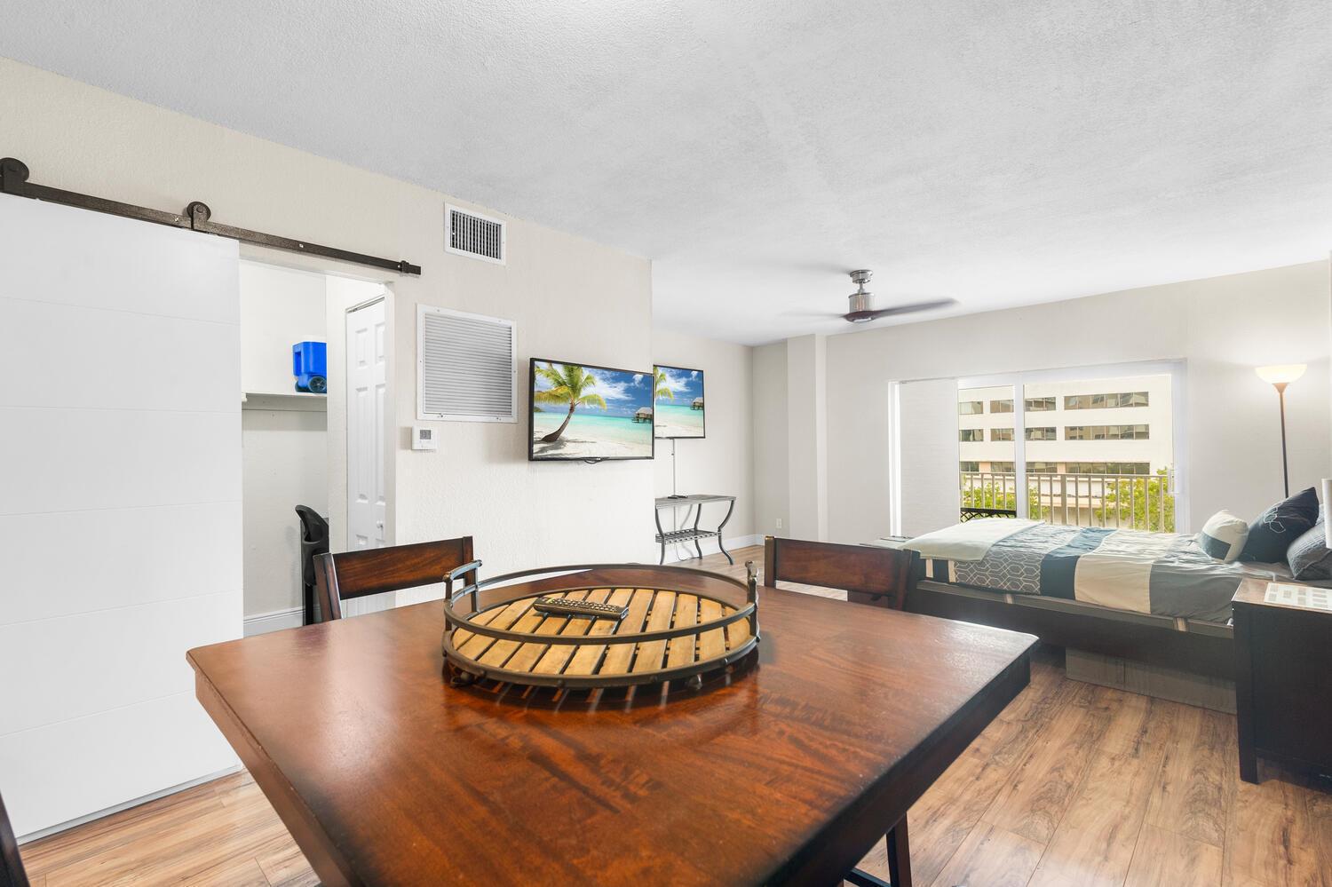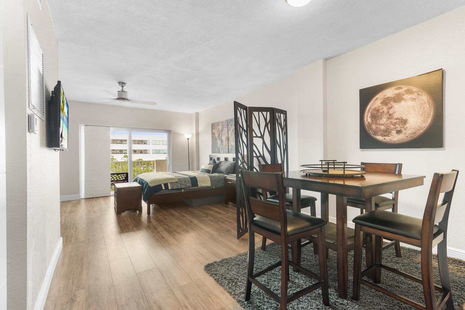 Island Place gem: Furnished Studio in North Bay Village. Upgraded w/new HVAC, impact glass, SS appliances. Custom kitchen, wooden floors, modern shower. Reserved parking. Amenities: pool, gym. Prime location, on-site management. Perfect Miami living, minutes to beaches/dining. A true find!