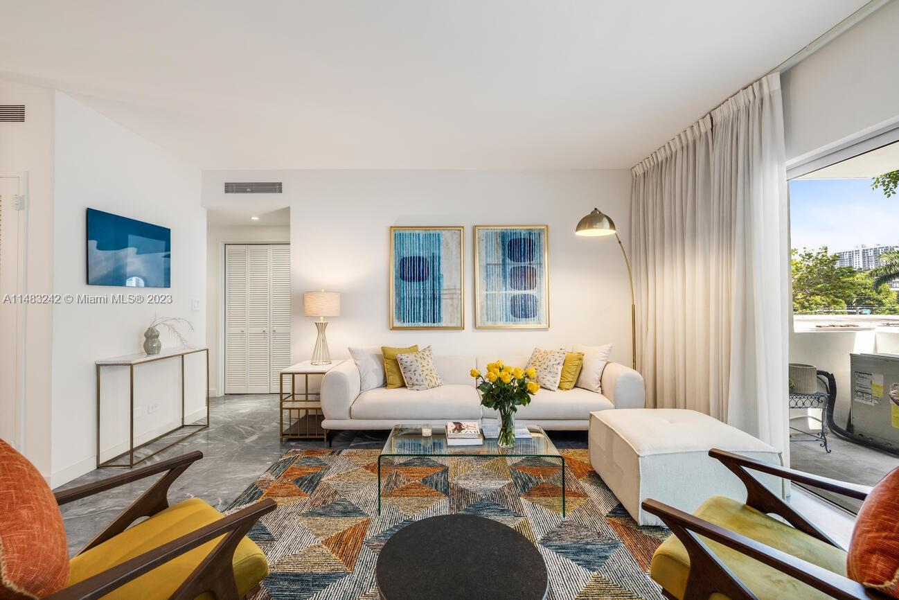This meticulous 1 bed / 1 bath has been completely gutted & tastefully designed. Unit 3L features elegant grey marble floors, new re-designed kitchen, large open living room, ample finished closet spaces, impeccable bathroom with designer lighting, large master bedroom, sheer drapes in both bedroom and living room, nice size balcony with the Island Terrace signature Banyan Tree & park view. This Is a Classic Morris Lapidus Bay front Building. In Beautiful Belle Isle. Great walkability to shops, stores & theaters, situated across from the Standard Hotel. Internet & Cable included in the Monthly Maintenance along w/ one assigned parking spot.