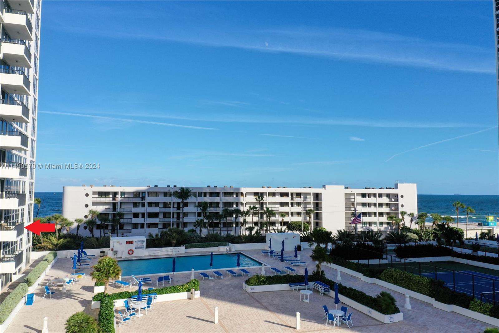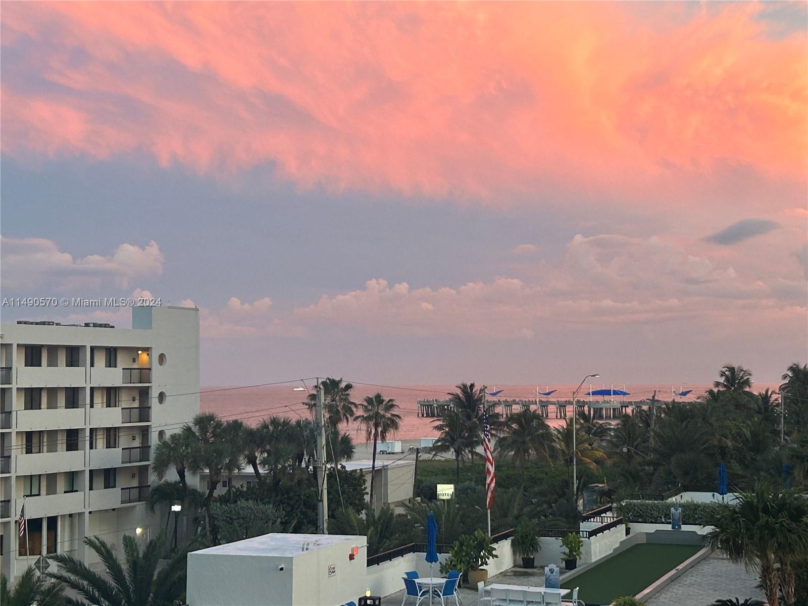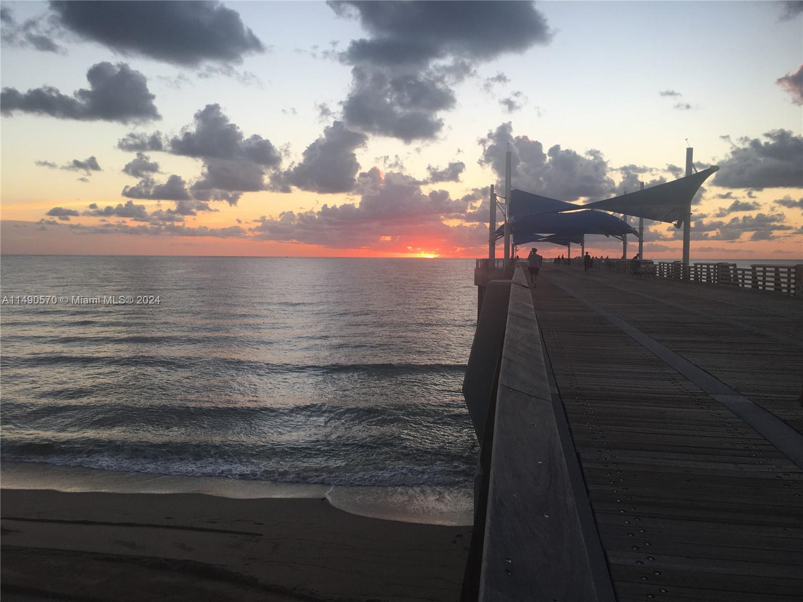 Amazing panoramic views of the ocean and pier with breathtaking sunrises and sunsets from this 6th floor unit. Enjoy a morning coffee at sunrise or a sunset unwinding from its balcony. Stunning views from all the rooms! It includes two assigned garage parking spaces. Direct access to the beach. Dues include water, sewer, trash, roof, exterior, building insurance, cable/wifi. Completely Renovated in 2020, new water heater, impact windows. It features kitchen with quartz countertops and stainless-steel appliances, 2 primary bedrooms, walk-in closets, vinyl floors throughout. Resort style amenities including: 2 Olympic size heated pools, Tennis, Pickle ball and Bocce courts, grills, gyms, sauna, bike and storage rooms, party room, library, car wash area and more.