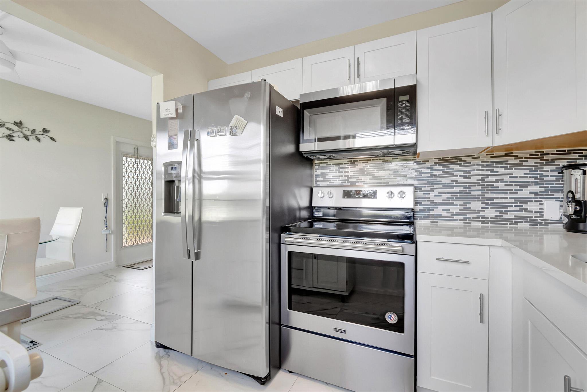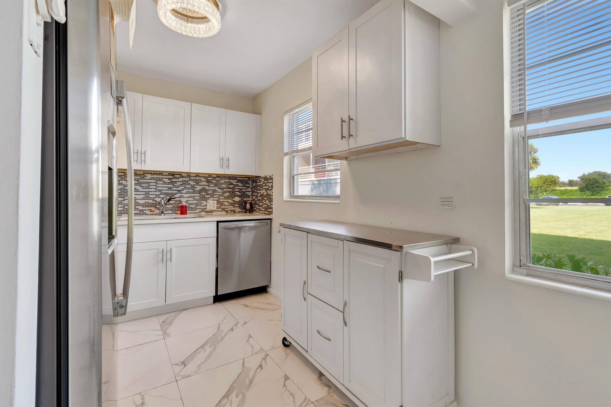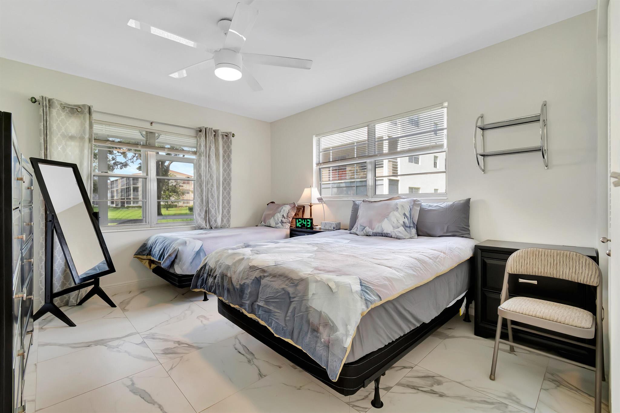 Welcome to your new home in CENTURY VILLAGE in the heart of WEST BOCA, where safety meets convenience. This METICULOUSLY REMODELED 2BR/1.1BA GROUND FLOOR condo is situated in a secure 24-HOUR MANNED AND GATED COMMUNITY, offering peace of mind and privacy.A rare opportunity awaits for you in this OUTSIDE CORNER condo, this residence boasts UNOBSTRUCTED LAKE VIEWS, providing a serene backdrop to your everyday life. Step inside to discover a modern haven with an UPDATED KITCHEN featuring white quartz countertops, a stylish tile backsplash, and stainless steel appliances. The 24' TILE FLOORING THROUGHOUT adds a touch of sophistication, while BOTH BATHROOMS HAVE BEEN TASTEFULLY REMODELED.