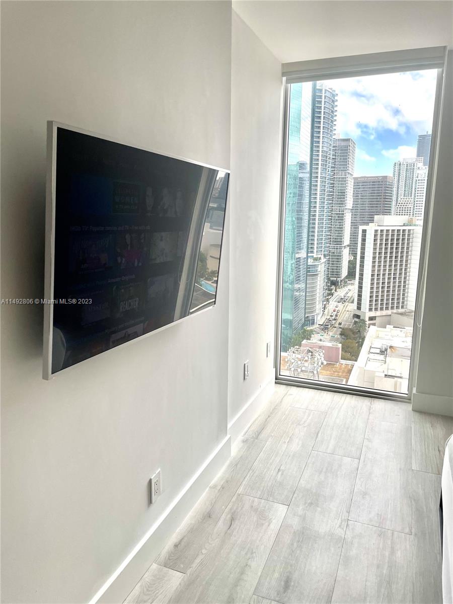 High Floor. South, Best view. Available Immediately. 1 BEDROOM Unit. Furniture available. Recently remodeled 1 bed 1 bath has SEPARATE bedroom and living room. NEW flooring. NEW extended kitchen with lots of storage. Quartz backsplash and waterfall. Washer and Dryer. 10' Ceilings to floor window panels. Extraordinary location, just blocks away from Bayside, Shopping & Brickell City Center. Many amenities. Pool on roof top with 360- degree views. Skyline lounge. Gym and lounge and work areas. Penthouse 2 story clubroom and lounge. Beautiful Views. Water and Internet included. Parking not included. Auto Parking Options are monthly nearby parking garages at rates $80 to $175 month.