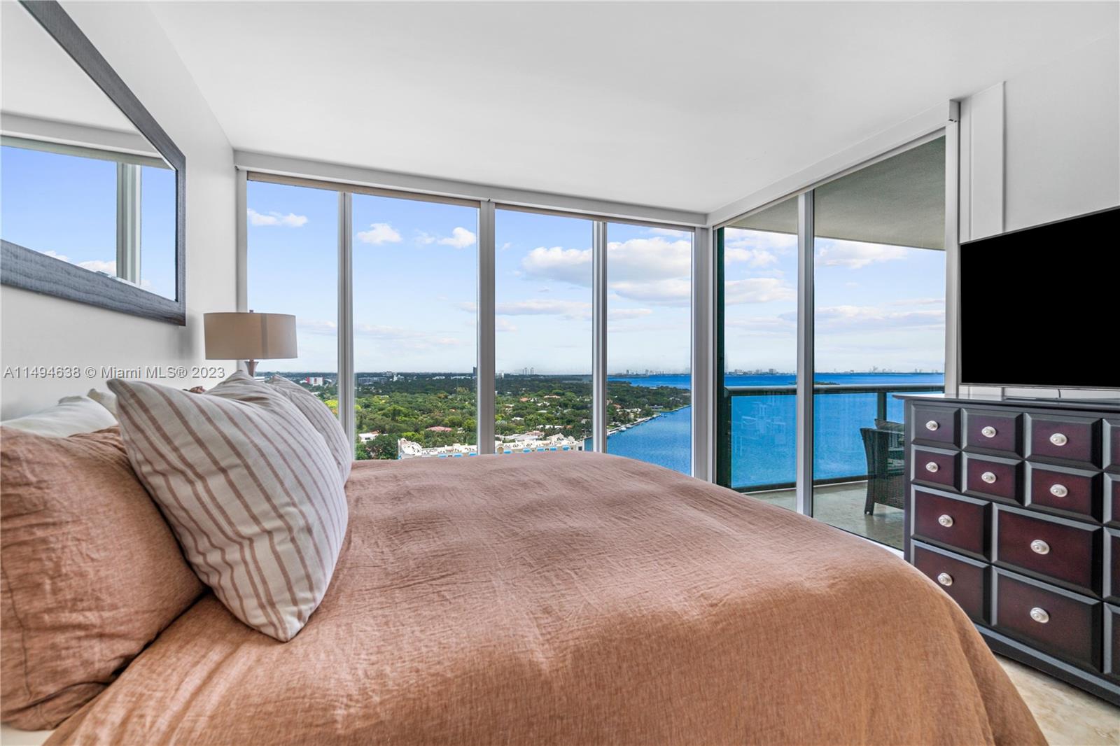 This two-bedroom, two-and-a-half-bathroom residence boasts panoramic water views from every vantage point within the apartment. Beyond its exquisite design, the unit offers a spacious interior complemented by an exceptional layout. Enhancing privacy, each floor of this building accommodates only three units per elevator. The property includes additional storage space, along with two designated parking spots and the option for a third through valet parking.