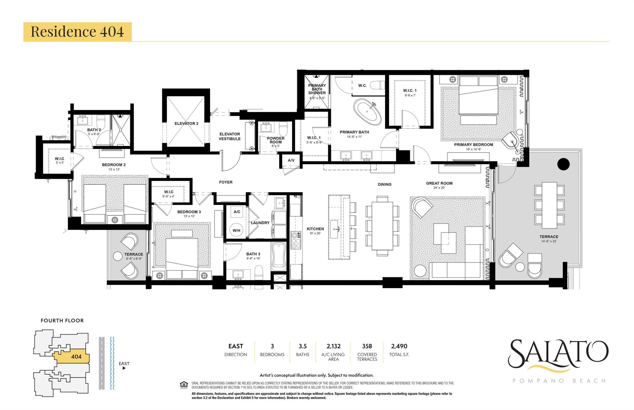 Sales Gallery located at 3200 E. Atlantic Blvd.Experience unparalleled luxury living at Salato Residences in Pompano Beach. Gorgeous Direct Ocean Residence. This ultra-exclusive boutique building, developed by US Developments, designed by Randall Stofft, offers 40 private residences with 3 bed/3.5 bath layouts ranging from 2100 to 3354 sq ft. Enjoy 14' expansive terraces, floor-to-ceiling windows, and top-tier amenities, including a 20,000 sq ft ocean-view deck, spa, poolside lounge, and dual outdoor Viking grilling kitchens. With 24hr concierge, full-time beach & pool attendant, and a public restaurant on-site, Salato Residences redefines sophisticated coastal living, please inquire for details. Delivery Q1 2026.