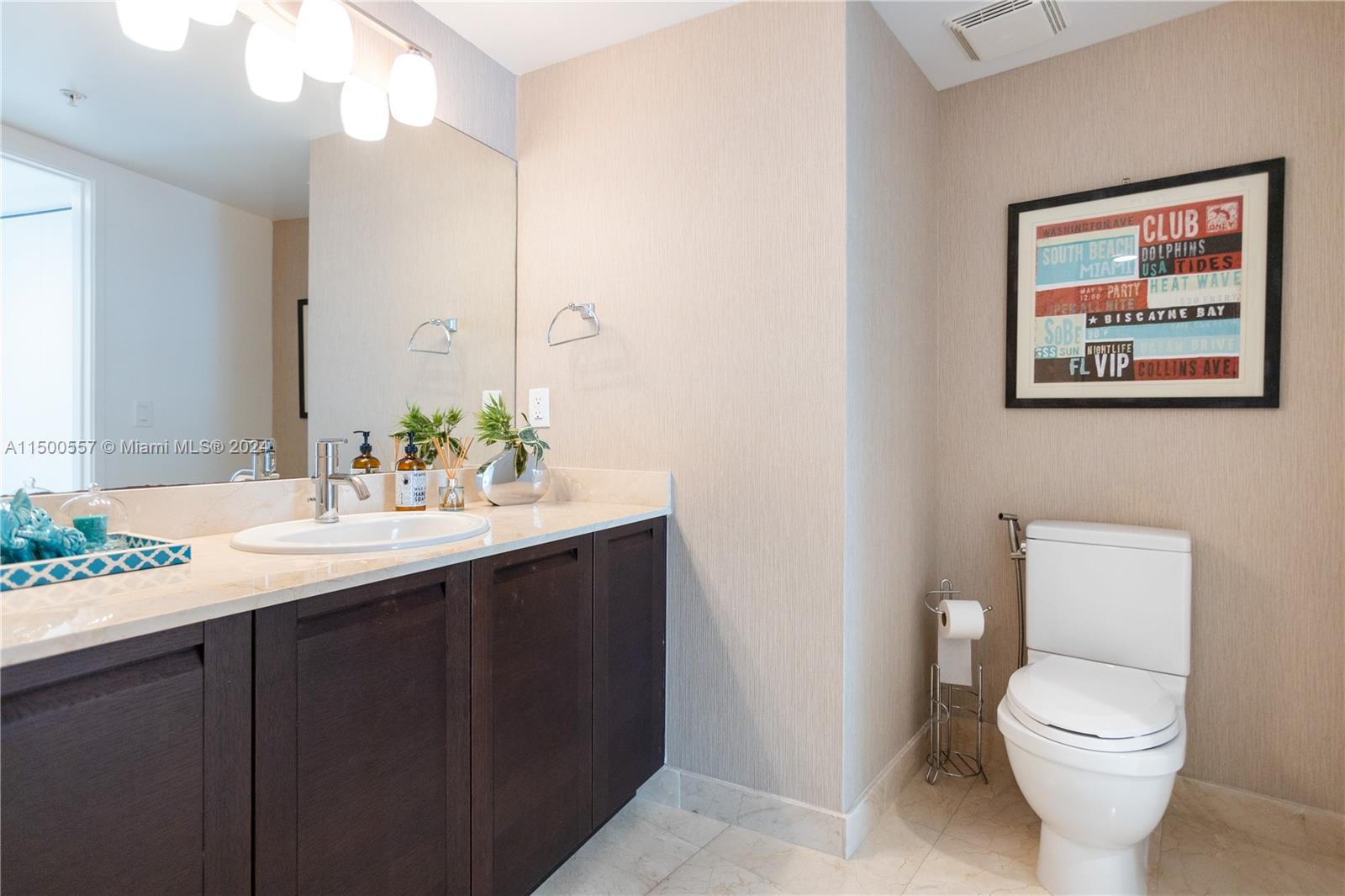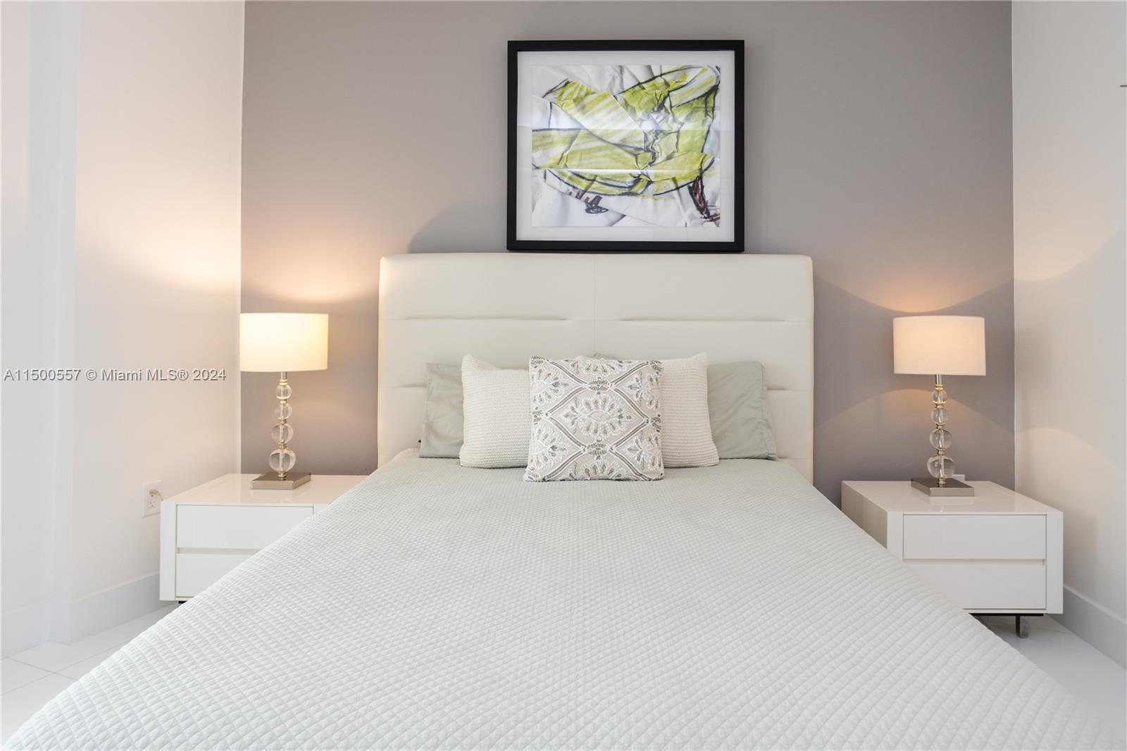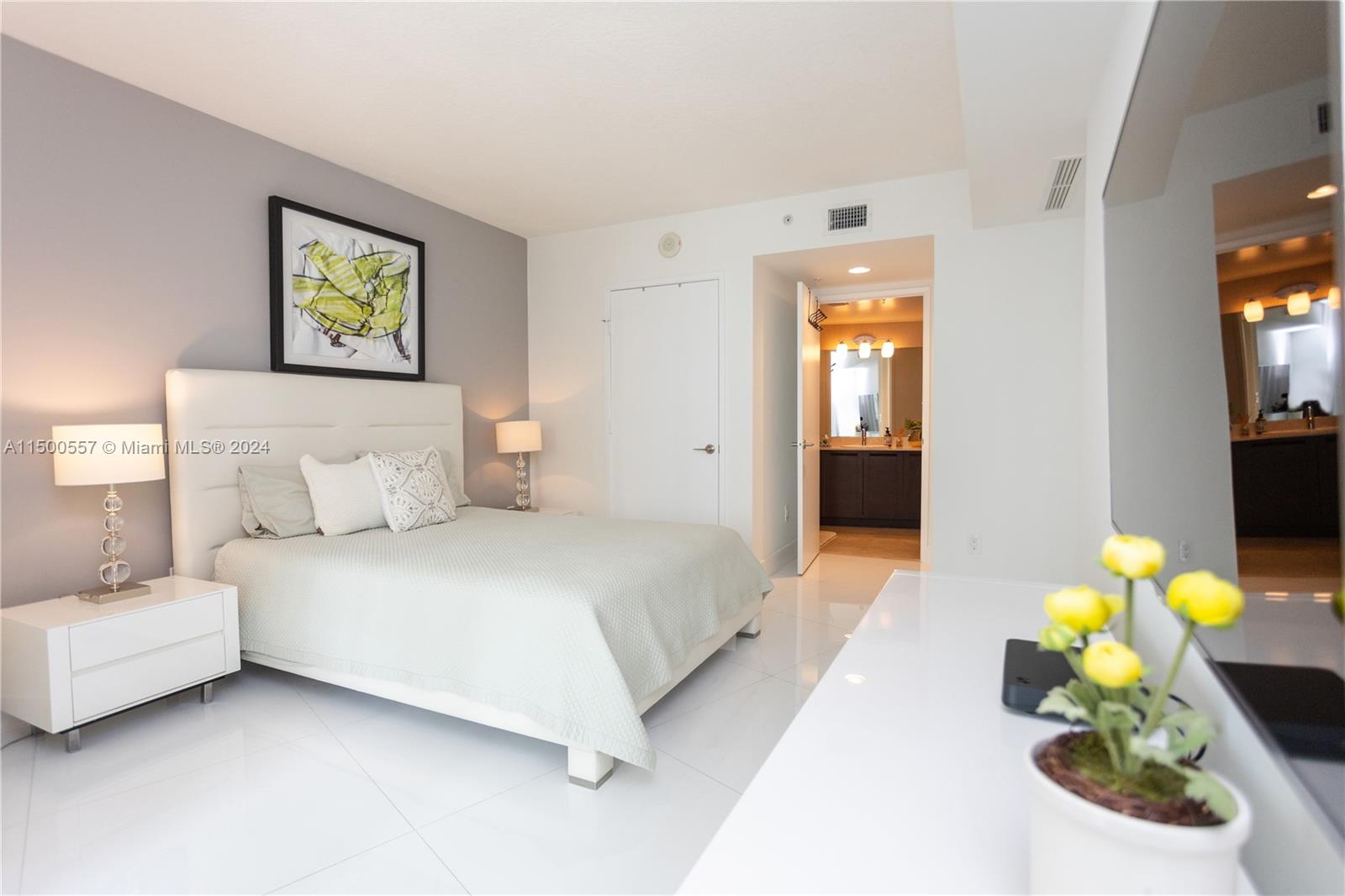 WATERVIEW 3BD/3.5BA CONDO. UNIQUE LAYOUT and SPACIOUS CONDO! One of the largest units in the Building (1785 sq ft). Elegantly furnished, white tile flooring and white kitchen. 2 MASTER BEDROOMS! Parking: Assigned spot on the same floor (don't need to use elevator), +1 free valet. Quiet Ambiance: Sole unit in wing, no street noise. Balcony: Exceptionally private balcony with a stunning bay view. Rain-friendly ceiling ledge. Amenities: Heated pool, gym, sauna, jacuzzi, conference room. Location: 3-min walk to the beach, Beach Club service available. Special Advantages: - Spacious main master bedroom. - Hurricane-proof windows. - Spacious closets in every room. - Large, modern white kitchen. - Freshly painted interior. - Brand new washer and dryer.