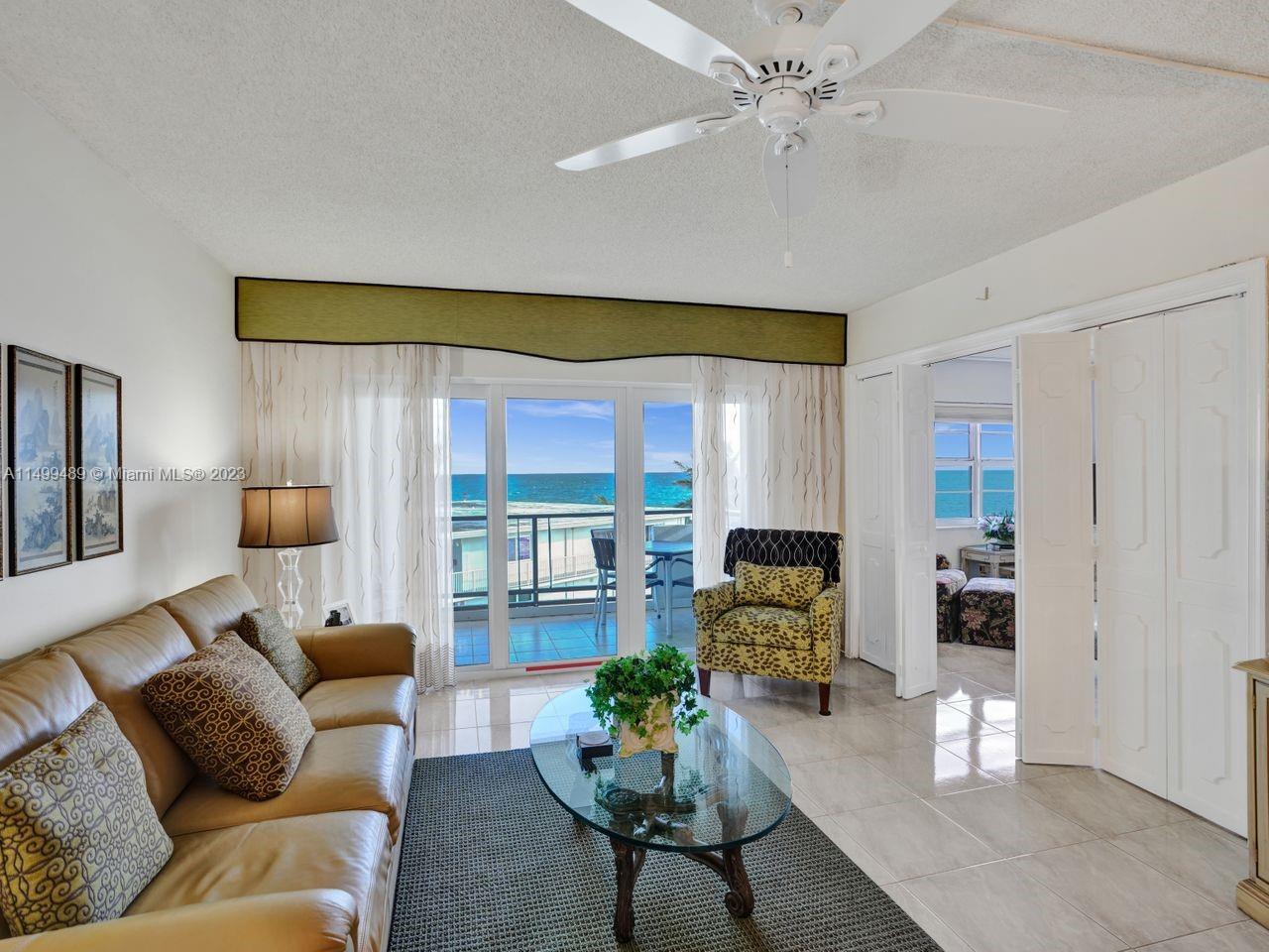 Wake up to the sounds and views of the Atlantic Ocean from your bed! Nicely Furnished (turnkey) with upgrades and Direct Ocean views from both bedrooms, living room and balcony! 2nd Room is convertible with doors that open to be used as a DEN that has Brand NEW Murphy bed. Tiled floors thru-out, Total SF 1174. Impact Windows & Door. ALL AGES! Located between Emerging Pompano Beach Pier & Lauderdale By-the-sea: Both are close to places of worship and a 10 min. stroll to Sea ranch lakes Publix shopping center Fischer Family Pier, dining, live entertainment, great beaches & more. Key FOB for building access. Rentals allowed after 1st year w/ a 3 mo. min. & twice per year max. Assigned 1 COVERED parking space and guest parking. Association has quick approvals. Show with Appt.