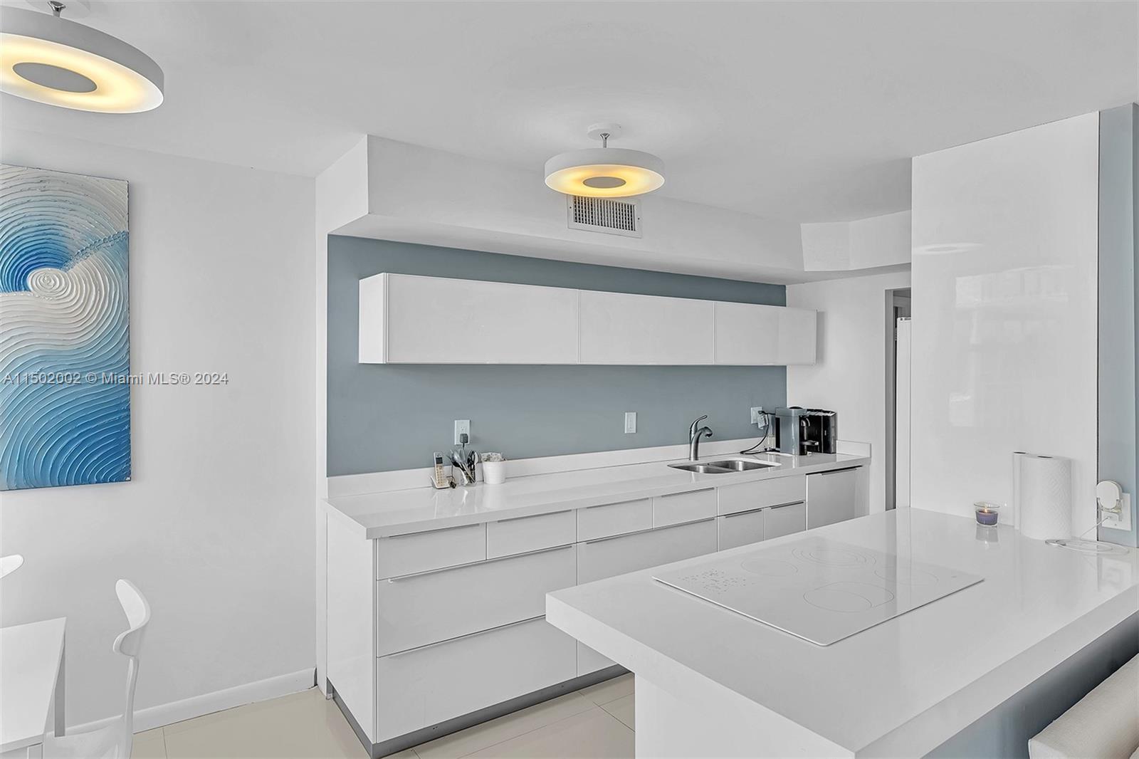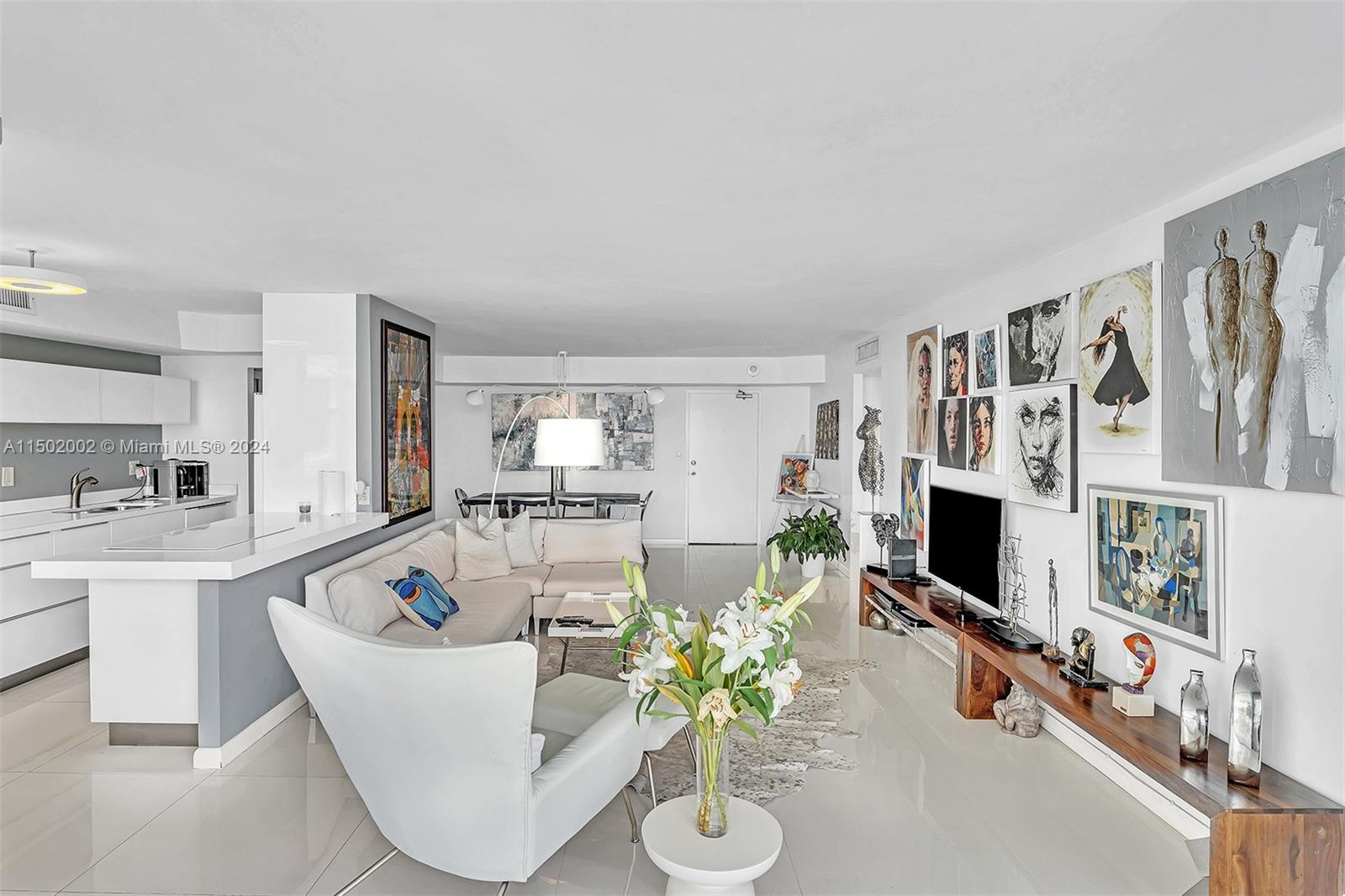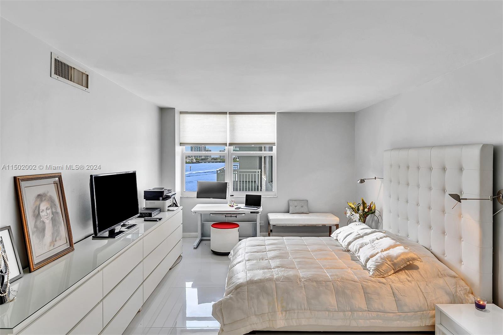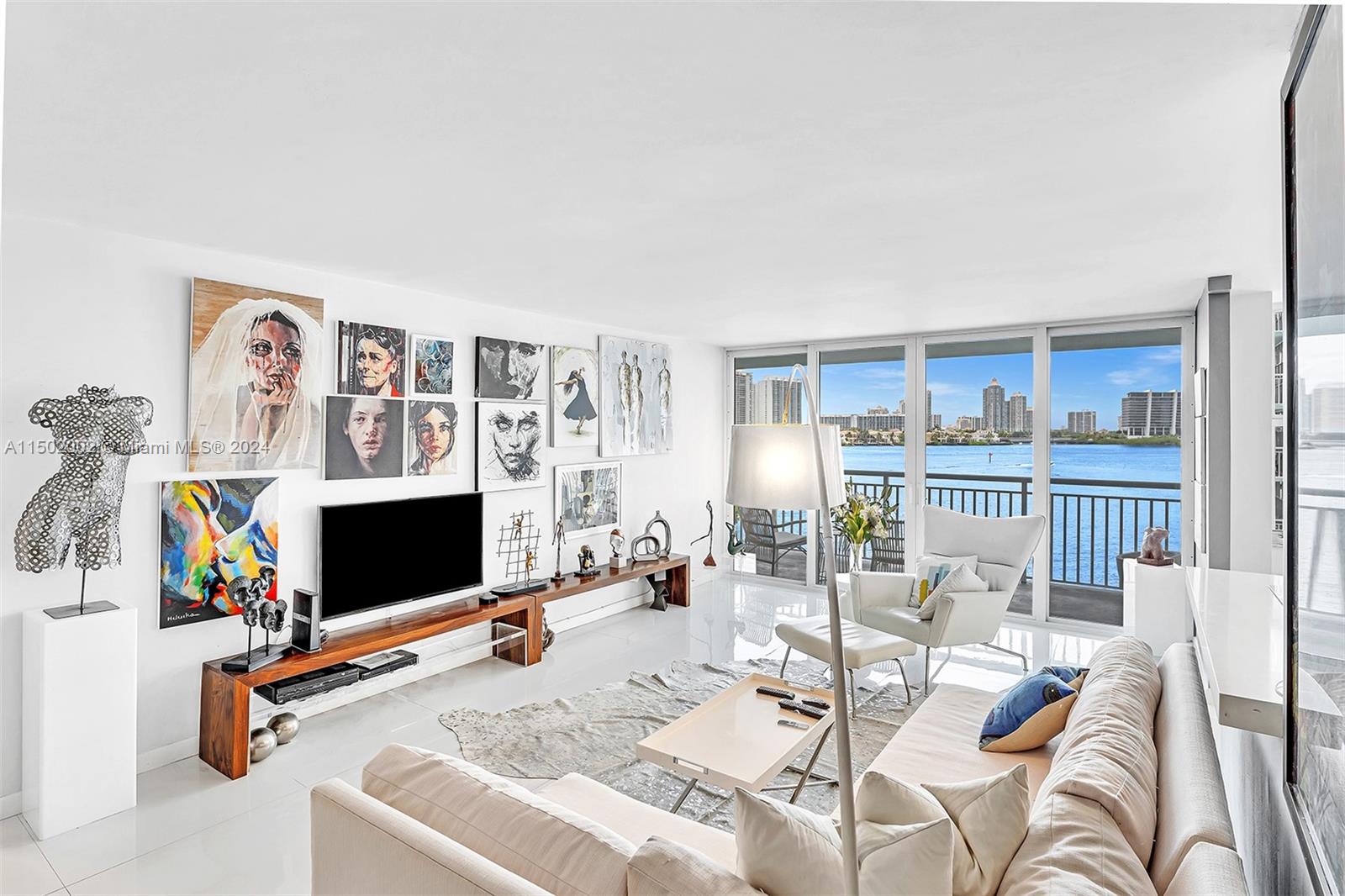 One of a kind home in its beauty & quality with stunning water views & sunsets. Make this 1500 SF spacious,white, bright, modern home w. 2 bed/2 bath/2 walk-in closets yours,to enjoy the luxurious, happy lifestyle of Sunny Isles Beach (Florida's Riviera). Walk to sandy beaches, places of worship, parks, drug stores, restaurants, banks, boutiques, top schools! No popcorn ceilings, 32x32 white glass tiles, quartz surfaces. New hurr impact windows/sliding doors lead to large balcony. No cars/traffic, just peaceful parade of yachts, dolphins. Huge master bedroom w. spa like bathroom.Private guest area. Amenities incl. everything your heart desires, for very low HoA fees. VERY SAFE, well maintained, no-rent building with 24/7 security guard+door man. HURRY, DON'T MISS this jewel on the crown!