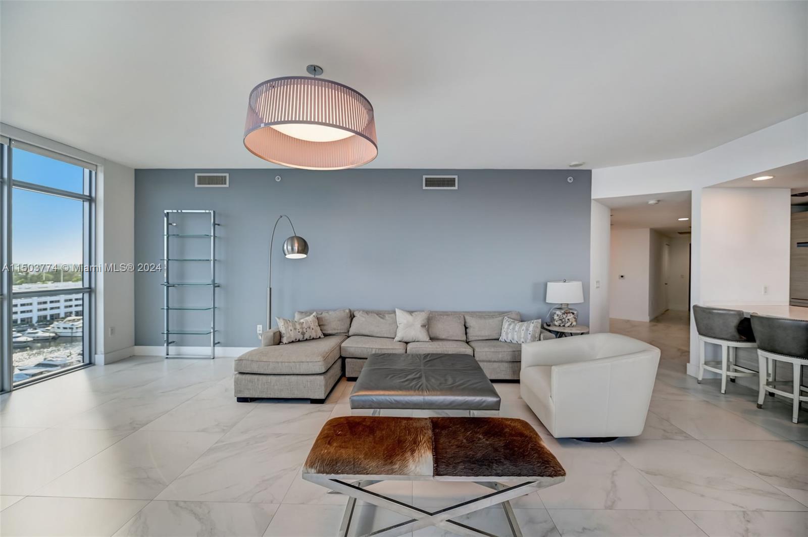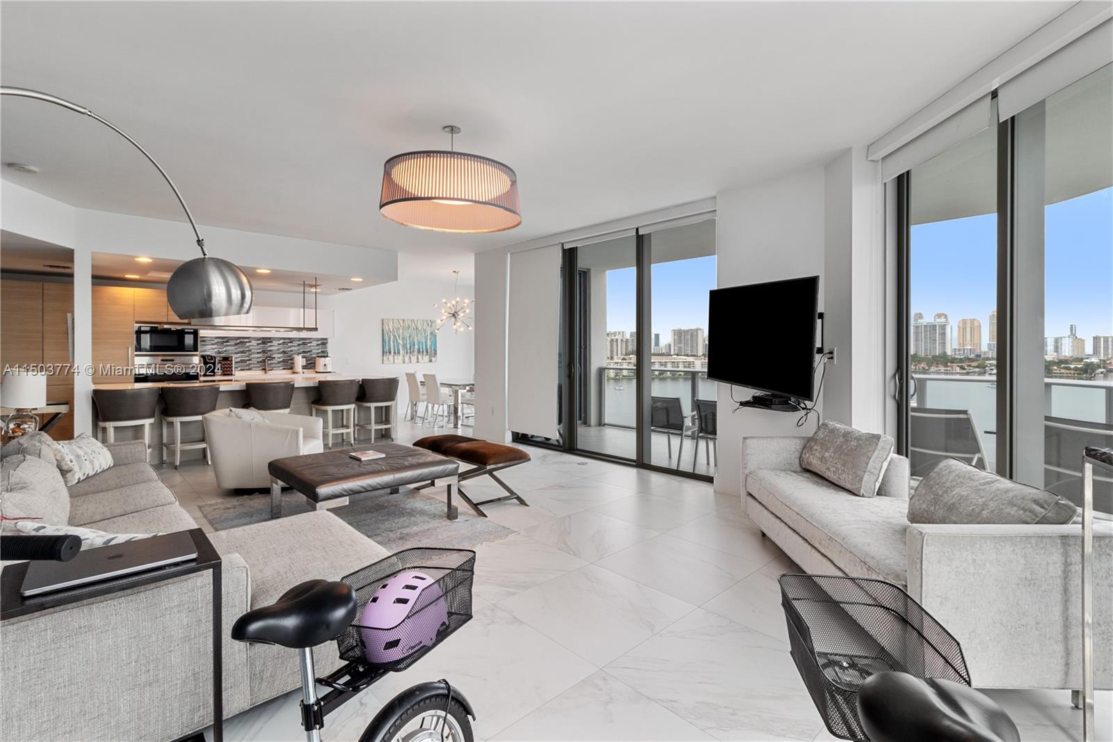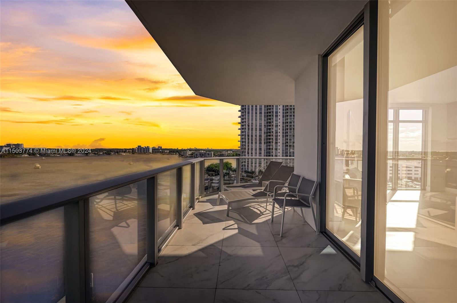 Boaters exclusive paradise condo & Boat slip with full amenities available! Marina Palms best residence unit available (line 9) with panoramic view of Intracoastal Waterway and Ocean. 3 bdr + 3.5 bth vibrant concept with natural ambiance lighting throughout featuring Executive Service building offering spa,gym,teen room,toddler room,Party room,new’s cafe and pool.It features high-end appliances, Italian Porcelan tiles Through-out with built out closets. 60’ Yacht slip available upon request plus a 72’ Azimut 2012 powered by Twin MAN 1800Hp.