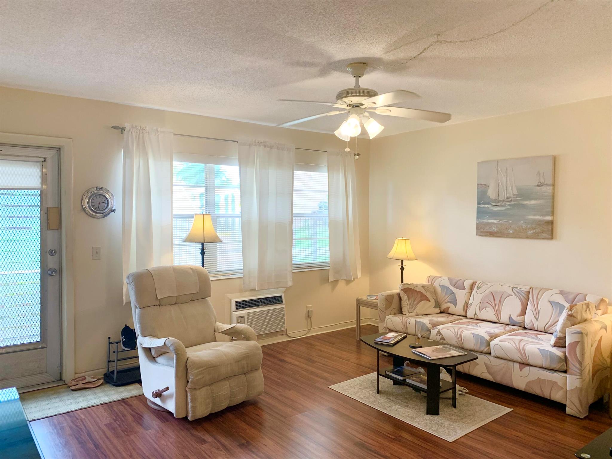 SOUGHT AFTER QUIET LOCATION, FINANCIAL SOUND BLDG W/ NEWER HURRICANE ROOF. TURNKEY UNIT WITH LOVELY LAMINATED FLOORS THROUGHOUT, PASS THROUGH IN KITCHEN, GLASS SLIDING DOORS OFF MASTER BEDROOM ONTO AN ENCLOSED PATIO WITH SERENE VIEWS. (HOA ALLOWS UNIT TO EXTEND PATIO PAVERS) COMMUNITY HAS A PLETHORA OF AMENITIES, COURTESY BUSES, FITNESS CNTR, TENNIS, THEATER, SHOWS, DANCES & MORE. CENTRALLY LOCATED TO AIRPOT, BEACHES, DOWNTOWN. FOREIGN SELLER'S -FIRPTA- NO INVESTORS, 2YR RENTAL WAIT