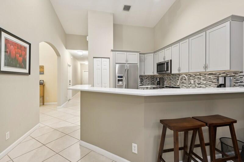 TASTEFULLY UPDATED - Furnished or Unfurnished is this gorgeous 2 bedrooms, den, 1 car garage, double driveway is the home you've been looking for. Tiled thruout, vaulted ceiling, beautiful selection of paint colors; totally remodeled kitchen w/high end appliances, soft close drawers, granite countertops, plus more! Master-bathroom renovated with new shower stall, frameless door, double sink. Guest bathroom updated. All appliances are newer. Hurricane impact glass on all openings. Screened covered patio, screen at front door entry. Garage equipped with electric car charging outlet, overhead hanging storage, attic storage, pull down stairs. Pets welcome! All sizes and fees are approx. Baywinds offers lots of activities and amenities. Baywinds close to everything