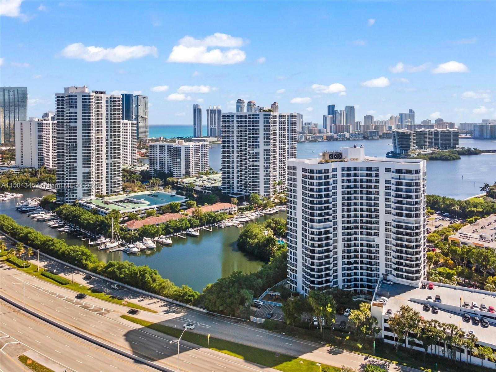 Spacious 2-Bedroom 2-Bathroom at Mystic Pointe Tower 600 condo with Turnberry golf course and skyline front-facing panoramic views. The interior features wood floors, high ceilings, and granite stone countertops. A large open living/ dining area and gourmet kitchen that has every appliance and under-counter lighting. The primary bedroom features an en-suite bathroom with a tub and walk-in shower with wall wall-mounted new fixture. Telescoping sliding doors that open to an outdoor, spacious balcony for seating. The entire property is gated and walled with a full-time doorman at the building. Pool, jacuzzi, BBQ, gym, game room, community room and playground. 7 lighted tennis courts, 4 lighted pickleball courts, dry cleaning, mini market, salon, restaurant, and marina. Close to the beach.