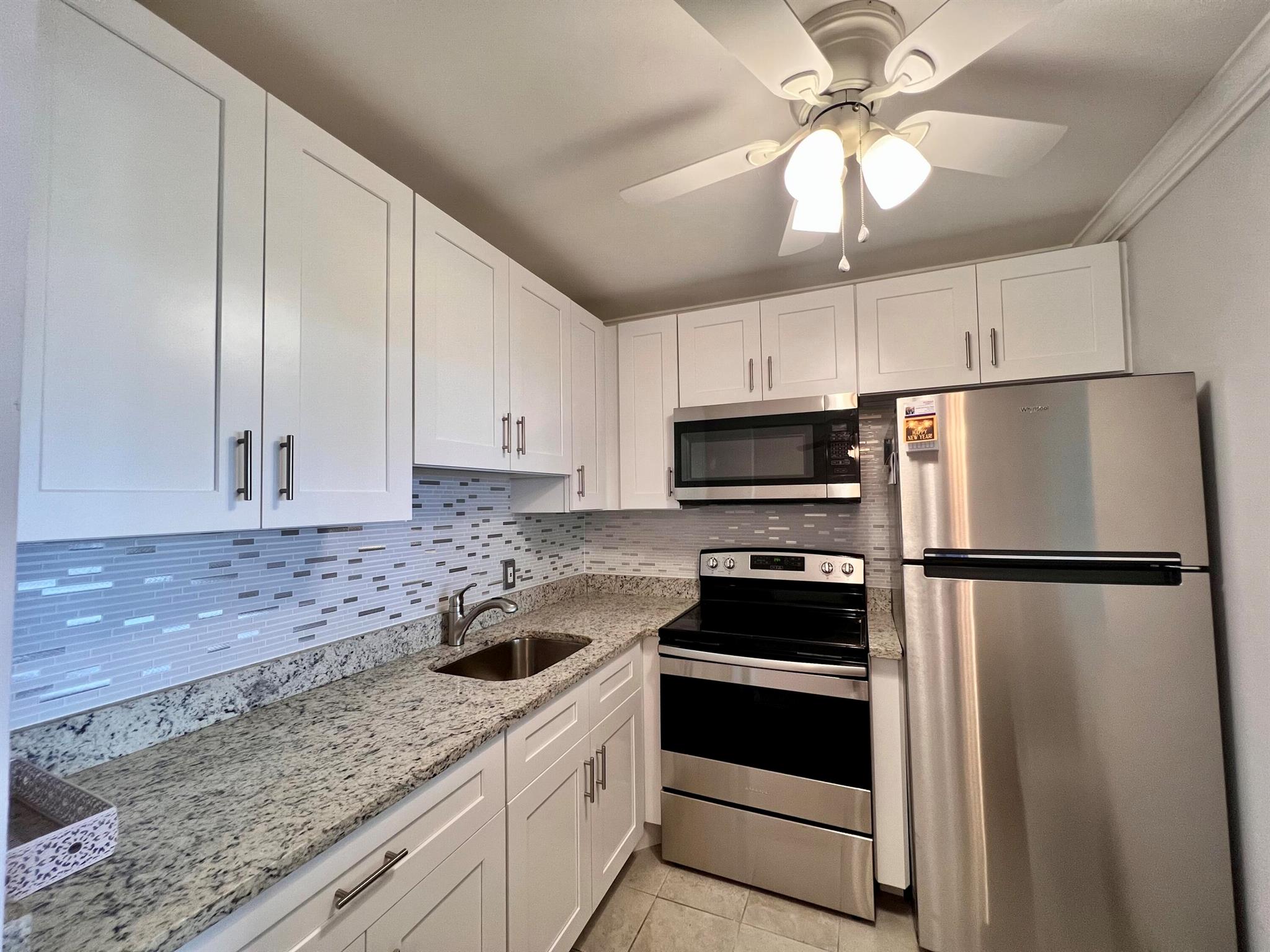 DELIGHTFUL, UPDATED, AND PET FRIENDLY IN 55+ CENTURY VILLAGE! Move-in Ready 1/1 In A Pet Friendly (Including Small Dogs) Building! Pretty Updated Kitchen With White Shaker Cabinets, Granite Counters, Tile Backsplash, and Stainless Appliances. Updated Bath With Step-in Shower. Soothing Color Scheme. Crown Moulding Throughout. Tile Flooring. Sold AS IS & Partially Furnished As Shown. Nice Building with Pretty Resident Patio. Central Location Close to The Main Clubhouse & Hastings Fitness Center. Century Village Is A Resort Style 55+ community with so much to offer...