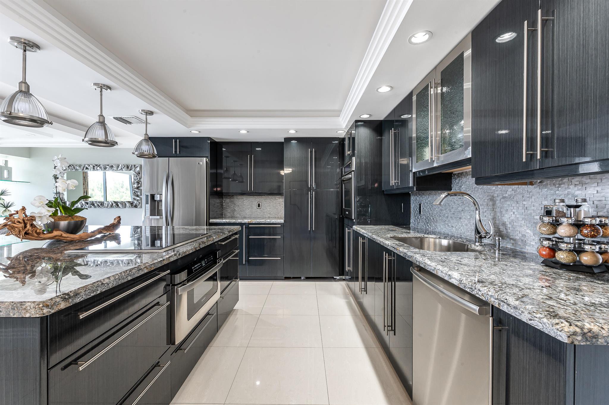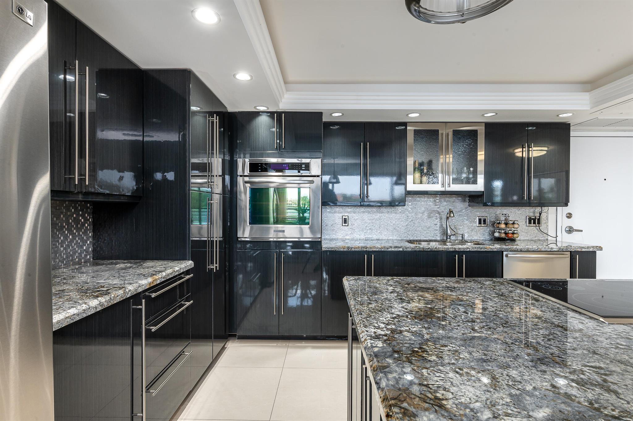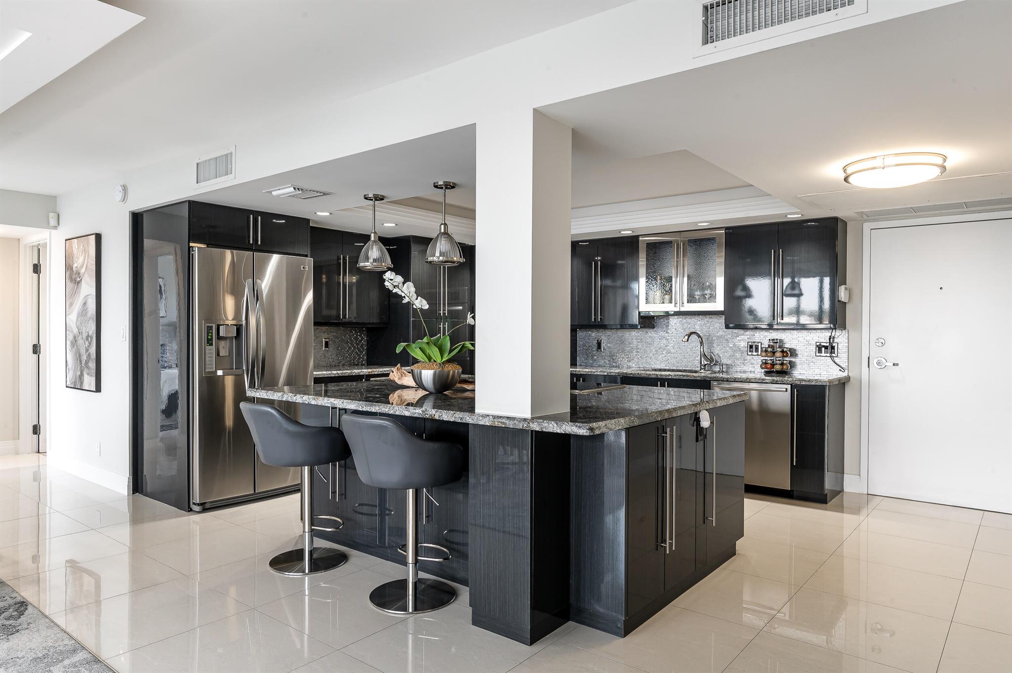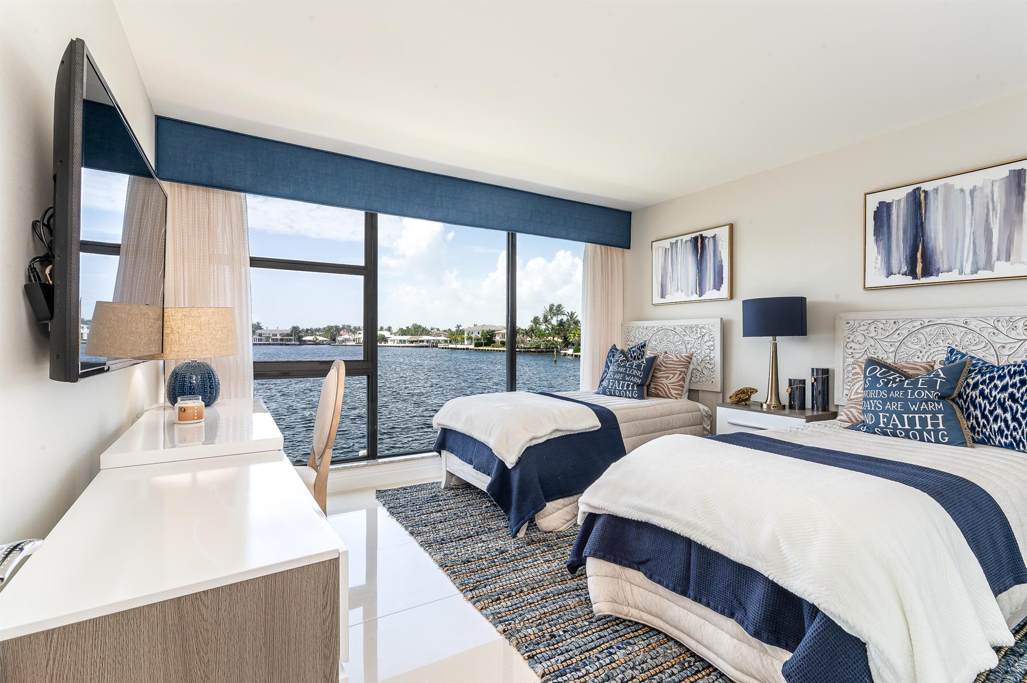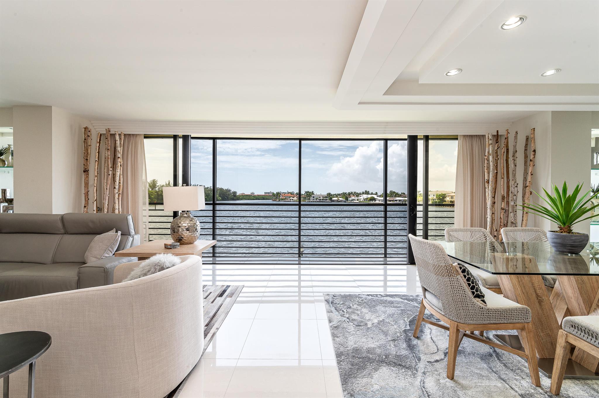 Forever water views! Sensational, renovated Intracoastal crown jewel located directly in the middle of picturesque Lake Rogers. A special offering for the most discerning buyer. Panoramic direct Intracoastal and lake views from every principal room. Floor to ceiling impact windows and folding sliders bathe the residence in an abundance of natural light. Sure to impress, the gourmet kitchen sparkles and delights with stainless steel appliances, separate island, and granite breakfast bar. Both bedroom suites are generously sized with marble baths and glass encased showers and offer the luxury of refined waterfront living. Throughout this designer decorated home you will find porcelain tile flooring, ceiling details, upgraded LED lighting, and solid core doors set against