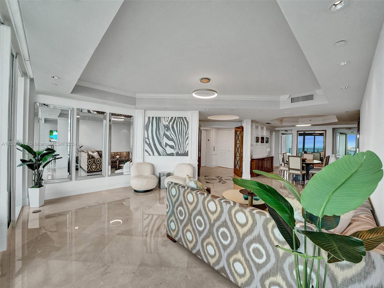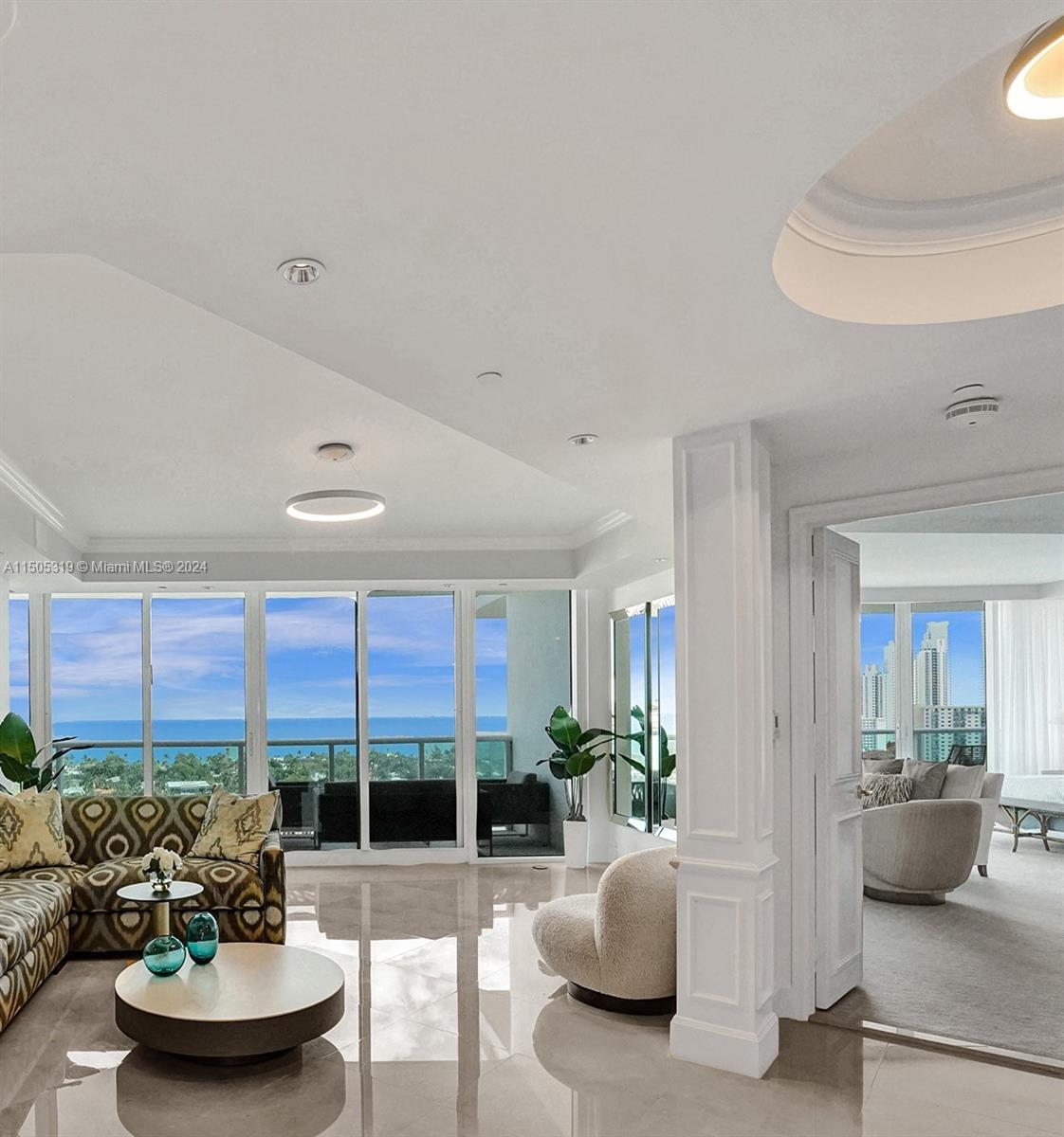 Welcome to this casually elegant 3-bedroom, 5-bathroom home In Porto Vita. This spacious 3300-square-foot residence has been refreshed, buffed, painted, and lightened up, offering a truly luxurious living experience. Floor-to-ceiling windows provide breathtaking views of the Atlantic Ocean, Golden Beach, and the Intracoastal, on the west side, stunning Miami sunset and golf course views. Porto Vita boasts an impressive list of amenities: common garden, doorman, concierge, private elevator, gym, pool, hot tub, sauna, basketball, Tennis and pickle ball courts, yoga pilates and Zumba, resident's lounge, on-site restaurant, spa, valet parking, security gate, facialists, masseuses and more. There is also a Housekeeper's room and extra storage for the unit.
