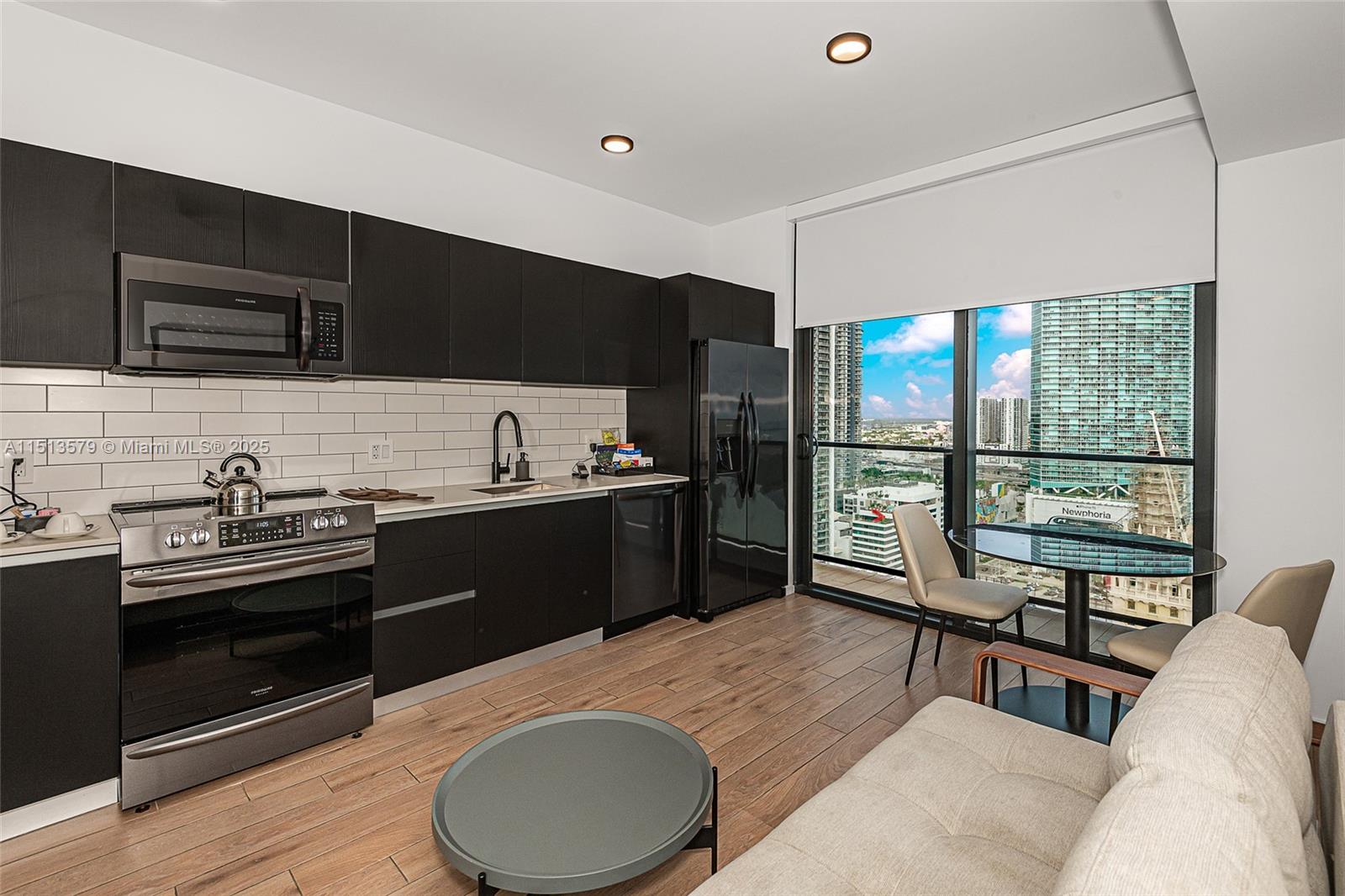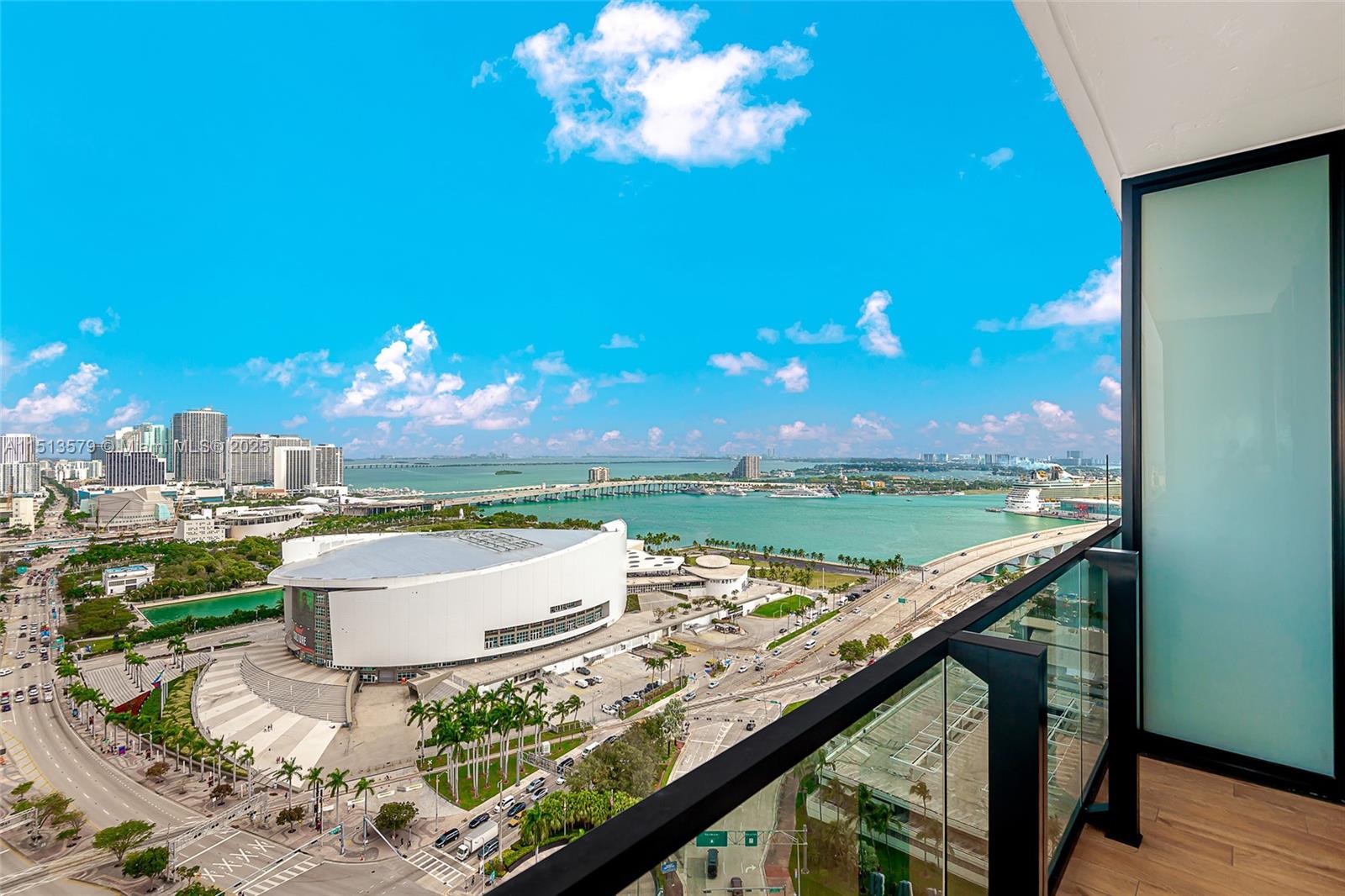 Daily Rentals Accepted! if you are looking for an an income producing property or looking to live at a residence with the best views of Miami, this spectacular condo offers both an income-generating opportunity and a luxurious living experience. Completely furnished with sophisticated designs, created for exceptional vibrant living. Full Kitchen, King size bed, pull out couch for extra room, washer and dryer inside the unit, huge flat screen TV, and all essentials included. It has amazing views of Biscayne Bay and Downtown Miami. Conveniently located within walking distance to key attractions like Kaseya Center, Bayside Market Place, the new Miami World Center, and the Brightline Train station. Don't miss the chance to own this brand new luxury condo with million-dollar views!