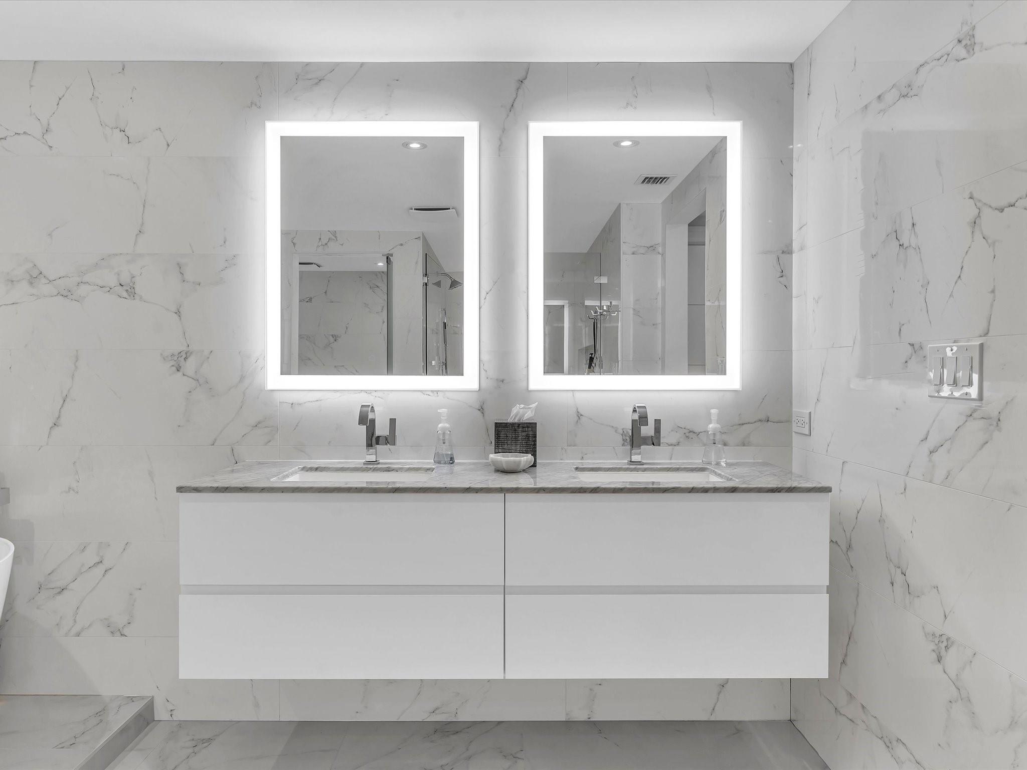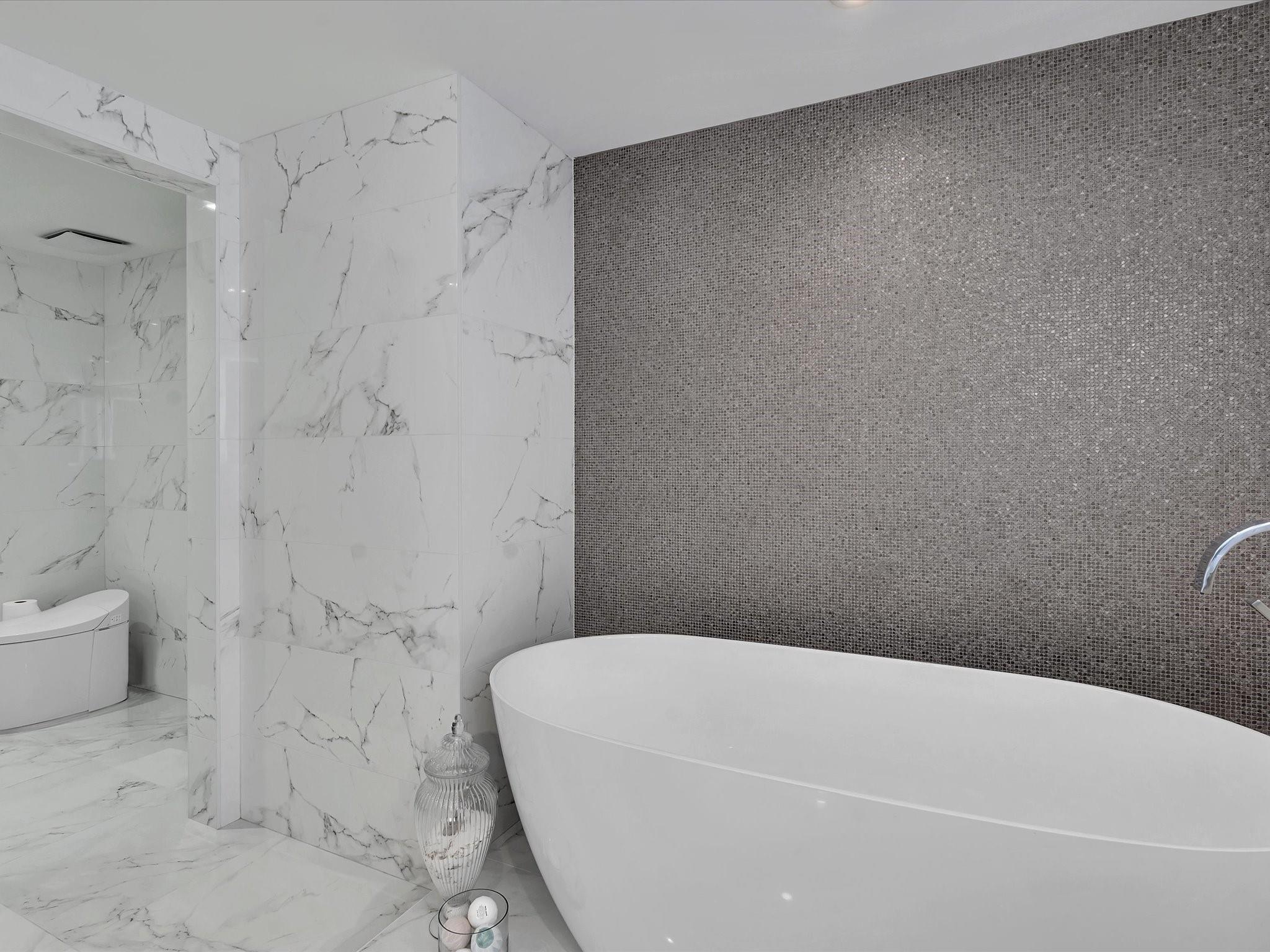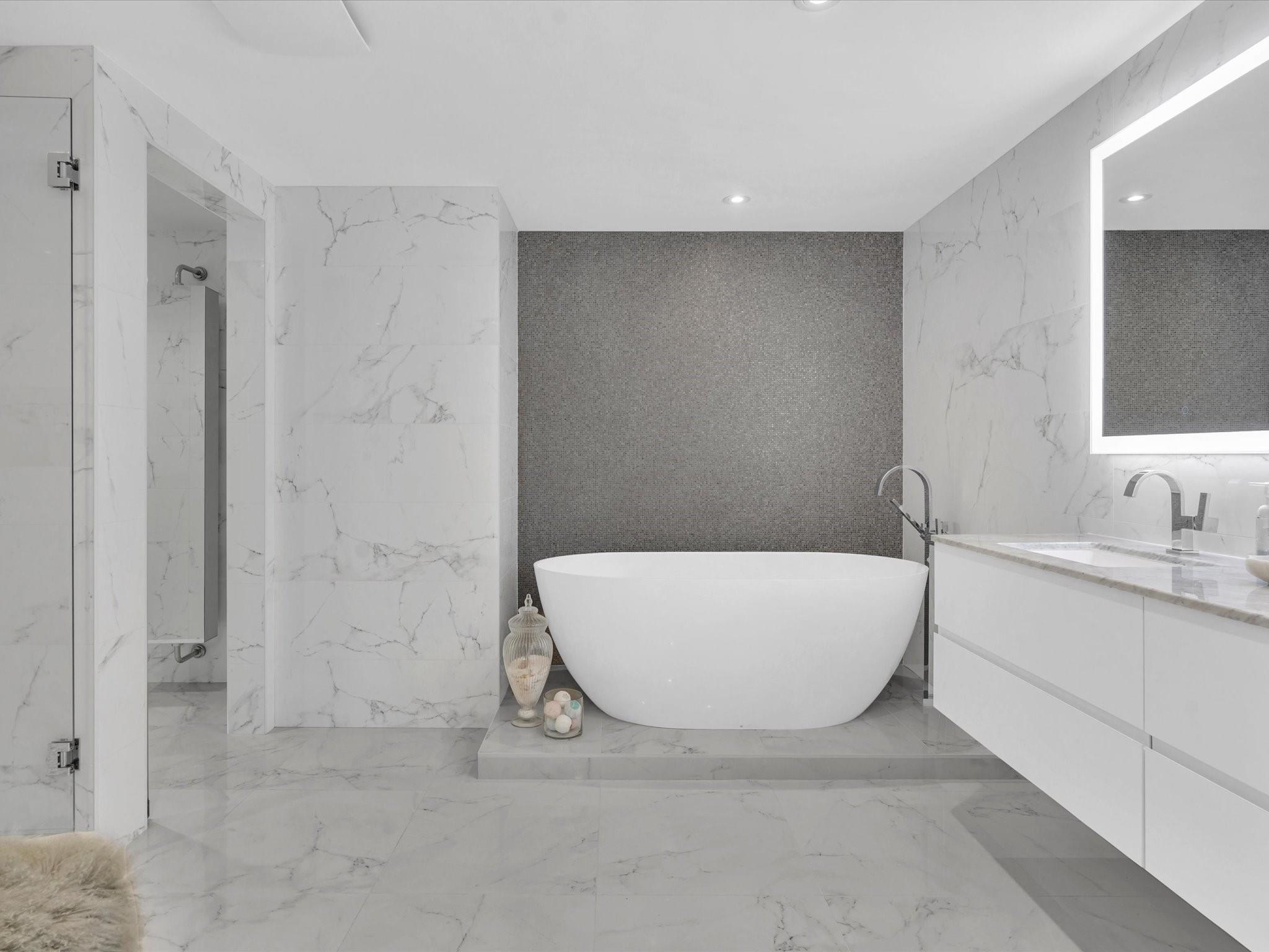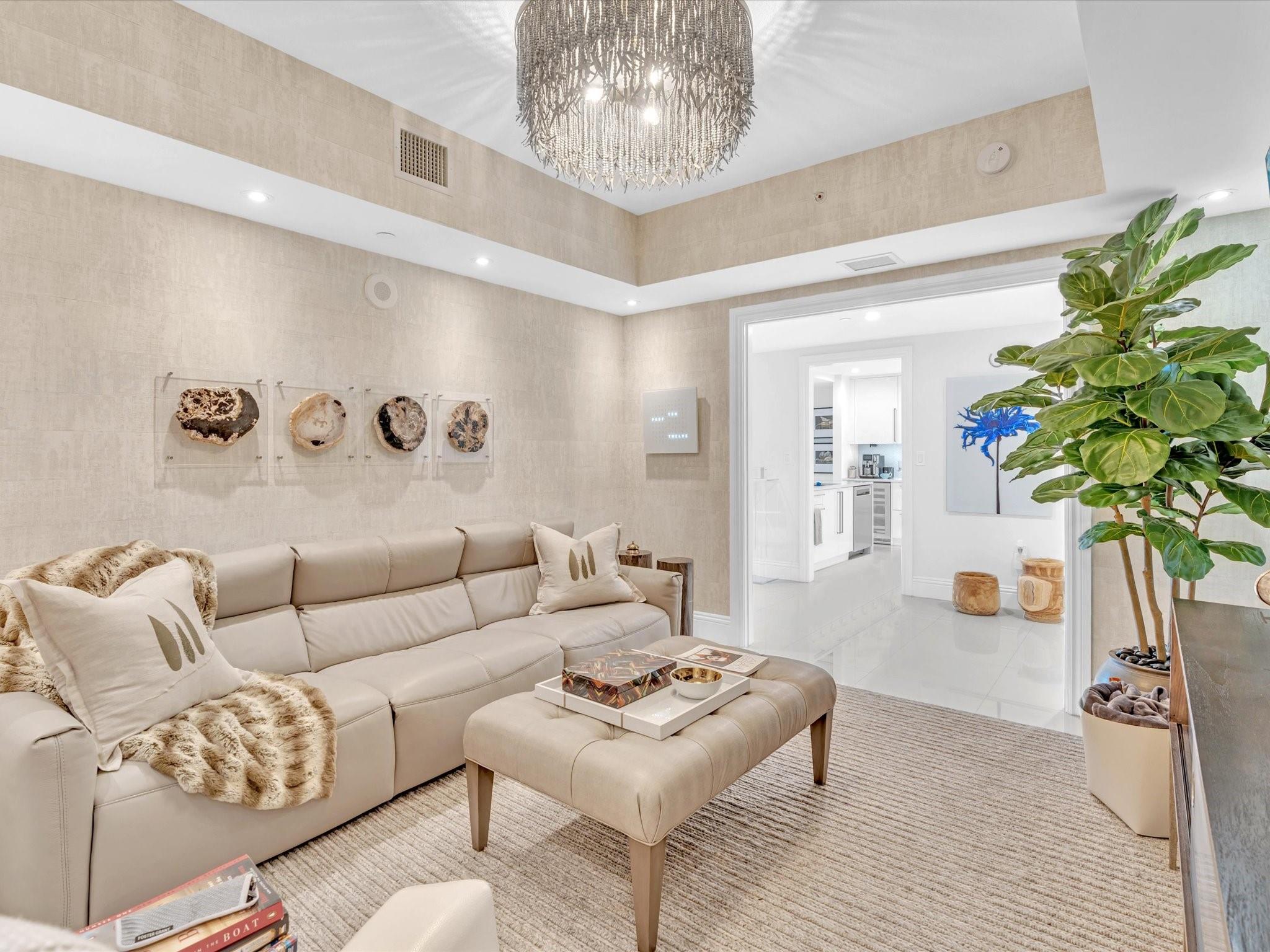 Walk through the double doors into the epitome of elegance-Unit has been recently remodeled in the best of taste- Kitchen features White high gloss cabinetry, stunning white countertops, Sub Zero refrigerator, and top of the line Stainless Steel Appliances and wine cooler-Luxurious White porcelain tile throughout -Split bedrooms Plus a Den With a tray ceiling and designer wall coverings-Breathtaking Electric Fireplace encased in porcelain accents the living room along with a Gorgeous stretch ceiling-Royal Primary Bathroom finishes with a King Size Shower and free standing bathtub-Designer light fixtures and wall coverings showcase this unit- Huge East facing balcony is like an extra room-Enjoy Coffee on the terrace and watch the sunrise ! NEW A/C !! Common areas being renovated