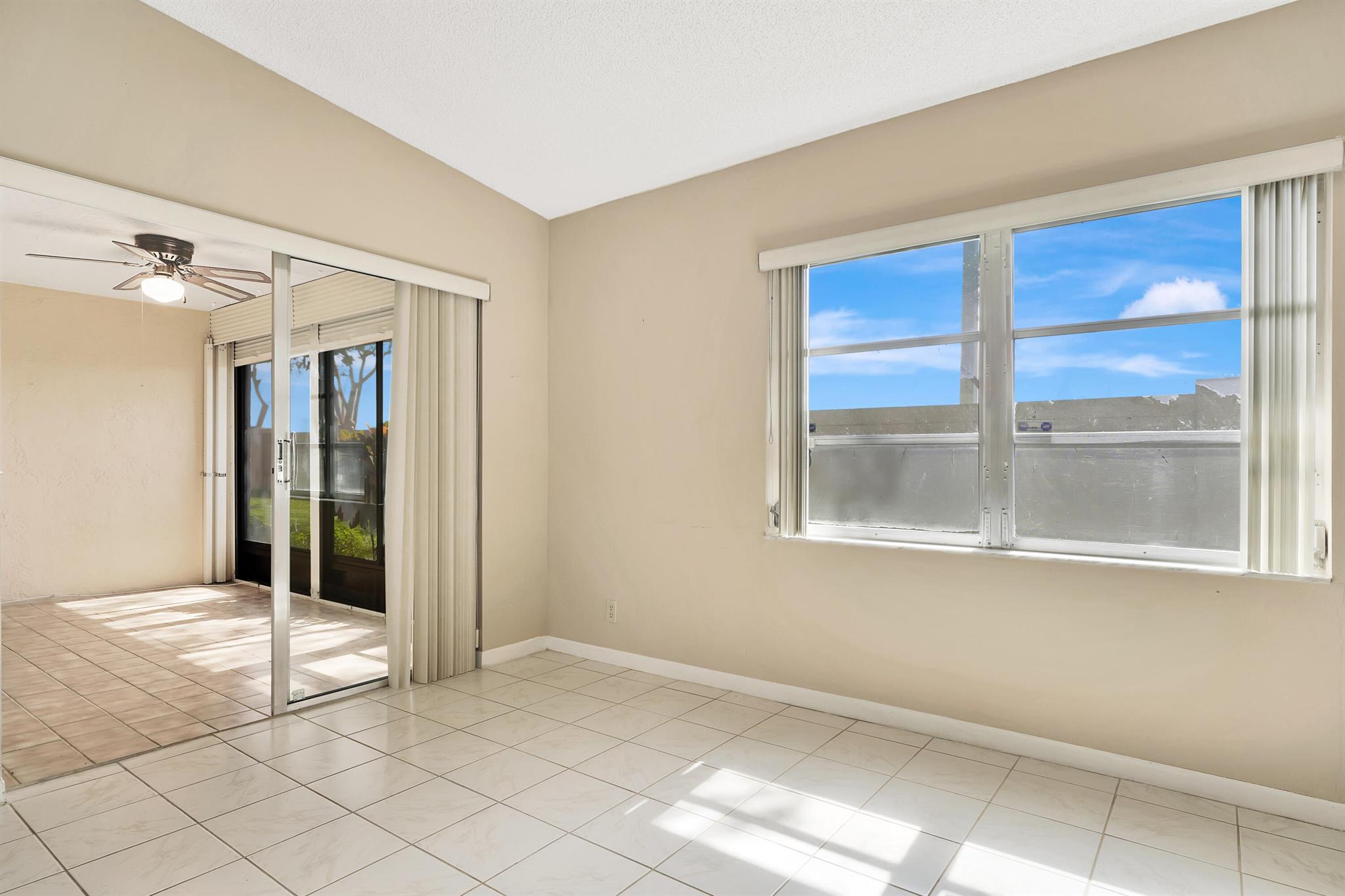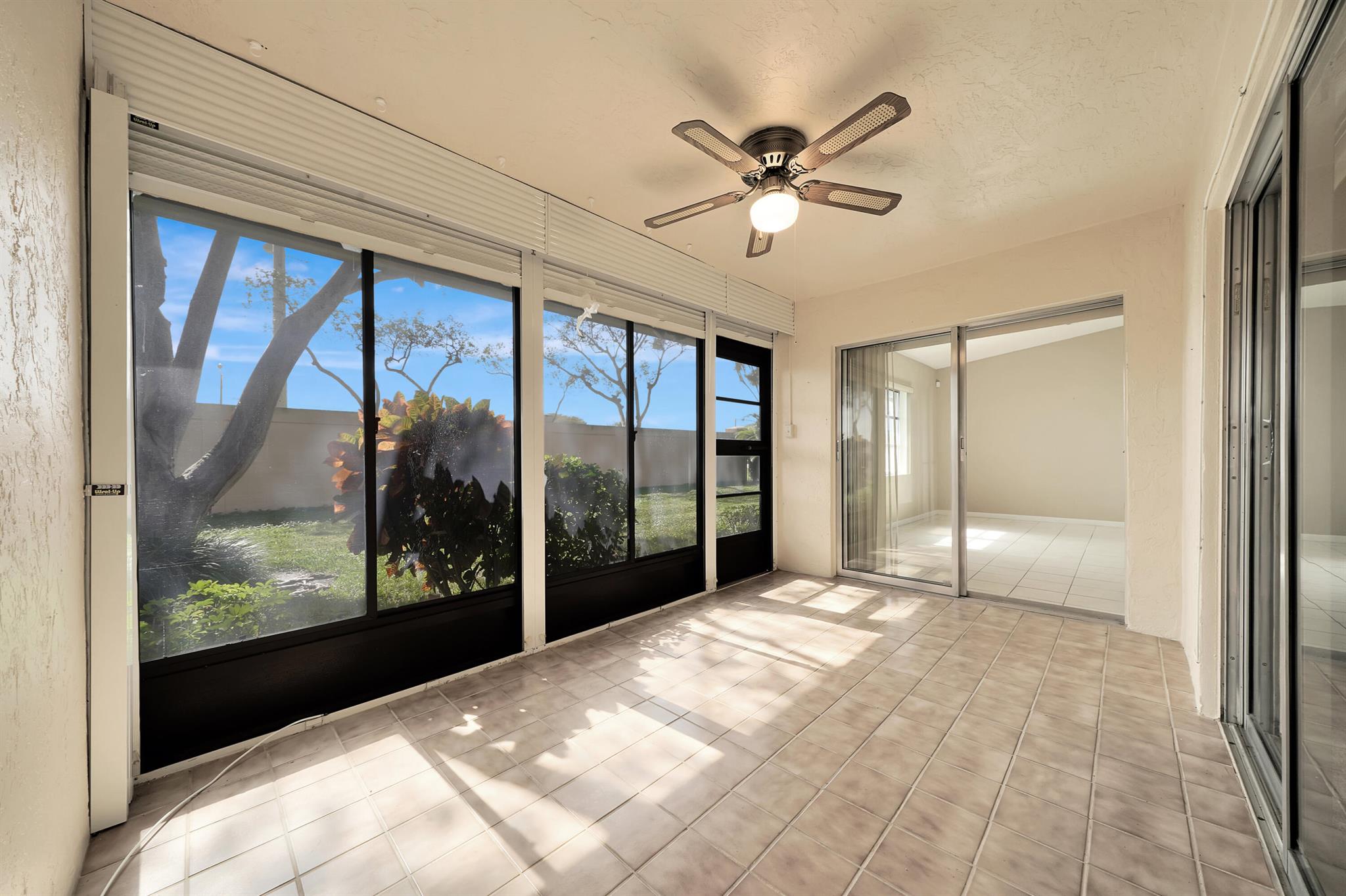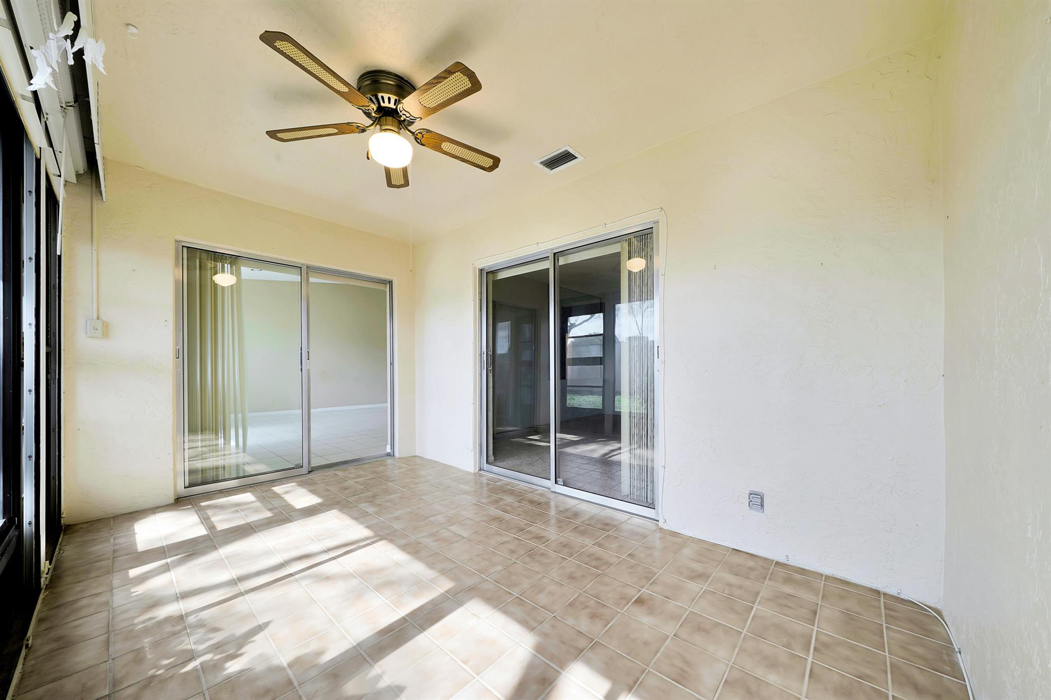 PRICE IMPROVEMENT, SELLER MOTIVATED! This 2 bed/2 bath villa is nestled in the heart of Whisper Walk, Boca Raton's exclusive 55+ gated community. The home boasts 2 spacious bedrooms, a well-lit guest bathroom and handicap accessible master bathroom, plus 2 walk in closets in the master bedroom. Bright lights accompany the living area and kitchen. Please note some photos have been virtually staged. Property includes a Florida room with roll-up hurricane shutters and lots of privacy in the backyard, plus a 1-car garage with wireless keypad entry. This gated community offers a Clubhouse, 5 Pools, Tennis Courts, Pickle Ball Courts,, Fitness Center, Sauna, Library and 11 Lakes. Convenient to I-95, Florida's Turnpike, golf, shopping, restaurants, and the best of Boca!