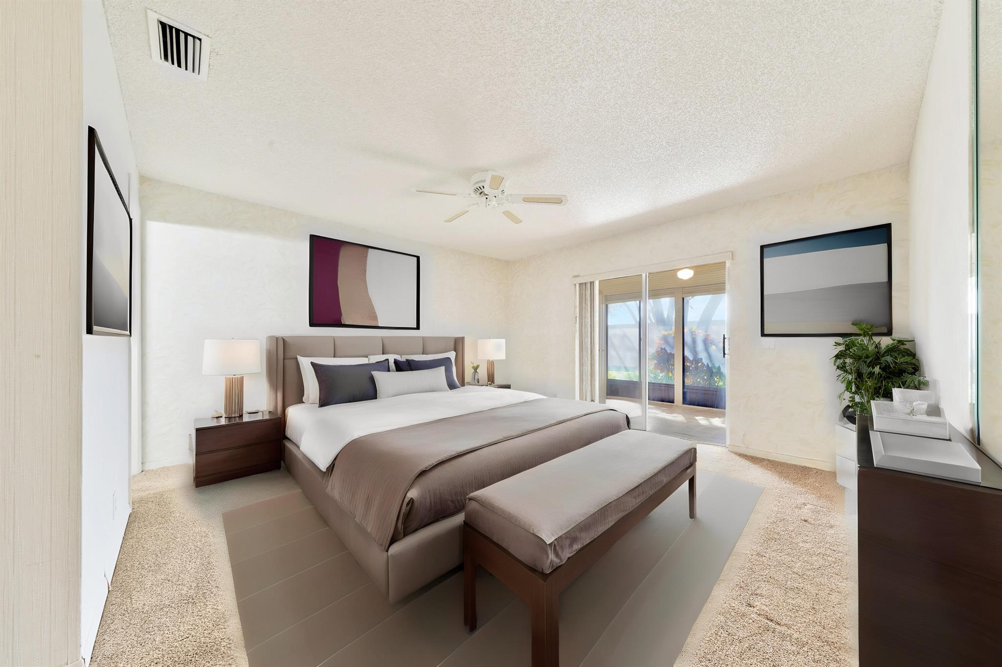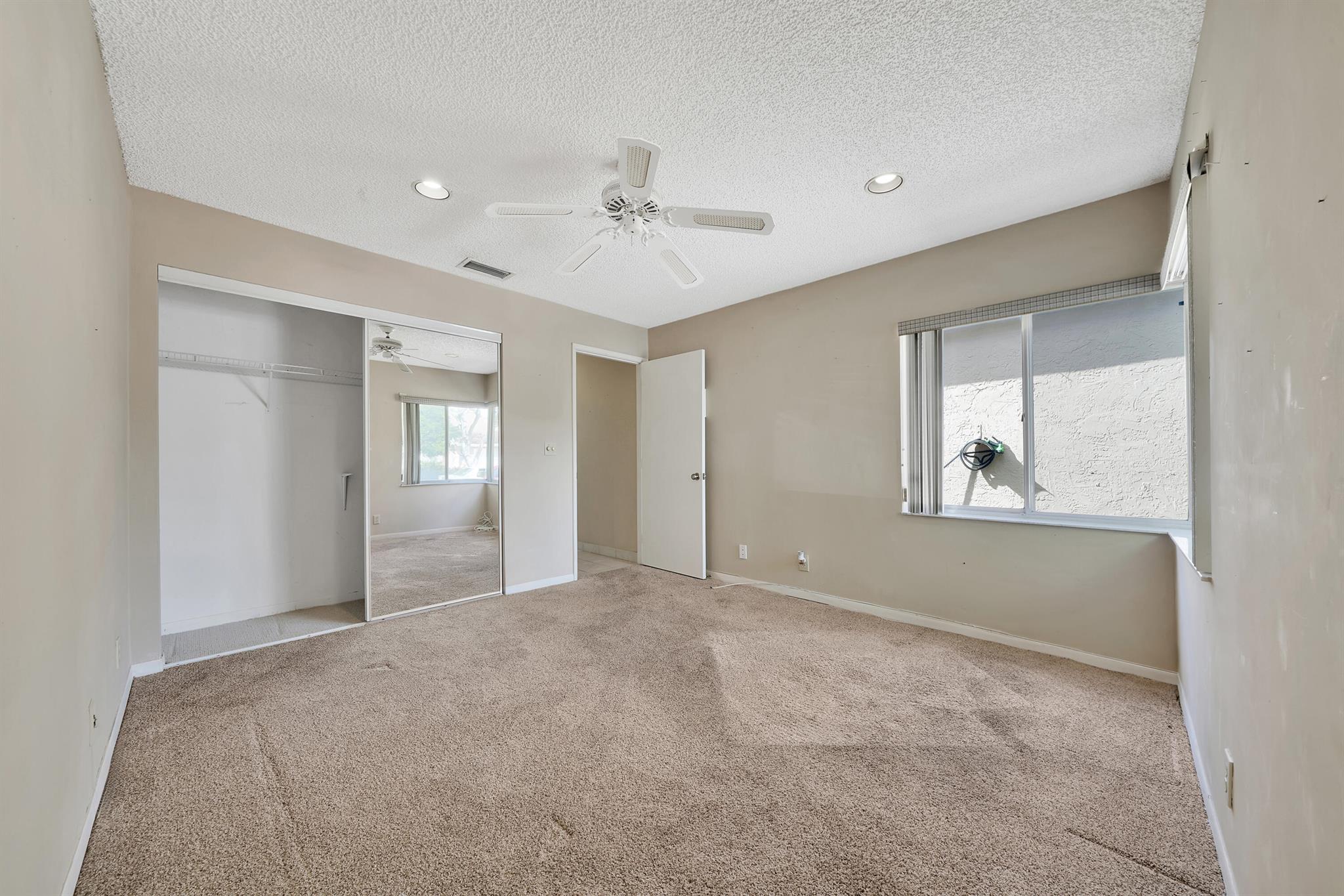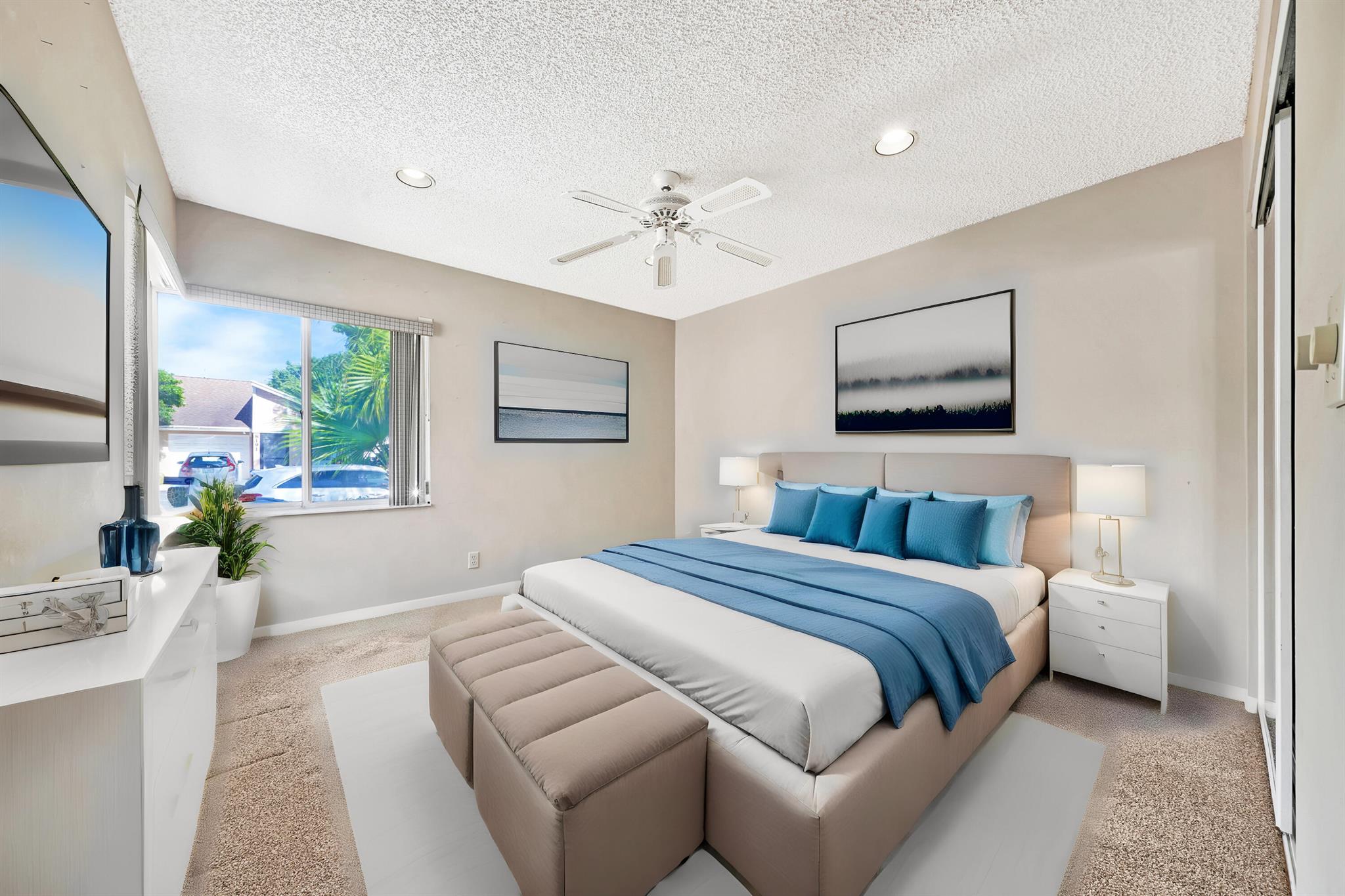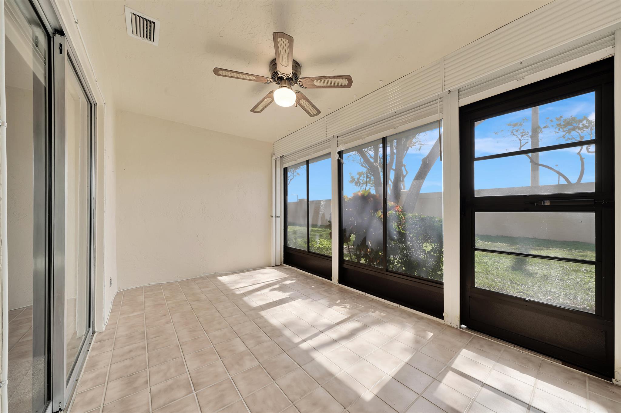 PRICE IMPROVEMENT, SELLER MOTIVATED! This 2 bed/2 bath villa is nestled in the heart of Whisper Walk, Boca Raton's exclusive 55+ gated community. The home boasts 2 spacious bedrooms, a well-lit guest bathroom and handicap accessible master bathroom, plus 2 walk in closets in the master bedroom. Bright lights accompany the living area and kitchen. Please note some photos have been virtually staged. Property includes a Florida room with roll-up hurricane shutters and lots of privacy in the backyard, plus a 1-car garage with wireless keypad entry. This gated community offers a Clubhouse, 5 Pools, Tennis Courts, Pickle Ball Courts,, Fitness Center, Sauna, Library and 11 Lakes. Convenient to I-95, Florida's Turnpike, golf, shopping, restaurants, and the best of Boca!