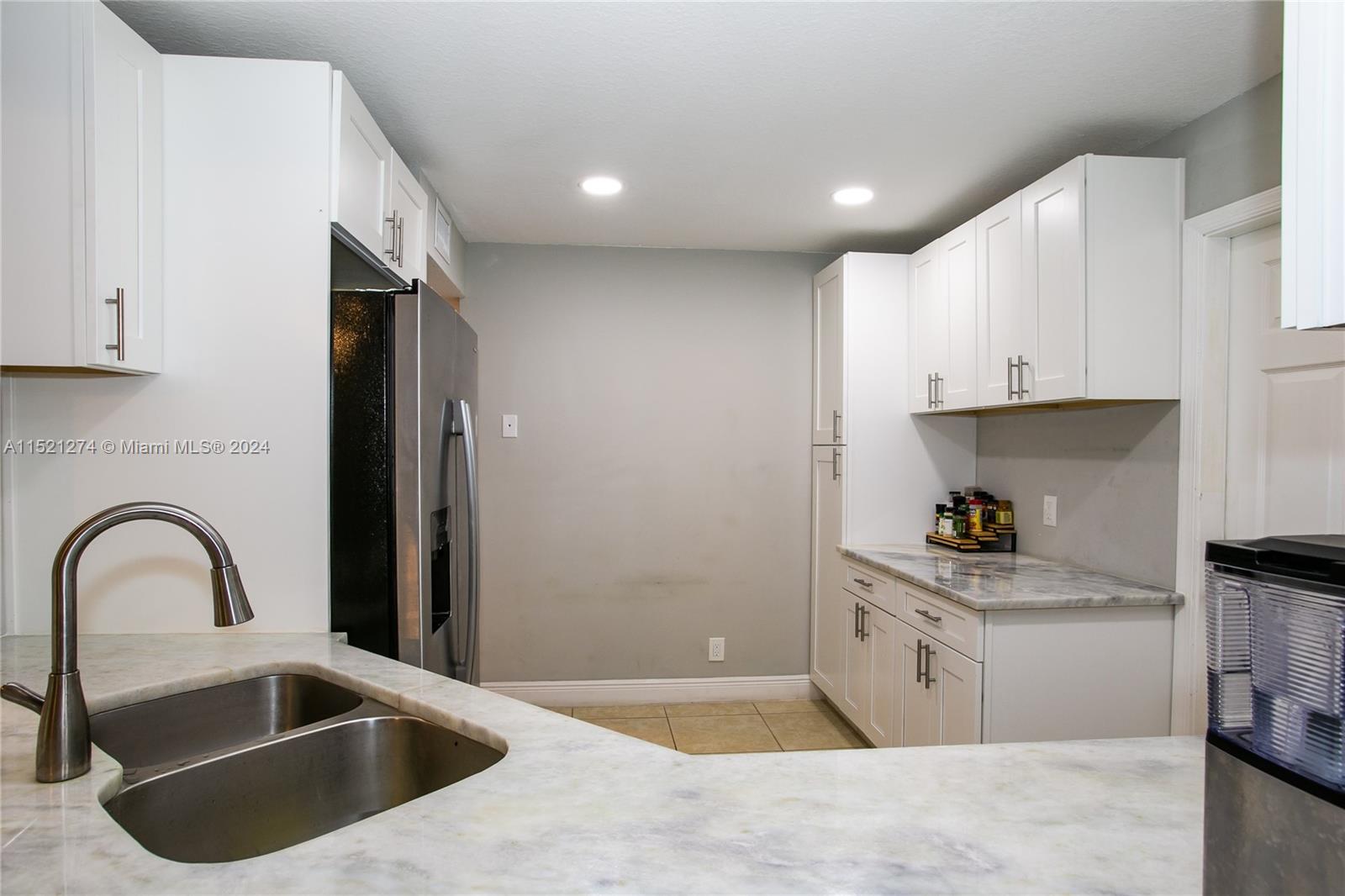 Very strong association. Will qualify for a 5% down conventional. Recently updated 2/2 first floor condo coach home with garage boasting a modern interior. Large stone ceramic tile throughout. Updated gorgeous chef's kitchen with white shaker style cabinets, stunning quartz countertops, stainless appliances and stainless sink. Living room boasts lofty, vaulted ceilings. Master bath and guest bath have been tastefully updated. Screened patio with open garden views. This one has it all. Community is gated, community pool, exercise room. Perfect location to shopping and highways with beaches a mere 6 miles away. Maintenance includes security gate, lawn care, exterior insurance, basic cable, trash, reserves collected for roofs and painting.