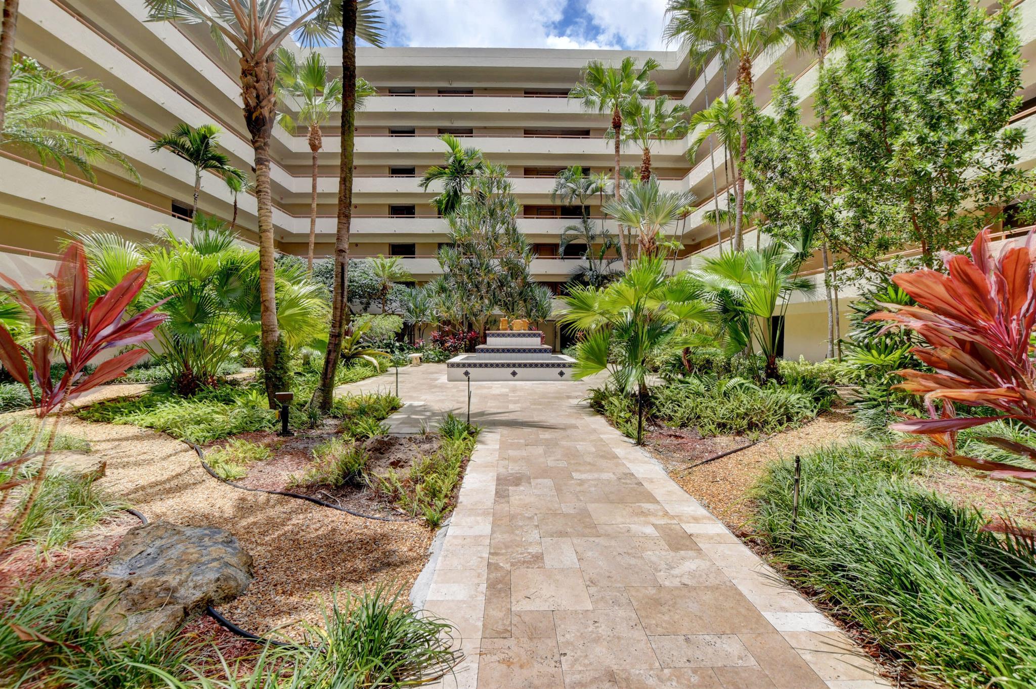 Wonderful location in the charming boutique building of La Residence in the heart of Boca Raton. At closing all current special assessments will be paid by seller. Concrete restauration and painting of the building is complete, New roof project will start soon.Uniquely designed courtyard building,. Very large 2 bedroom and 2 baths, with renovated 2nd bath. Wrap around patio, access to patio from all rooms, AC approximately 2 years old and walk in Interior laundry room, Assigned parking, & guest parking.Only 63 units in this well maintained and managed community. HOA includes: Water, basic cable, heating of hot water, exterior building insurance, heated pool secured & private. 2 elevators, renovated parking areas, pool area, meeting/social areas with kitchen, & exercise room.