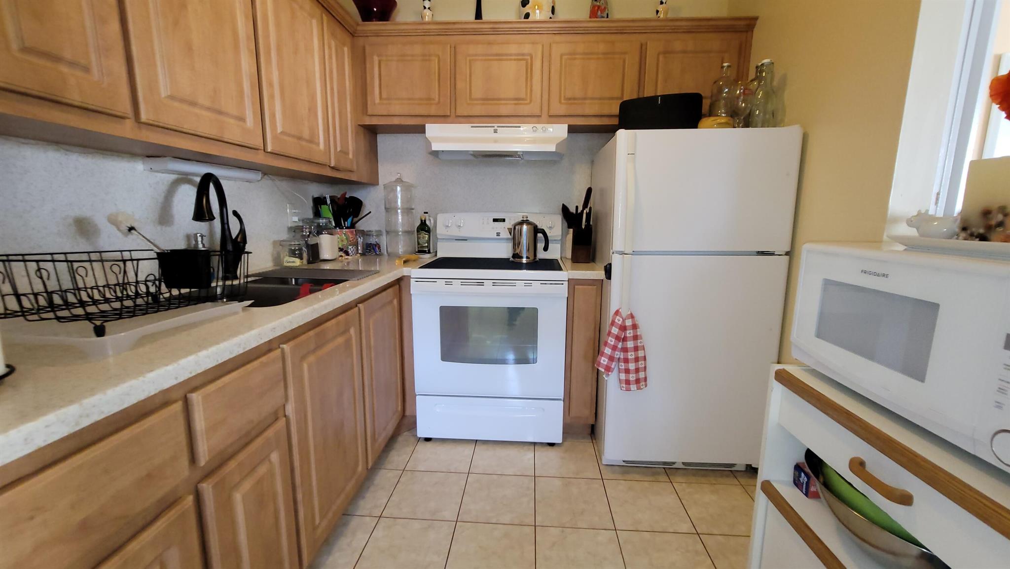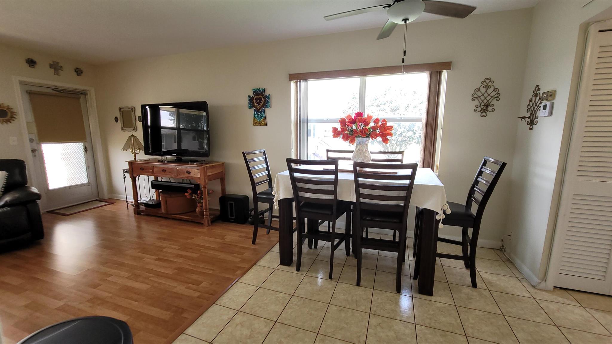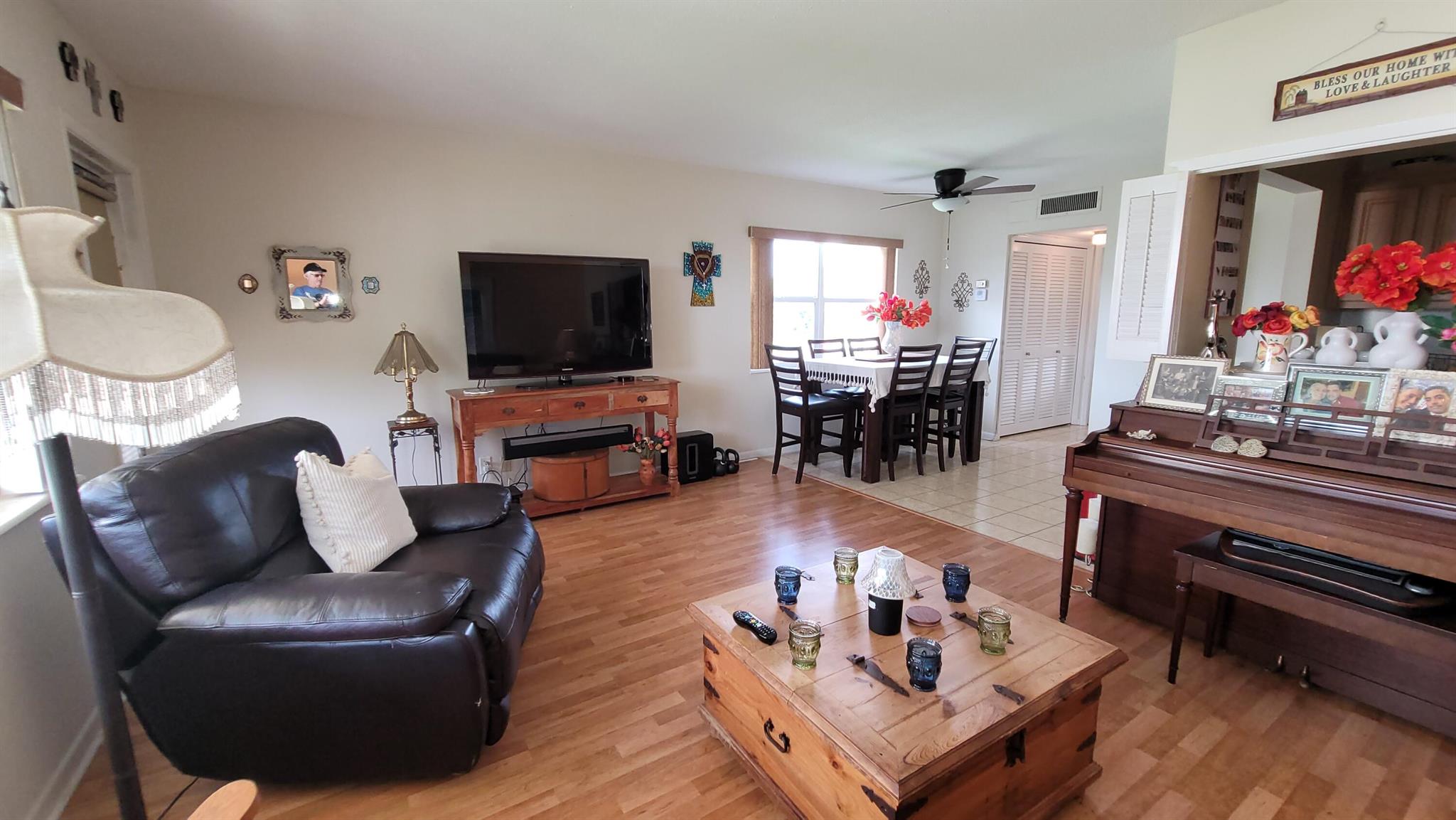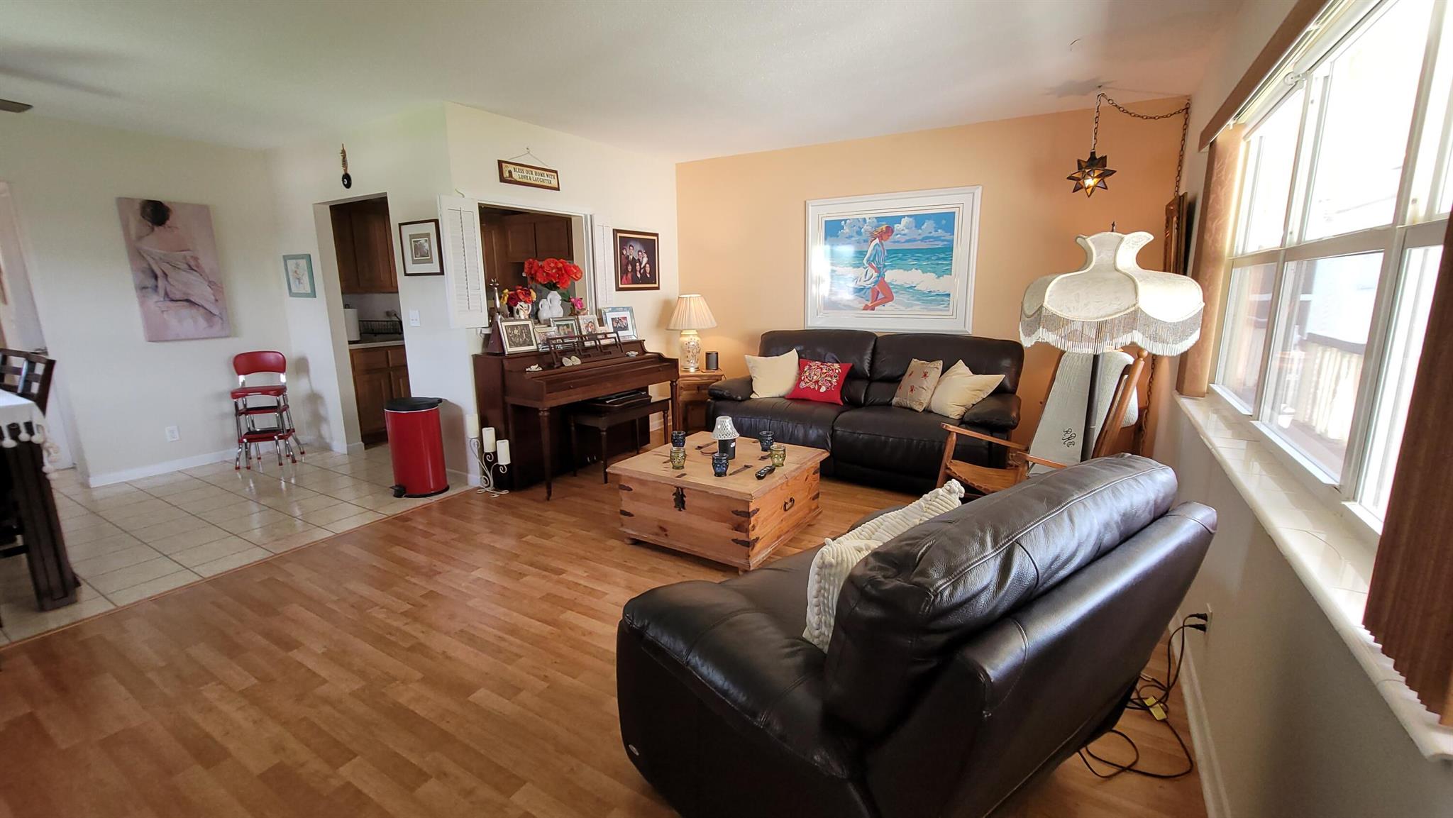 Welcome to the paradise of South Florida, resort-style social living at its absolute best. Enjoy wonderful garden views from this beautiful, fully furnished, one bedroom, one and one-half bath condo located in sunny West Palm Beach Florida and experience the distinct Century Village ''way of life'' with luxurious recreational facilities and abundant social activities. Very private inside corner or end unit. Fully furnished on the second floor of a very well run and friendly Association. Wood laminate floors throughout living areas and tile in kitchen, dining room and bathrooms. The kitchen features wood cabinets and quartz backsplash and countertop, with newer appliances. Impact windows front and sides, accordion shutters on bedroom slider. Piano does not convey.