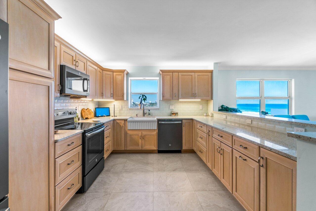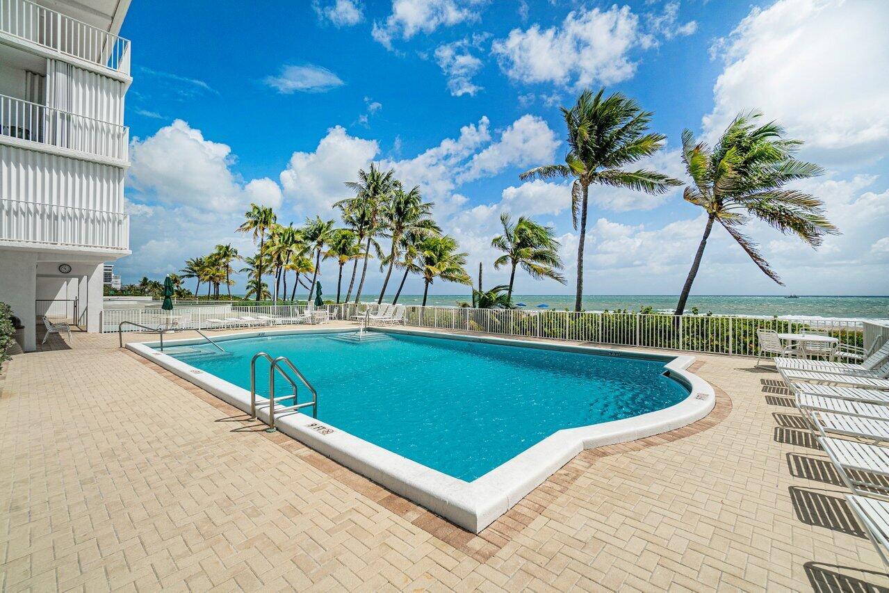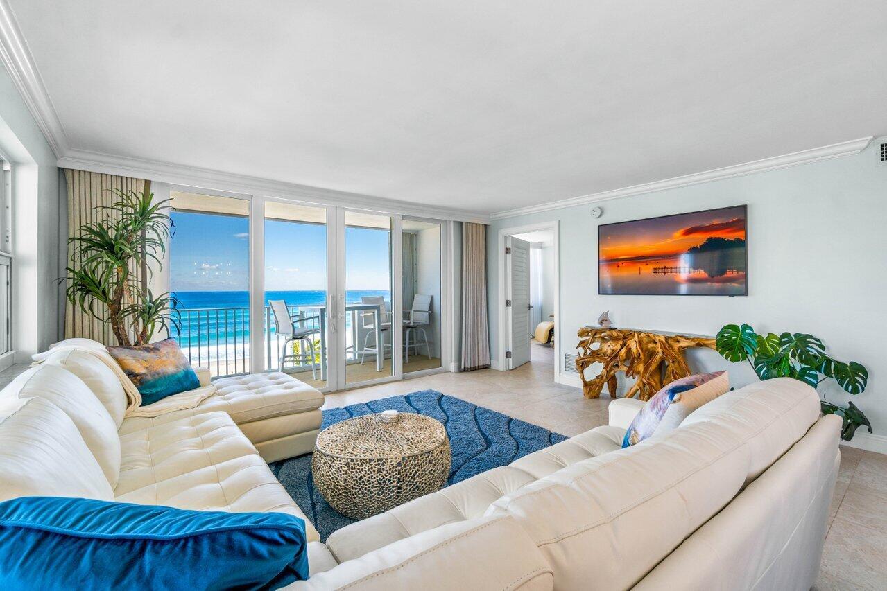 Stunning Northeast corner 3-bedroom, 2-bathroom Oceanfront Residence boasting a spacious wrap-around balcony with amazing Ocean views! Meticulously renovated, this residence showcases floor-to-ceiling High Impact HURRICANE windows and sliders, offering breathtaking panoramic Ocean Views guaranteed to captivate even the most discerning clientele. The desirable split bedroom floor plan places the primary suite directly facing the Ocean. An expansive Open Kitchen takes center stage, affording unparalleled direct ocean vistas. Complete with a full-size washer/dryer inside the unit, 1 parking space in the garage, and an additional storage locker, this residence invites you to move right in and indulge in your beachfront oasis.Situated in an exceptional location within walking distance of