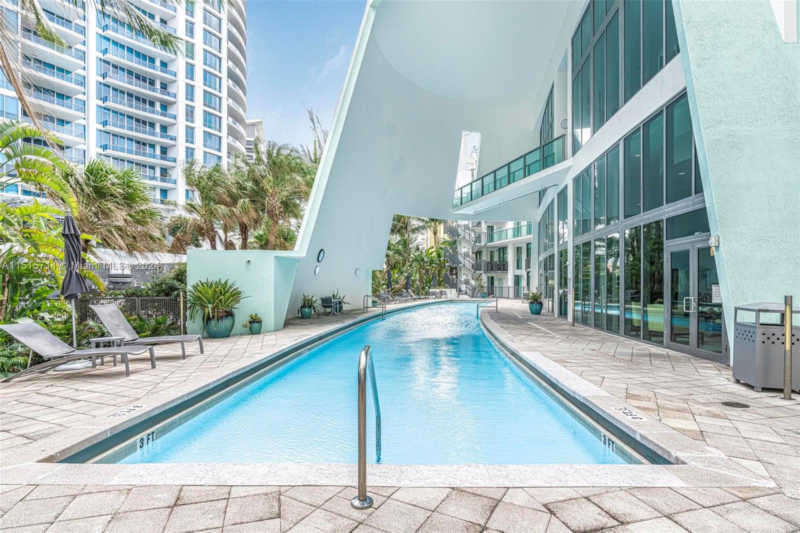Captivating 2-story loft with thoughtfully designed interiors including Swarovski custom wallpaper from London adorned with over 100 crystals and LED lights, a Crystal Chandelier imported from Italy and illuminated hallways. First floor residence with an outdoor garden accessible directly from the living room leading out to the street and floor-to-ceiling hurricane impact windows complete with electric shades and a custom-designed kitchen. Living space and a guest suite conveniently located on the lower level, while the upper level houses the primary suite and enclosed den, perfect for a home office or third bedroom. Terra Beachside amenities include a swimming pool, fitness center, and lounge.