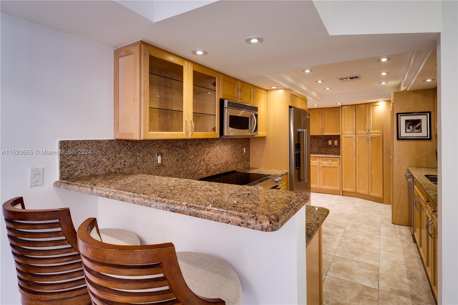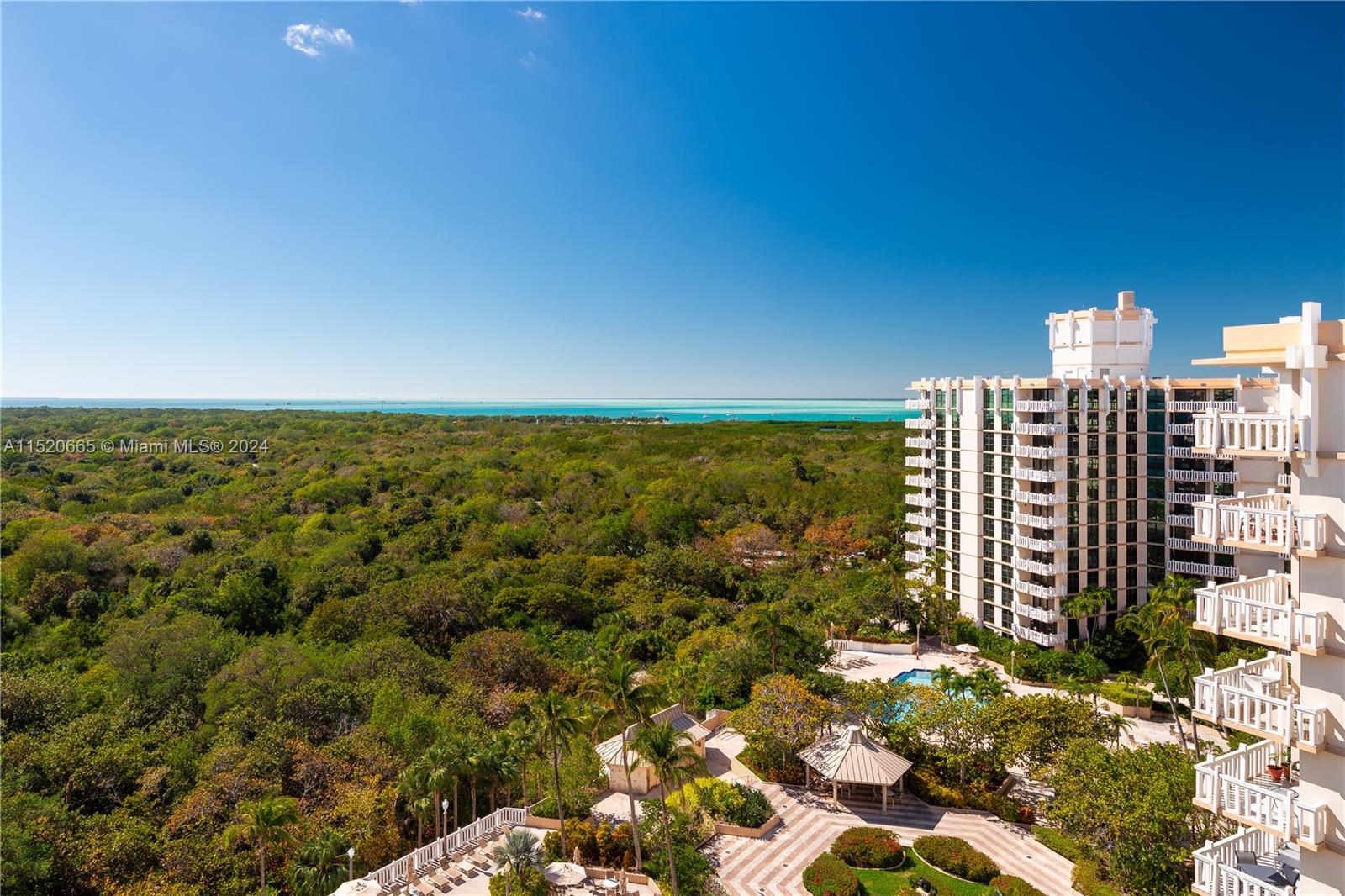 Experience breathtaking panoramic views of the ocean, Bay, and State Park from this exceptional residence. Coveted South exposure offers an abundance of natural light throughout. Immerse yourself in this beautifully renovated split-plan model, featuring light natural stone flooring, an inviting open kitchen, and custom wood cabinetry and moldings. This residence combines stunning vistas with a meticulously designed interior. Easy to showcase, this property invites you to indulge in a lifestyle of both serenity and a true island living. Upper garage parking space #83.
