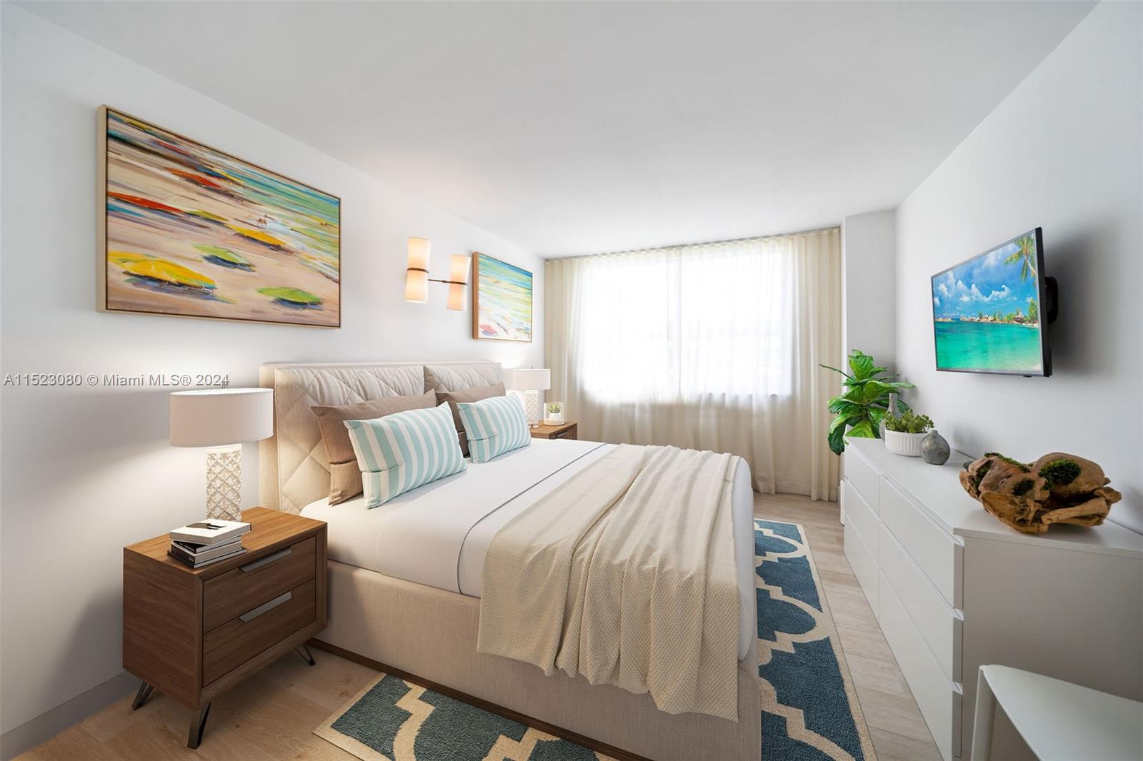 Rarely available high floor corner unit at 650 West. This meticulously renovated 2/2 condo showcases an optimal floor plan with two en suite bedrooms and an open kitchen and living area perfect for entertaining. Revel in a modern aesthetic highlighted by porcelain floors throughout the unit and balcony. Spa-inspired bathrooms, a Jacuzzi tub, chef's kitchen with stainless appliances, wine cooler, full-size W/D, custom closets, and high-end lighting and window treatments add to the allure. With a new A/C unit and the entire space freshly painted and turnkey, this residence is an ideal choice for the most discerning buyers. Seize the opportunity to embrace a luxurious lifestyle with amenities and breathtaking panoramic views of Miami, the Islands of Biscayne Bay and The Best of South Beach.