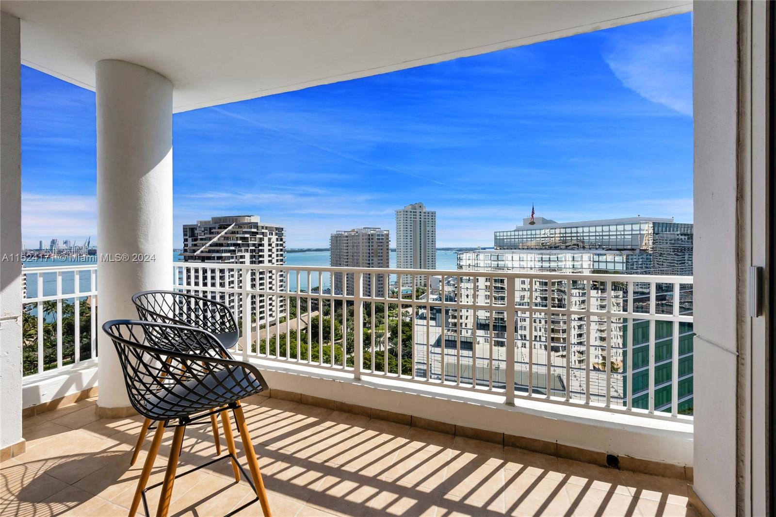Elevate your living with this fantastic 2 bedroom / 2 bath unit on a high floor in Brickell Key's Courvoisier Courts. Primary features include a master suite with walk-in closet, secondary bedroom with ensuite, a spacious balcony with stunning southern skyline views of Miami Beach and downtown Brickell, an open concept kitchen with marble counters, dedicated dining room and hard-wood floors. Includes 2 parking spaces: one assigned, one unassigned. About the building: Courvoisier Courts is a full-service condominium complex located on the semi-private island of Brickell Key accessed by bridge from Brickell and offers an array of amenities including a fitness center, heated pool, racquetball and squash courts, business center, on-site concierge & 24-hour valet parking.