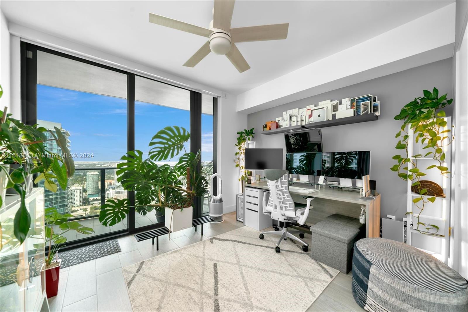 A beautifully finished 3 Bed+Den/3.5 Bath flow-through residence at One Paraiso w/ 1,526 int sq ft + 2 balconies totaling 354 sq ft. Features include porcelain tiled flooring throughout, built-in closets in all bedrooms, motorized shades, recessed lighting w/ Phillips hues bulbs, new AC unit (installed Jun 2021), new washer & dryer, NEST thermostat, and smart door lock. Breathtaking views of Biscayne Bay, Atlantic Ocean, and Miami Beach skyline from 41st floor. Amenities include a state-of-the-art fitness center, 3 pools, hot tub, BBQ, lighted tennis courts, business center, theater, children's playroom, full-service concierge, and more. Within walking distance of the upcoming Whole Food Market and short drive to the shops, restaurants, and entertainment in Wynwood & Miami Design District.